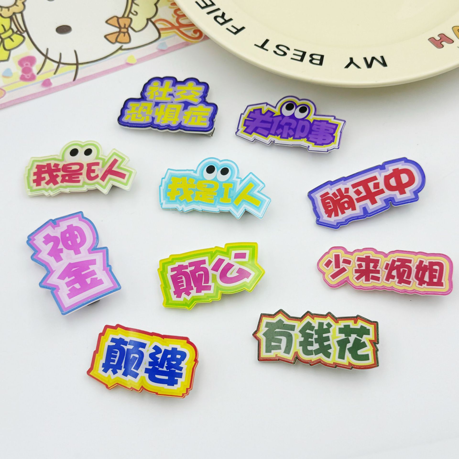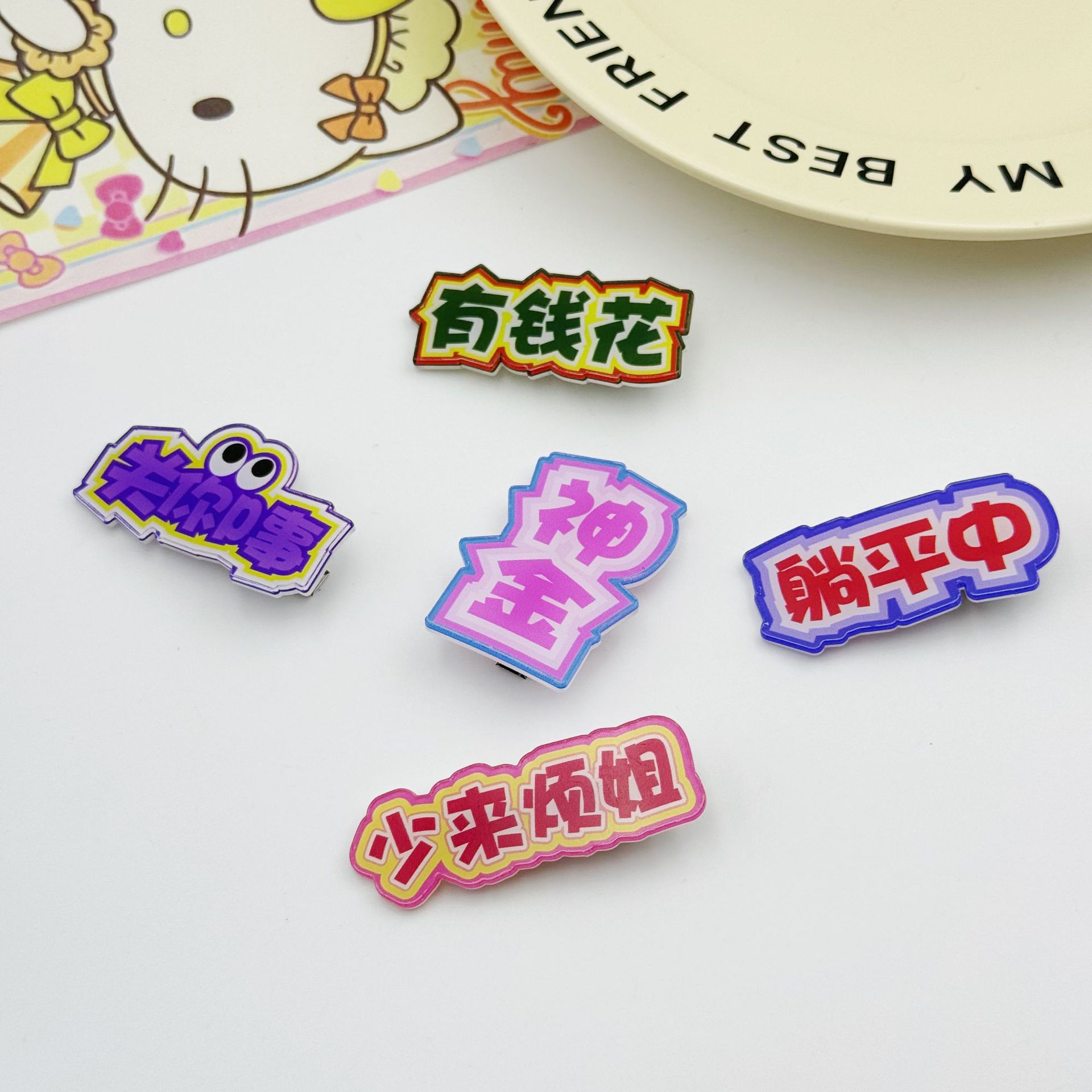 창조적 인 성격 네트워크 텍스트 머리핀 이상한 캐릭터 플레이트 뱅 만화 재미 학생 헤어 액세서리 여성스토어 가기