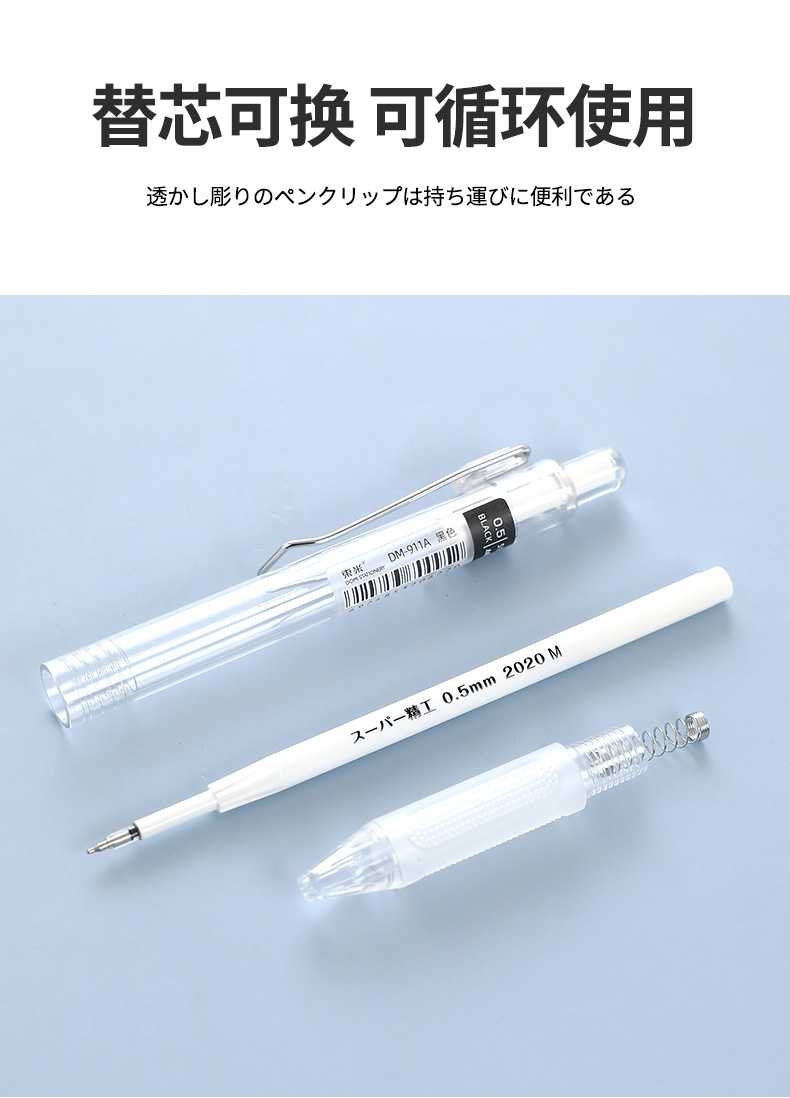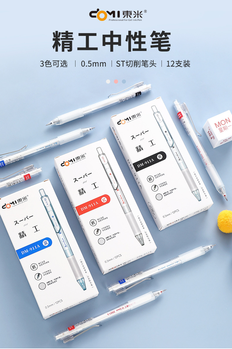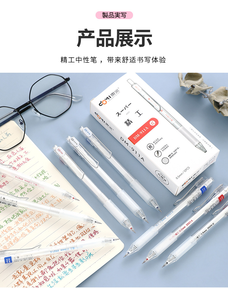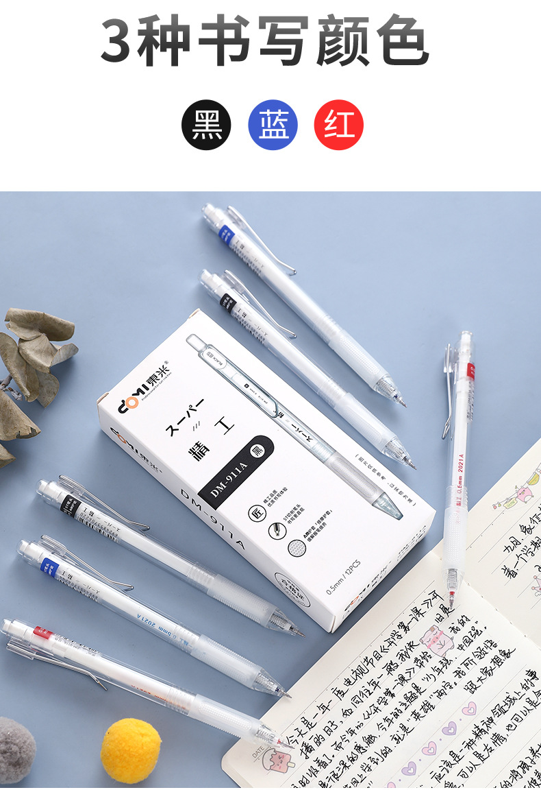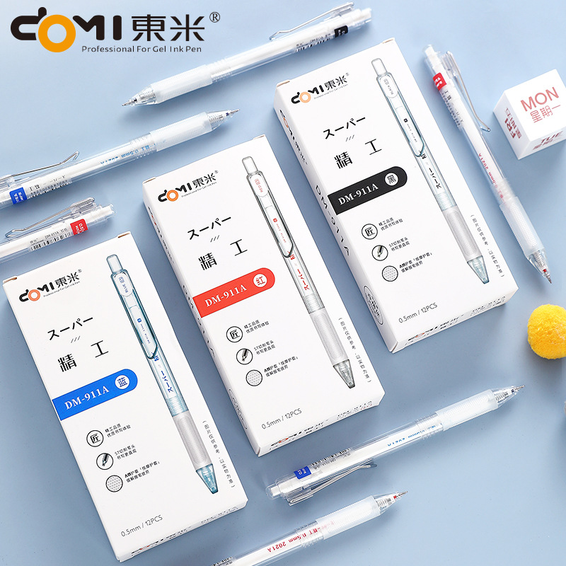 동미 911A 간단한 투명로드 프레스 젤 펜 0.5mm 블랙 레드 블루 빠른 드라이 브러시 펜 사무실 사인 펜