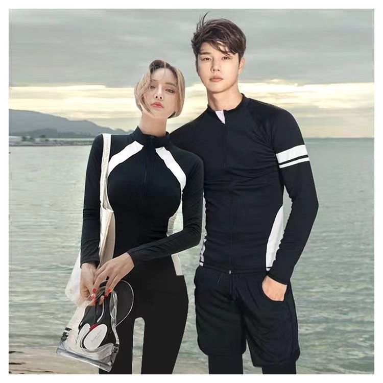 한국 커플의 다이빙 세트 남자와 여자의 분할 플러스 사이즈 긴 소매 해파리 세트 보수적 인 슬리밍 바지 스노클링 서핑 수영복스토어 가기