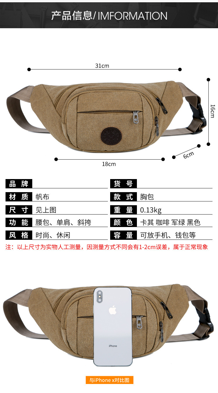 내마모성 캔버스 허리 가방 남성용 대용량 다기능 가방 크로스바디 야외 여성용 캐셔 가방 캐주얼 여행 가방