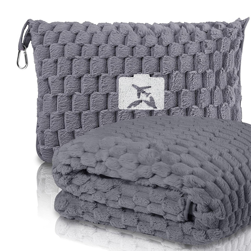 TEMU 자수 로고 플란넬 저장 접이식 야외 항공기 가방 여행 담요 자동차 다기능 담요