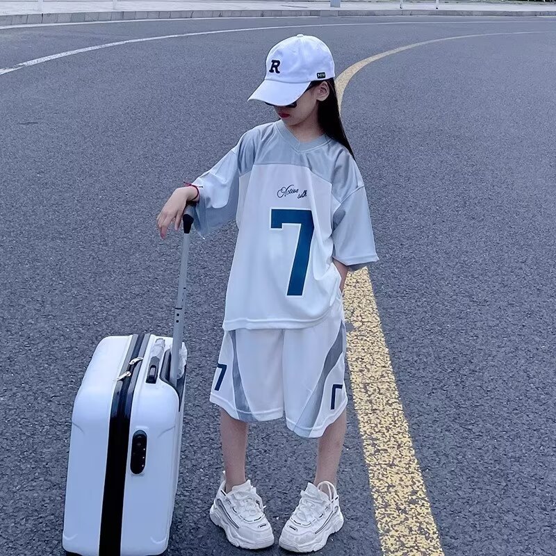 여자 스포츠 세트 여름 옷 새 어린이 옷 여름 여자 여름 여자 여름 중학교 어린이 반바지 빠른 건조 옷 농구 옷