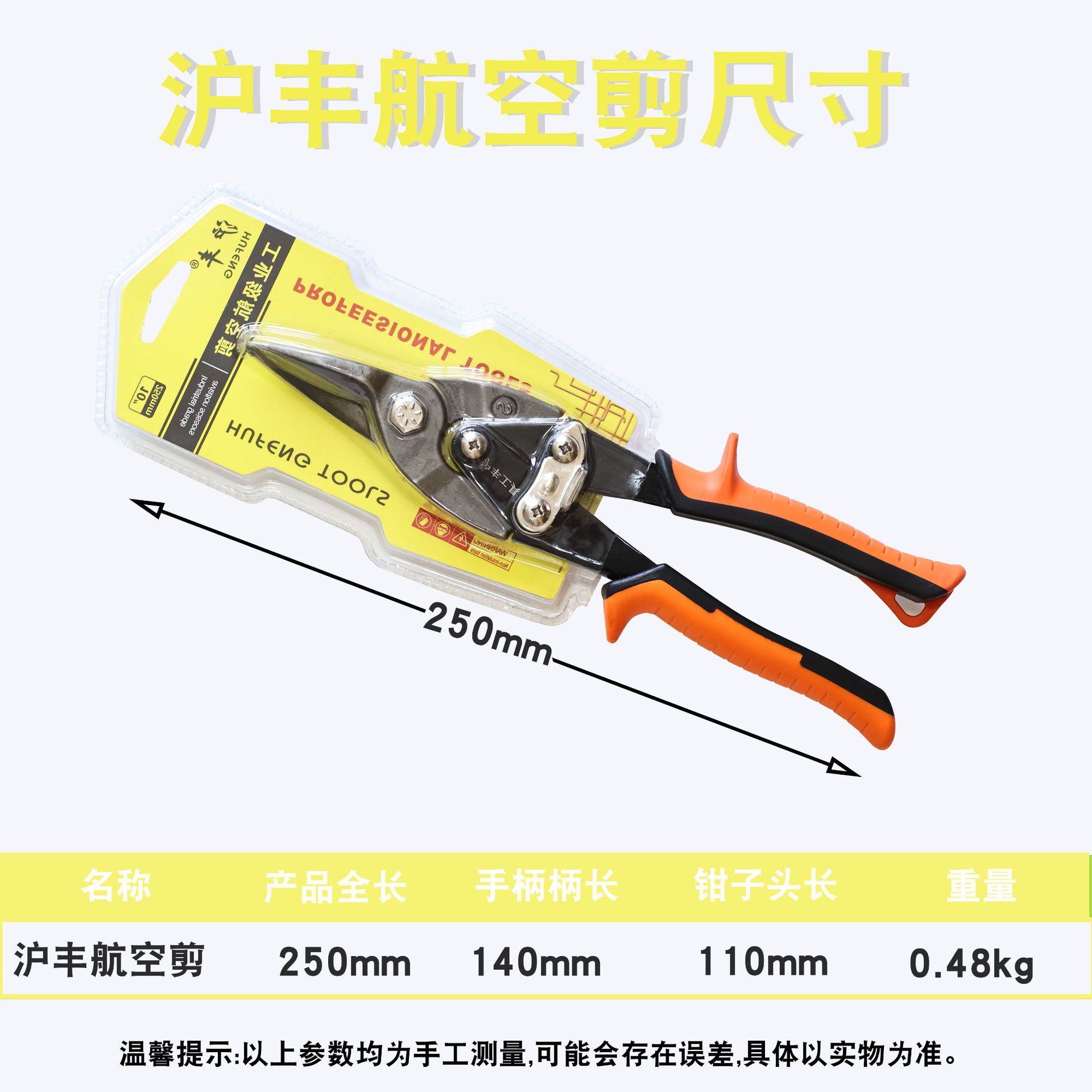 • Hufeng 항공 가위 총 길이: 250mm 무게: 0.48kg*45#강철*크롬 도금*PVC*250*110*0.48