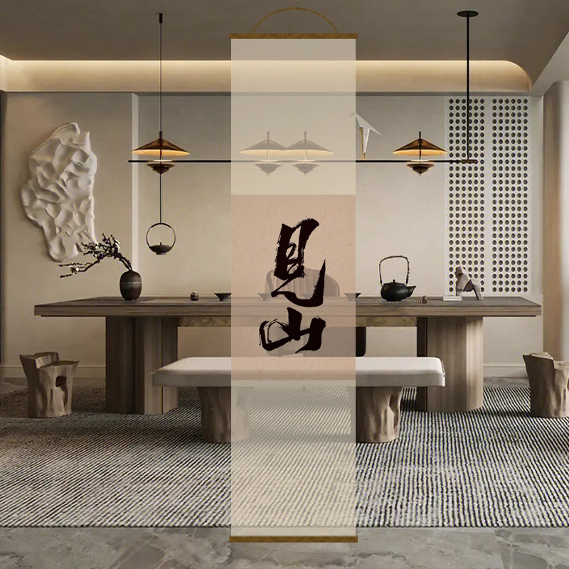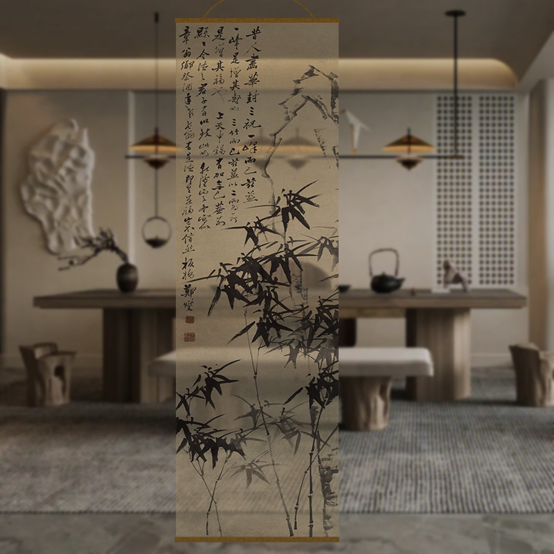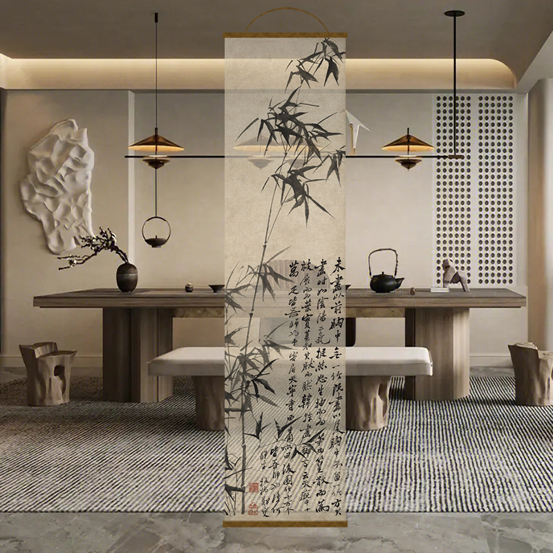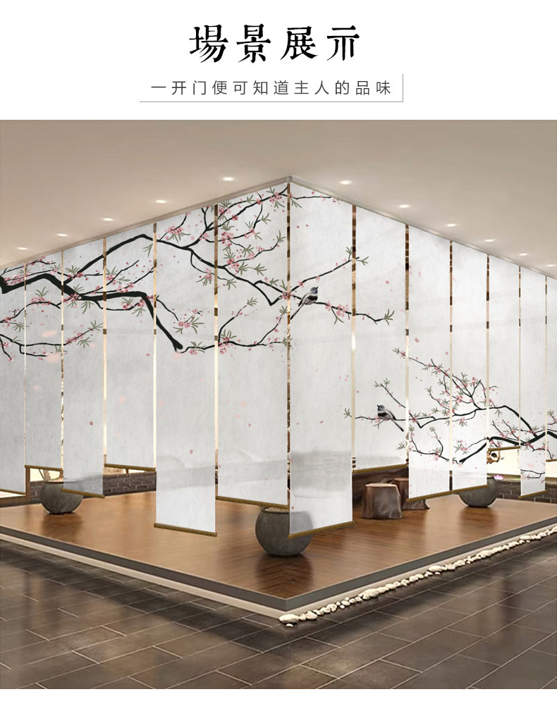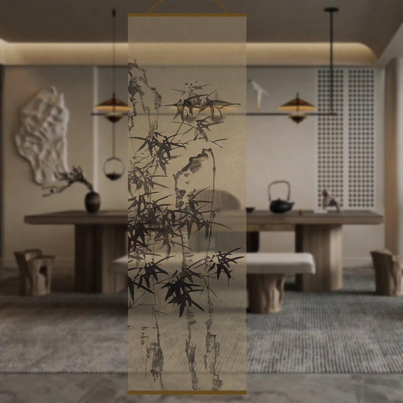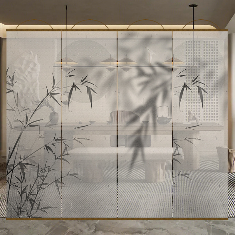 半透纱纱幔装饰画双面挂画半透卷帘纱帘窗帘屏风日式侘寂中国风古风复古隔断挂帘透光禅意透景半透玻璃定制玄关
