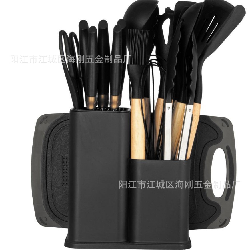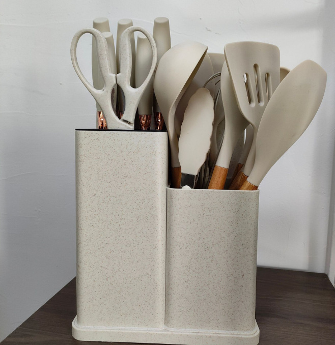 19종 주방용품 세트, 실리콘 조합 주방용품, 주걱, 스푼, 이중통 밀짚 실리콘 주방용품, 선물세트, 칼 세트