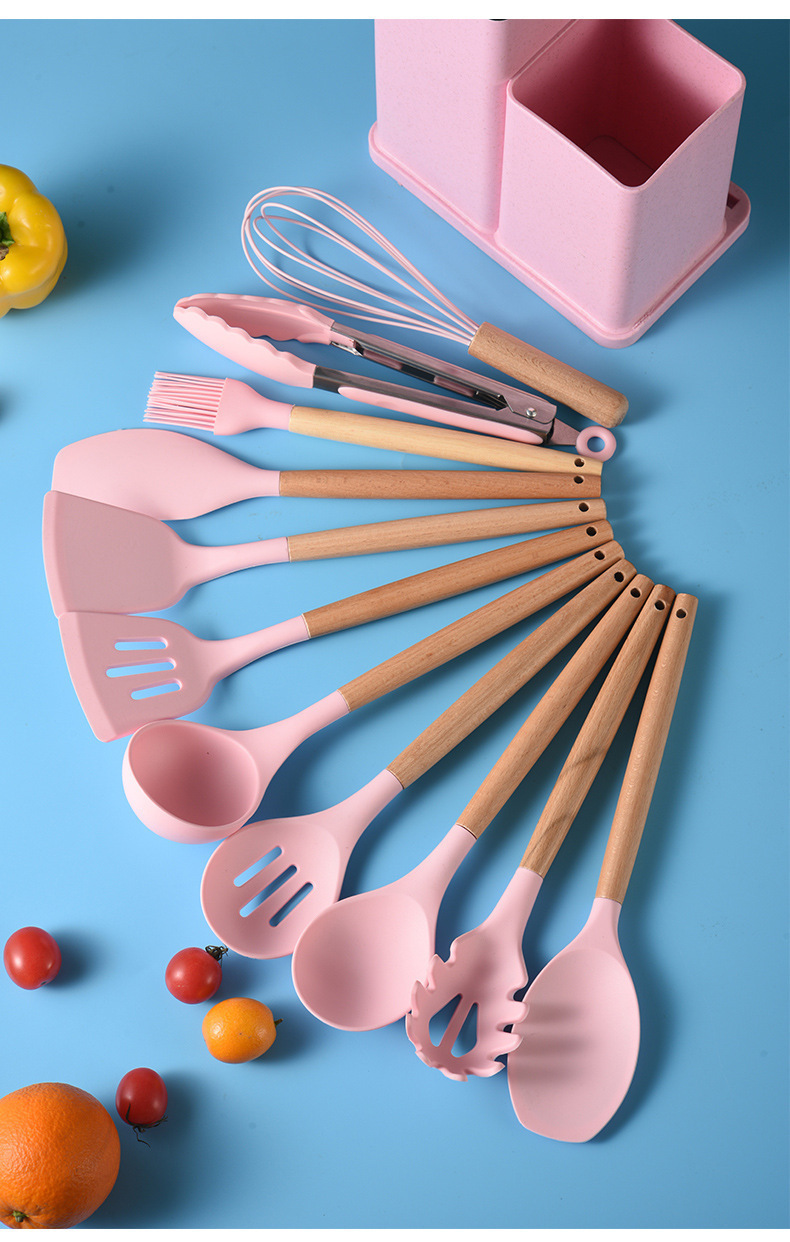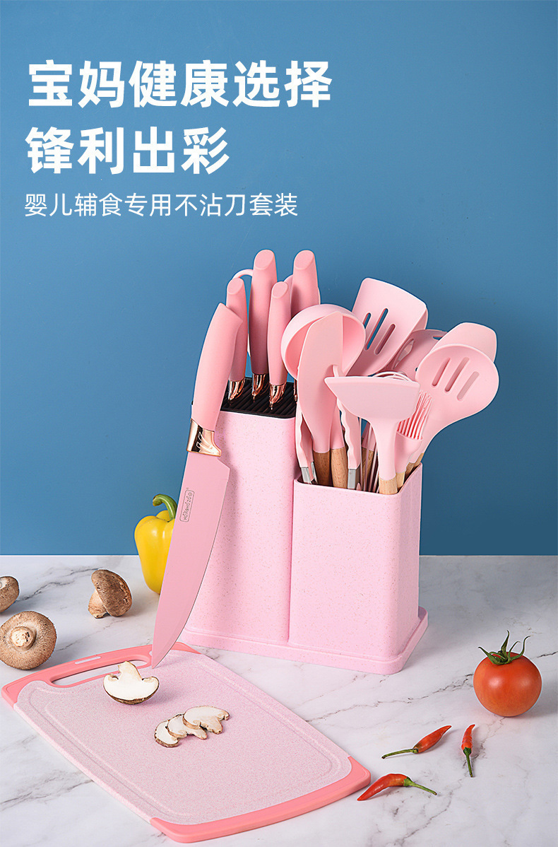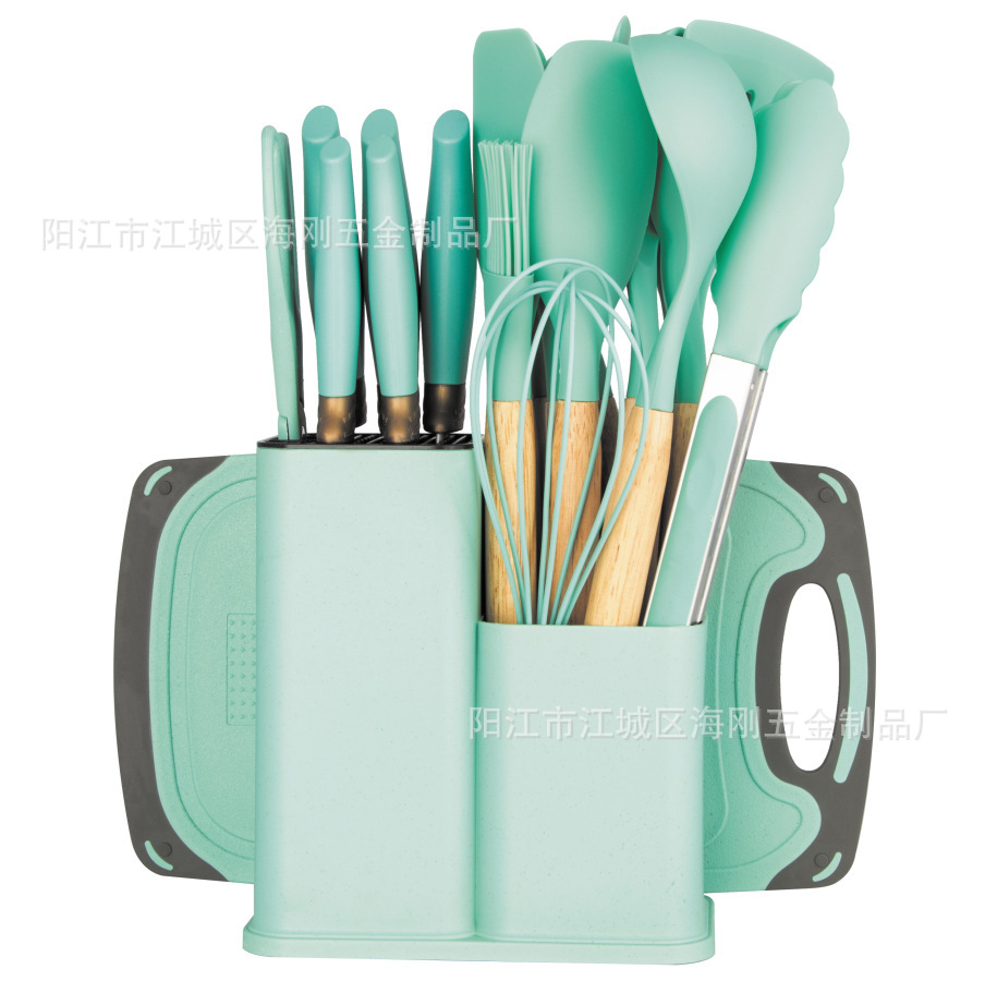 19종 주방용품 세트, 실리콘 조합 주방용품, 주걱, 스푼, 이중통 밀짚 실리콘 주방용품, 선물세트, 칼 세트스토어 가기