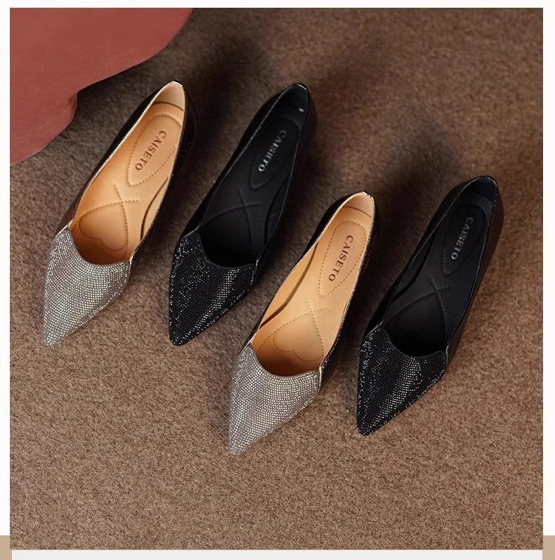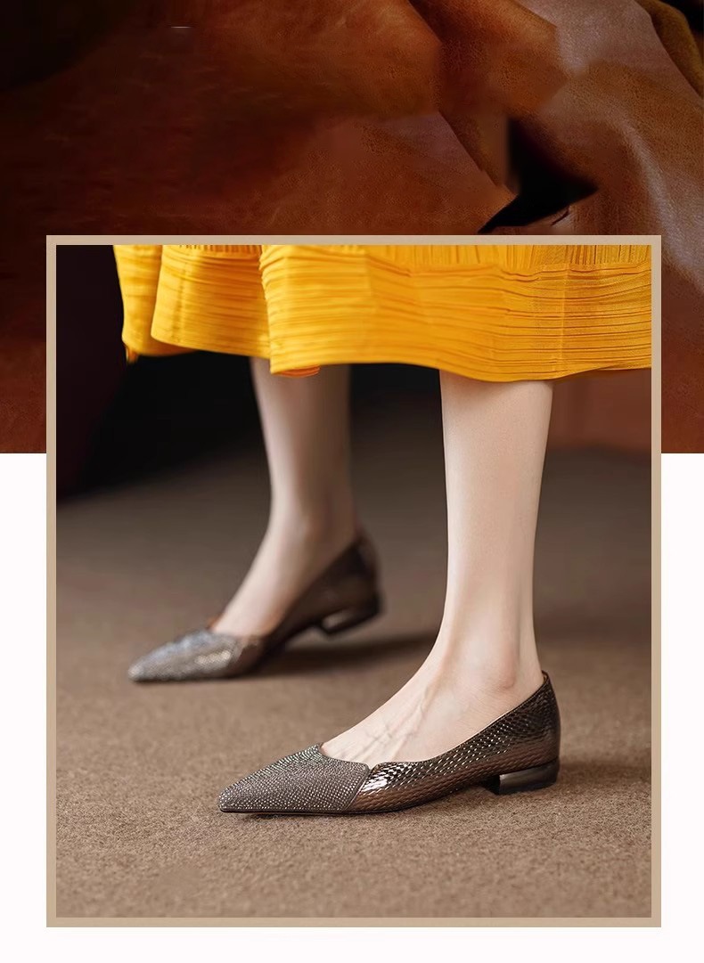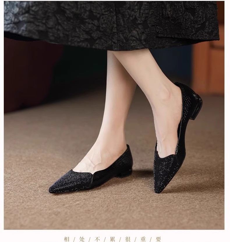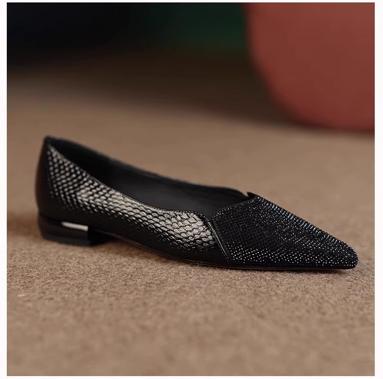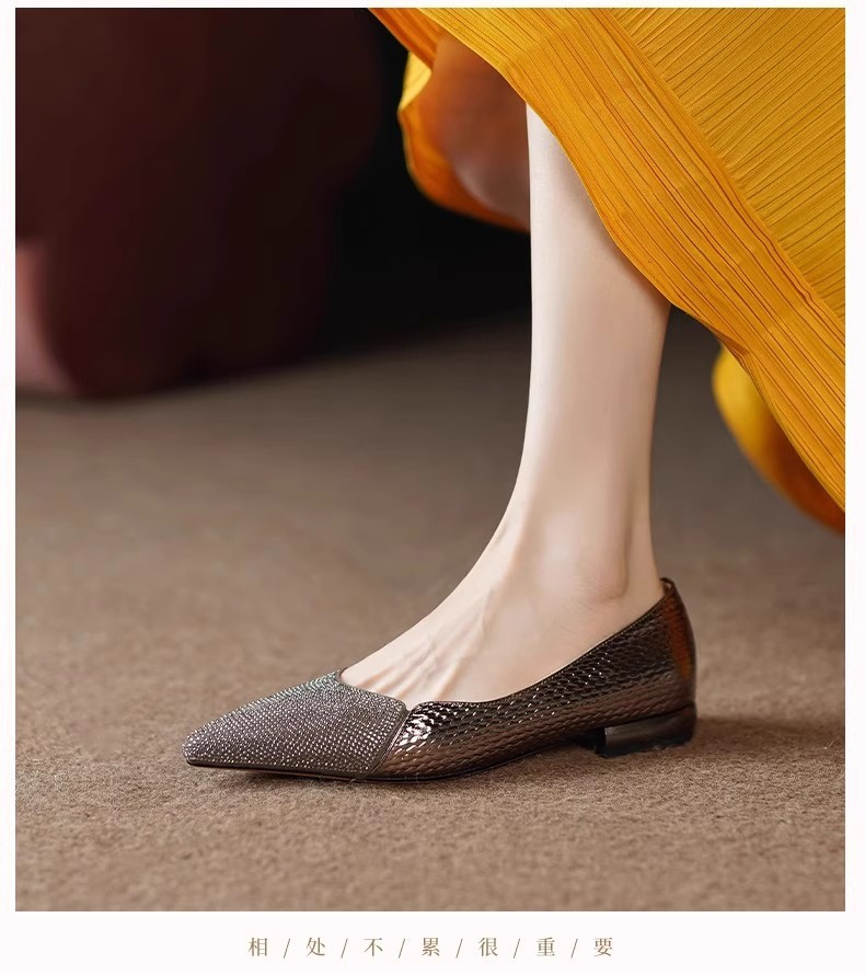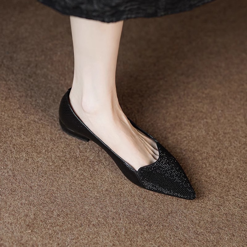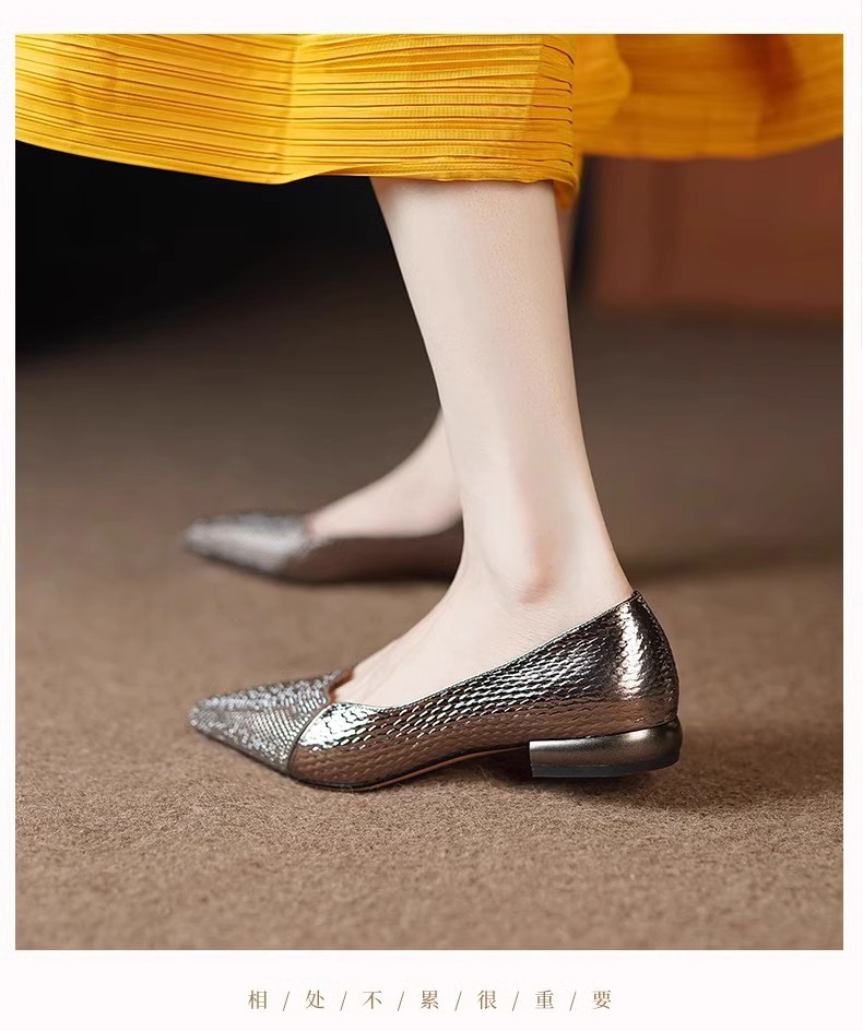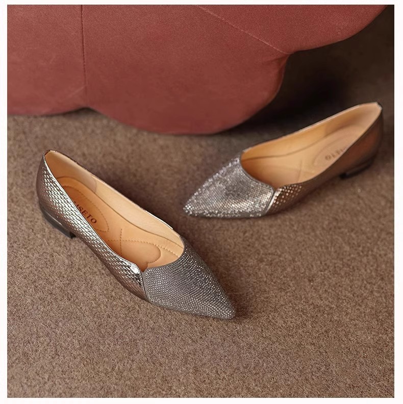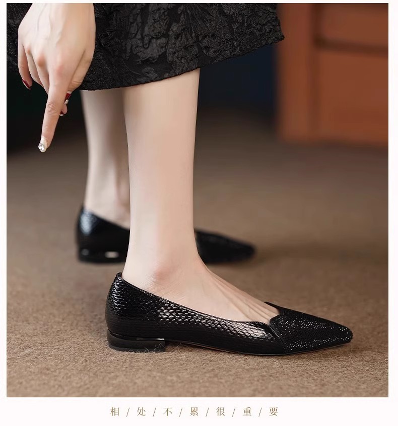 여성을 위한 매우 편안한 수제 부드러운 가죽 신발 2025 가을 새로운 스타일 뾰족한 발가락 얕은 입 플랫 바닥 기질 여성을 위한 다용도 조롱박 신발스토어 가기