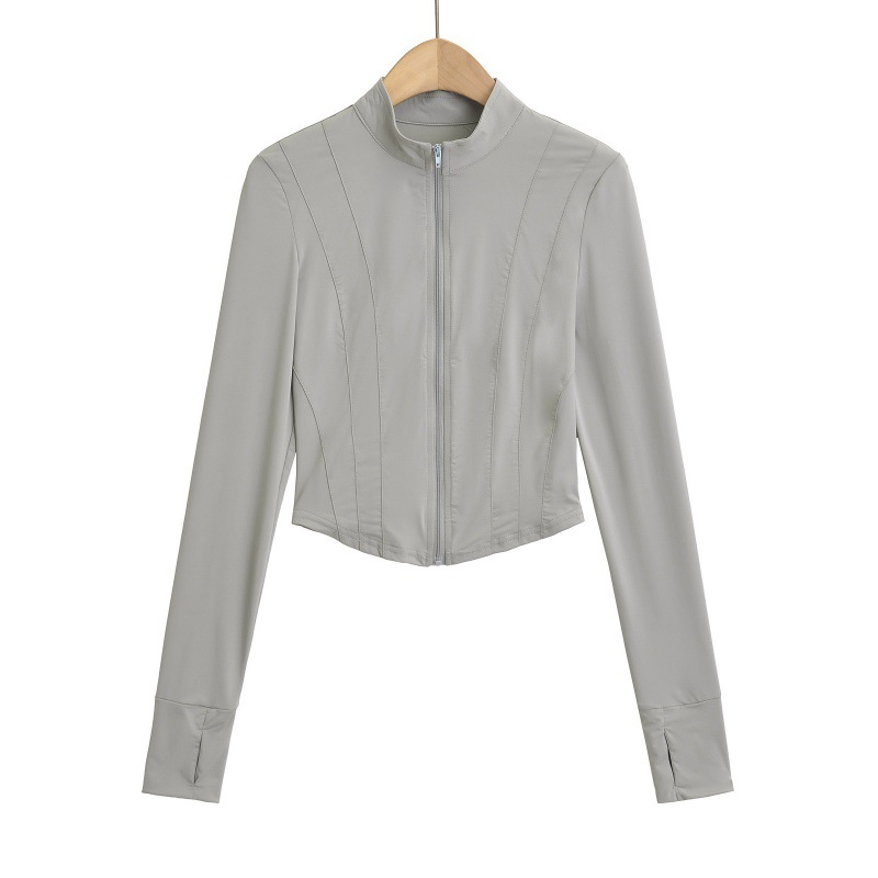 여름 선 스크린 세트 여성 스파이스 걸스 수직 칼라 슬림 요가 옷 긴 소매 카디건 자켓 아이스 실크 스포츠 주름 치마스토어 가기