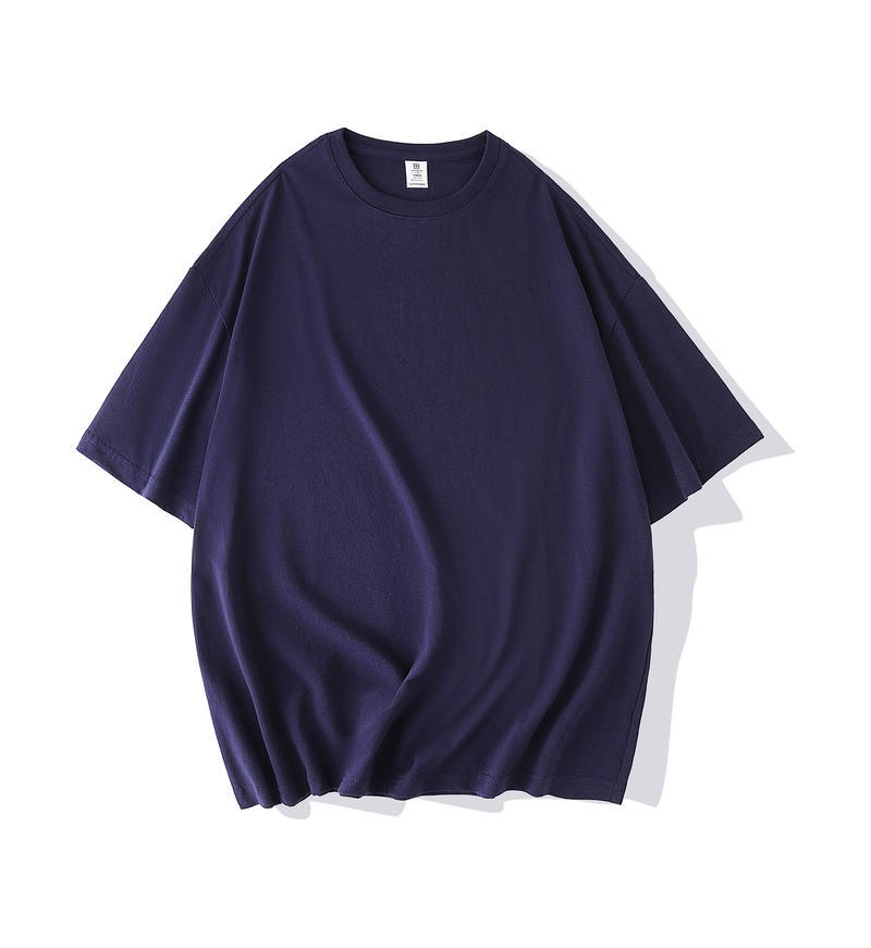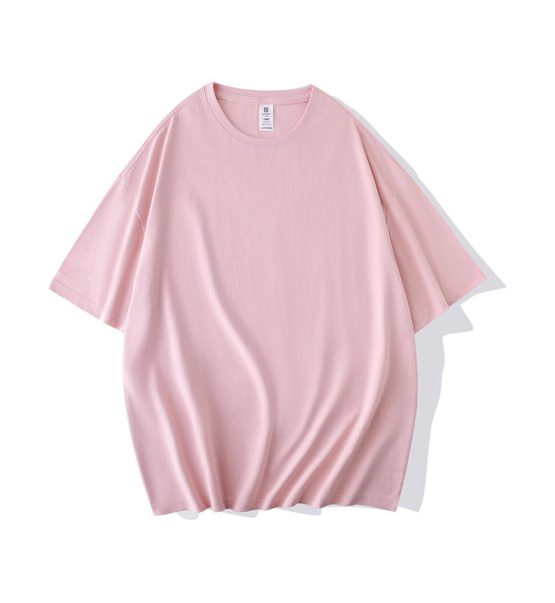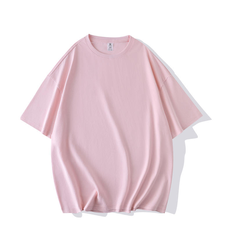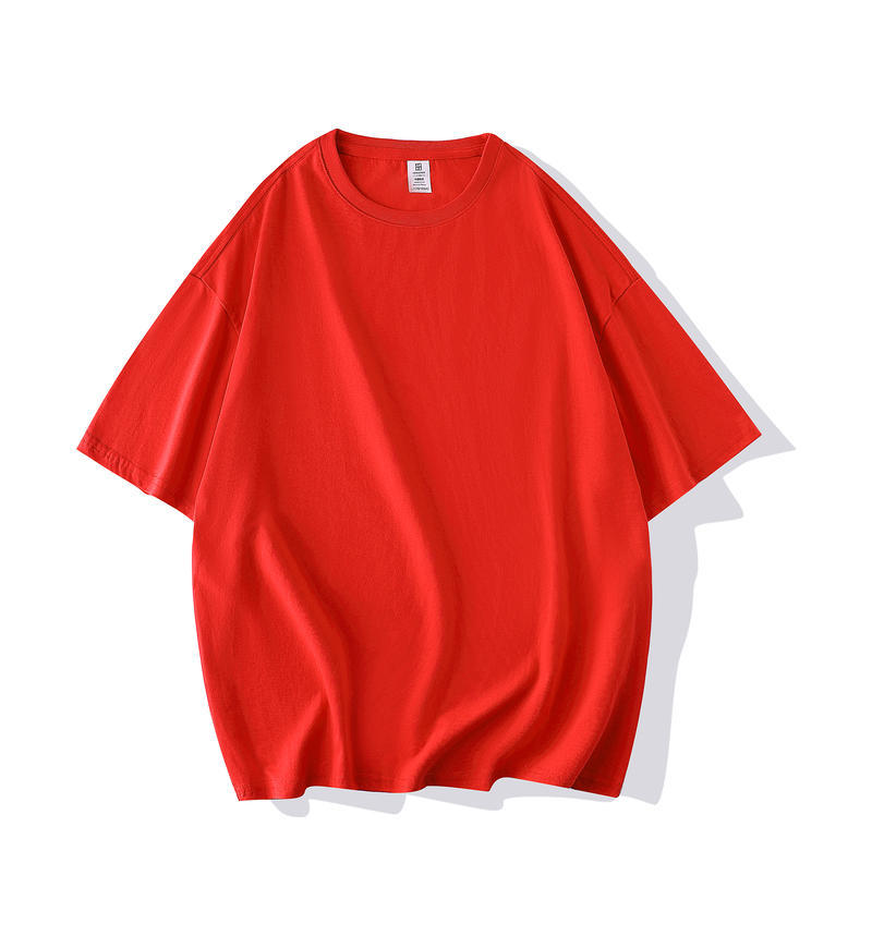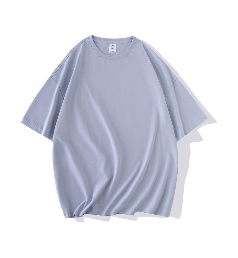 크루 넥 퓨어 코튼 티셔츠 맞춤형 어깨 반 소매 느슨한 단색 티셔츠 광고 셔츠 짧은 소매 클래스 의류 국경 공급