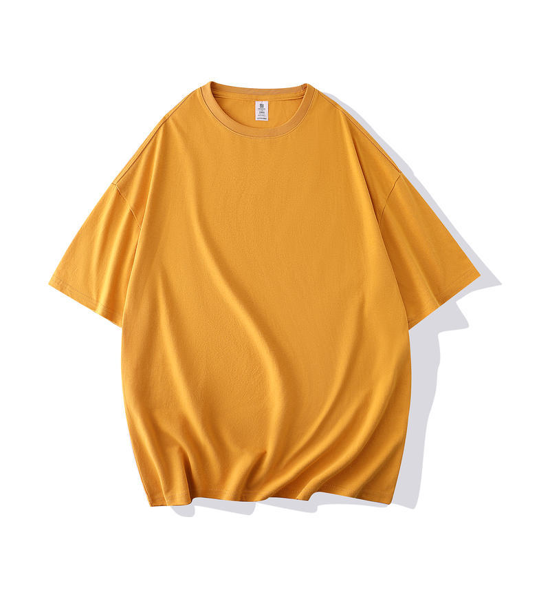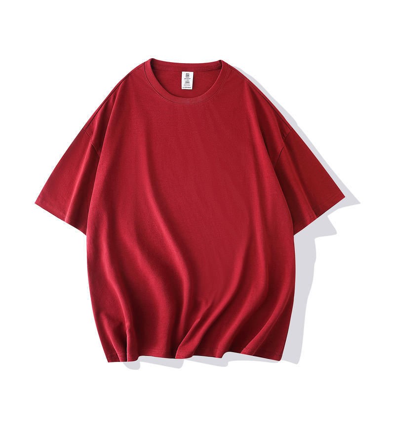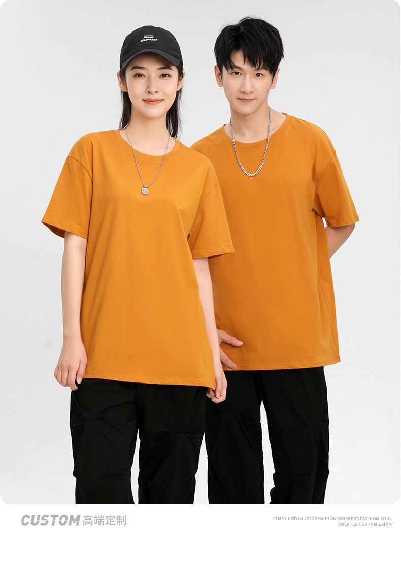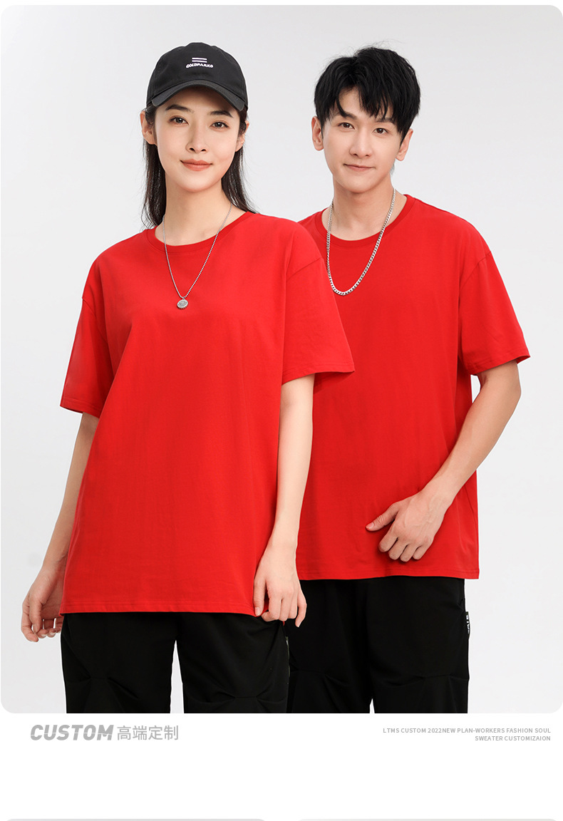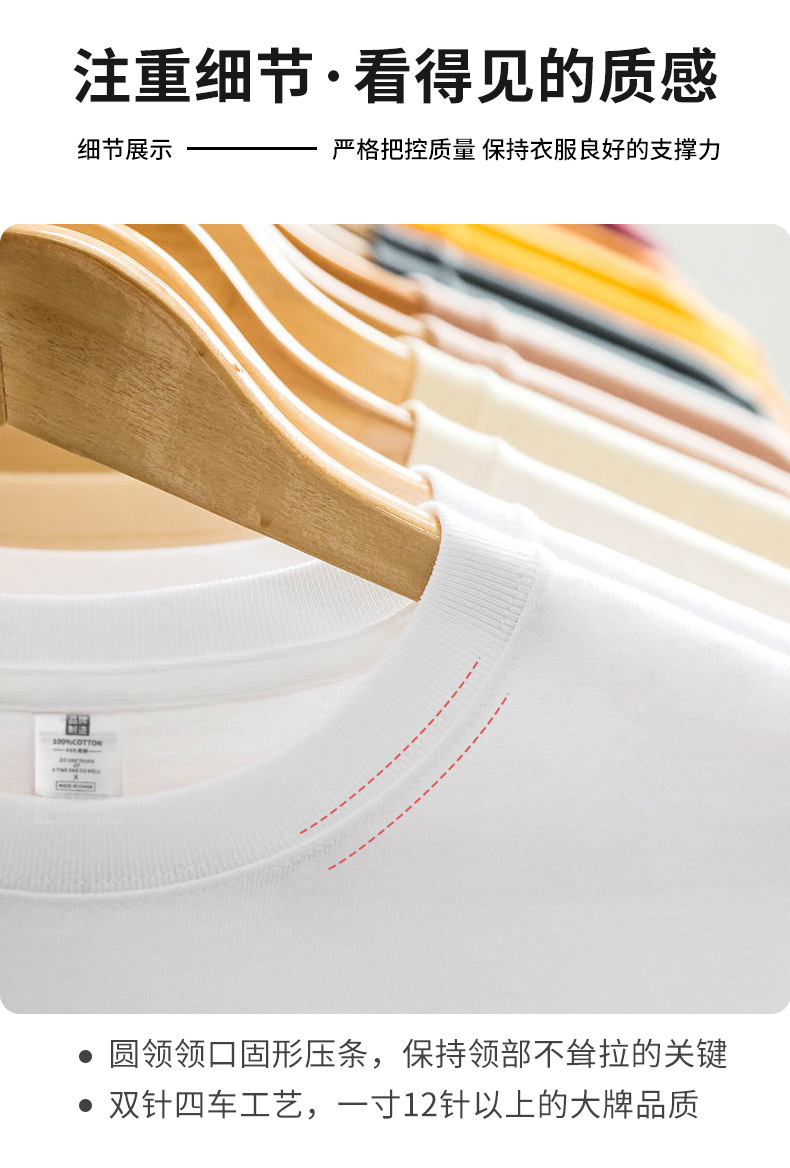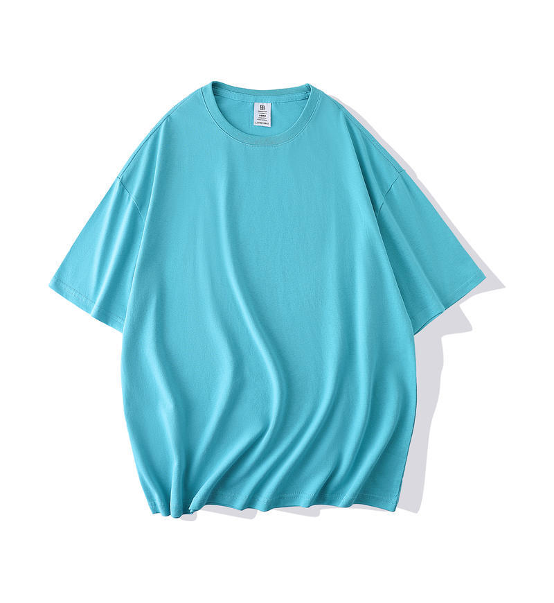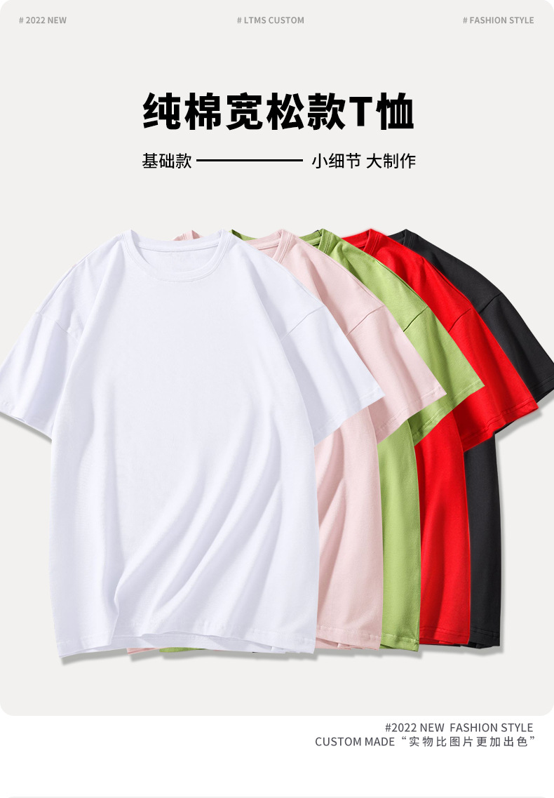 크루 넥 퓨어 코튼 티셔츠 맞춤형 어깨 반 소매 느슨한 단색 티셔츠 광고 셔츠 짧은 소매 클래스 의류 국경 공급스토어 가기