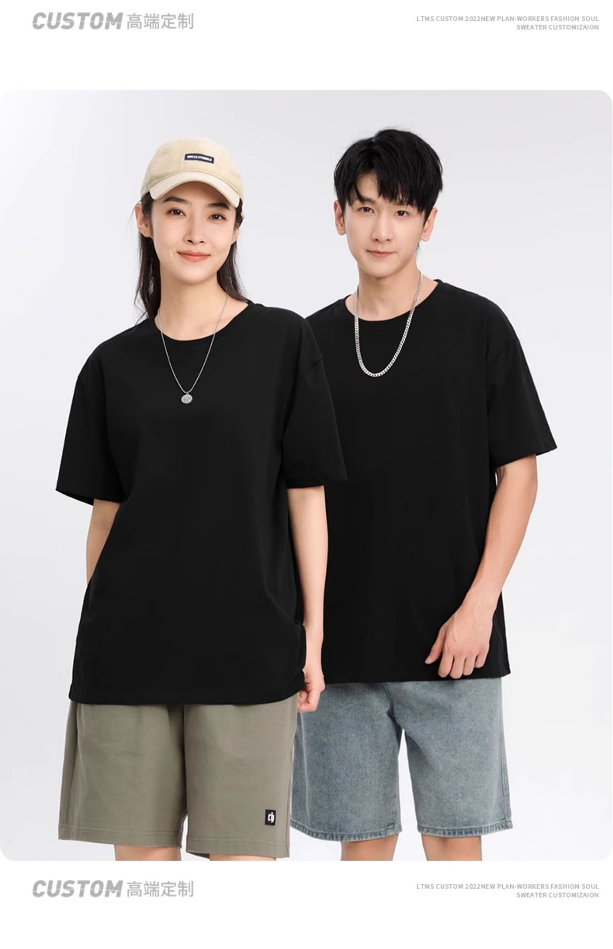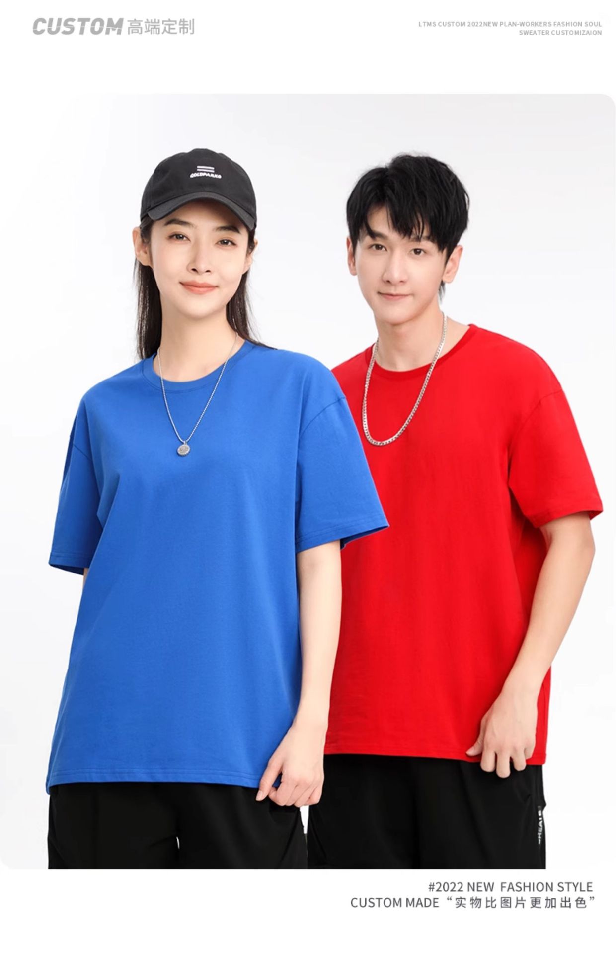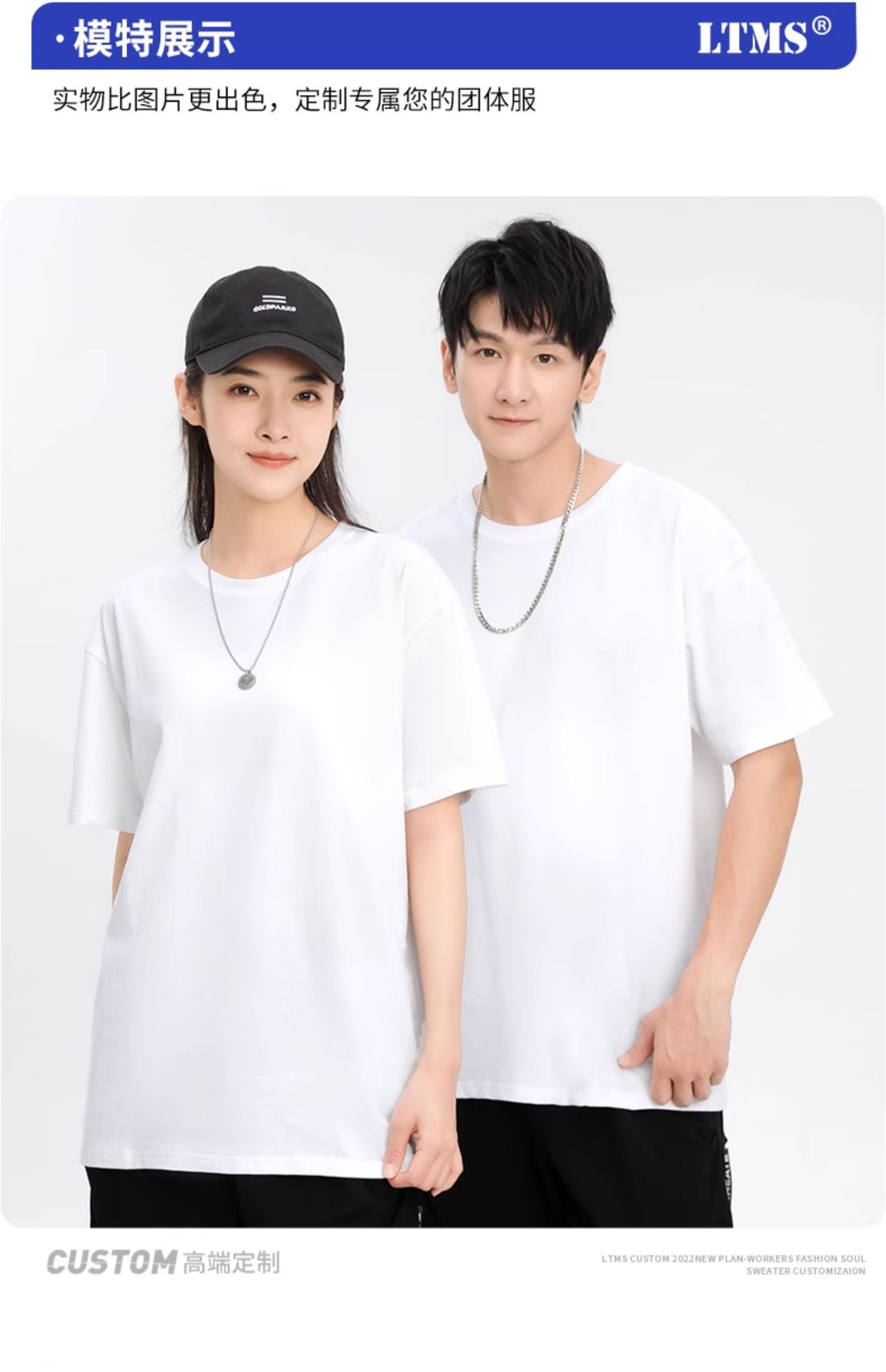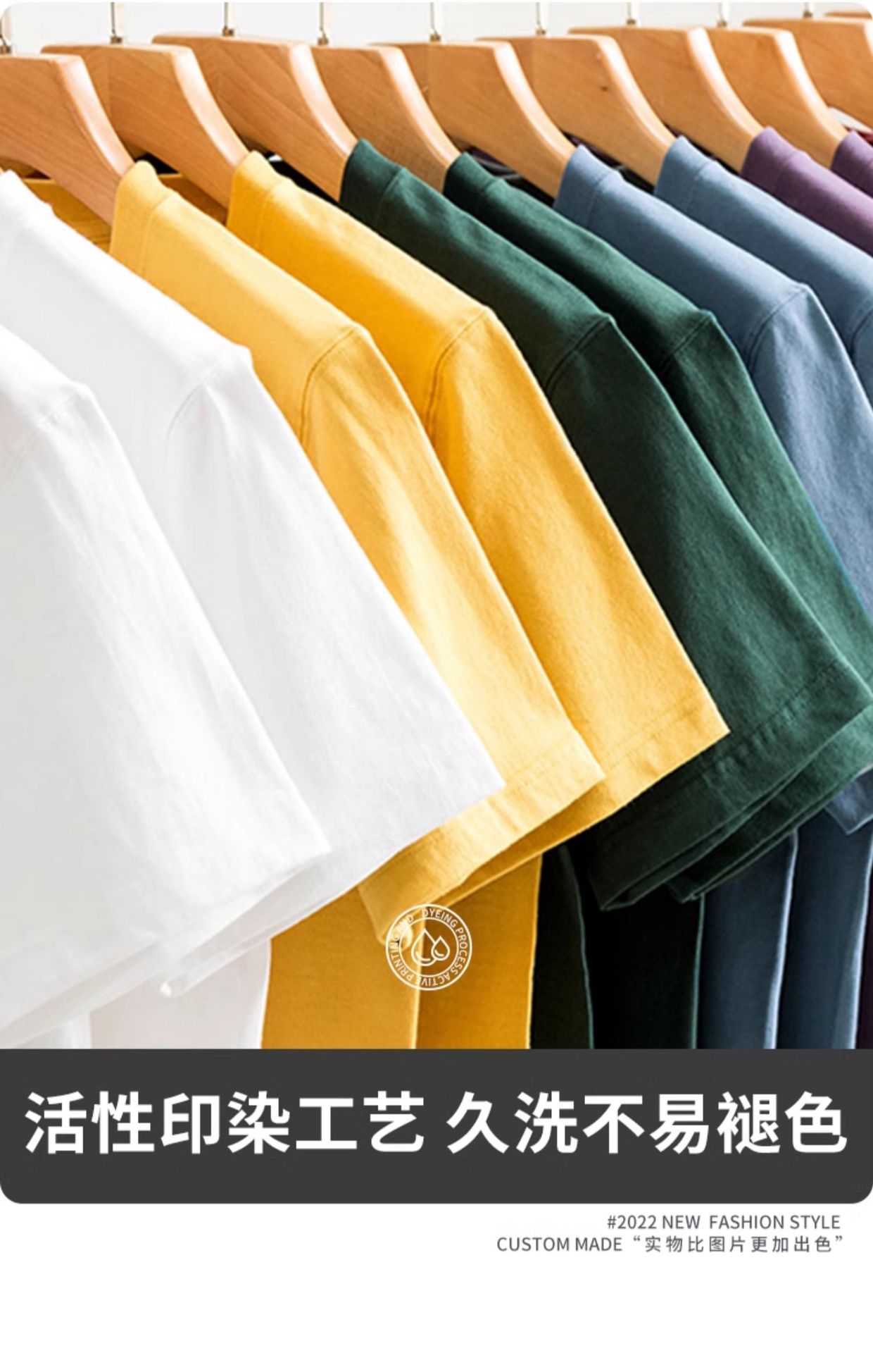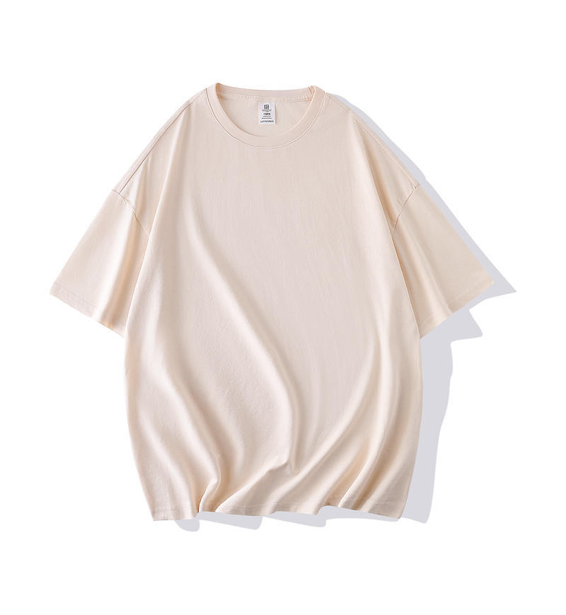 크루 넥 퓨어 코튼 티셔츠 맞춤형 어깨 반 소매 느슨한 단색 티셔츠 광고 셔츠 짧은 소매 클래스 의류 국경 공급스토어 가기