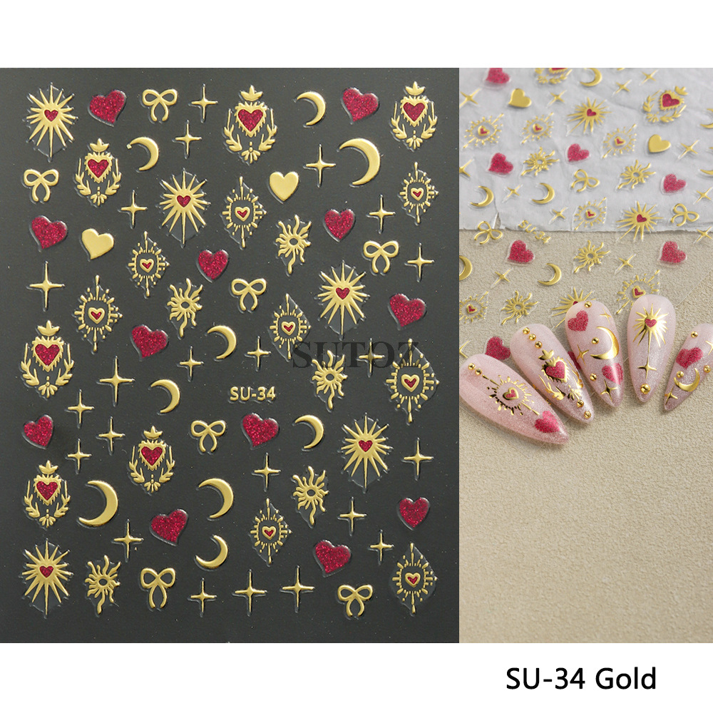 국경 간 핫 네일 아트 스티커 레트로 라이트 럭셔리 바로크 스타 문 못 뒤로 접착 못스토어 가기