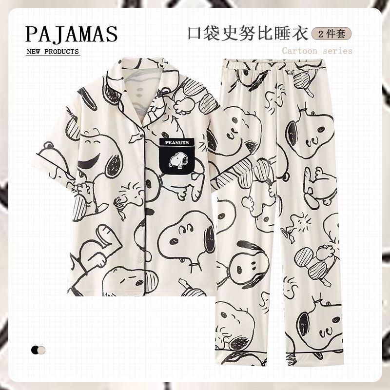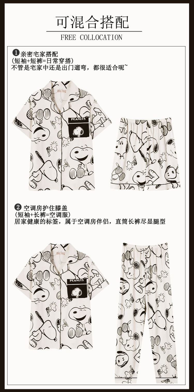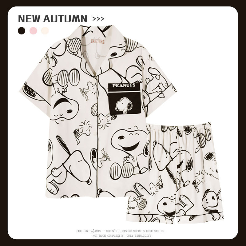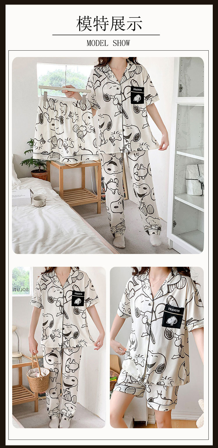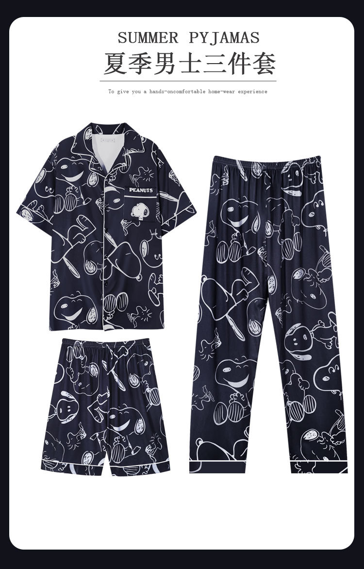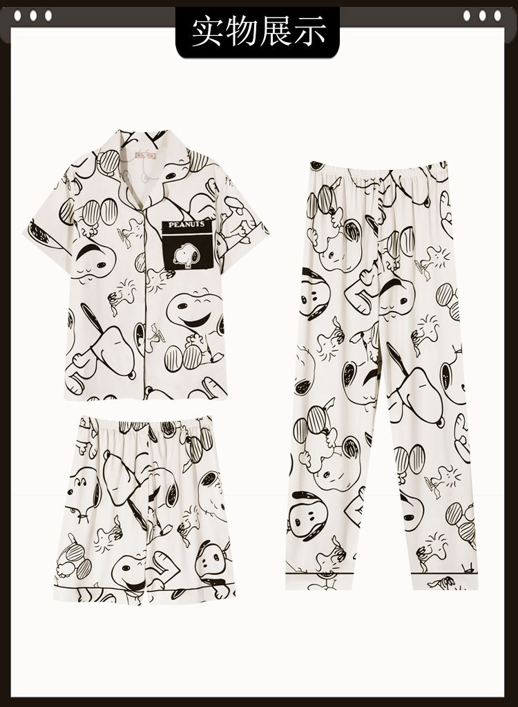 커플 여름 세 조각 잠옷 여성 만화 귀여운 나이 감소 스타일 스누피 여름 청소년 홈 의류 세트