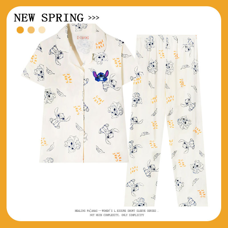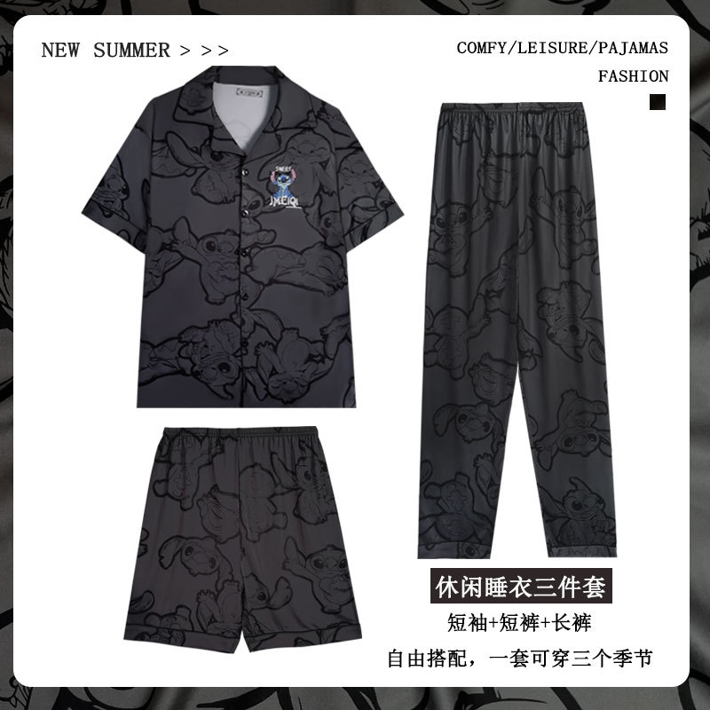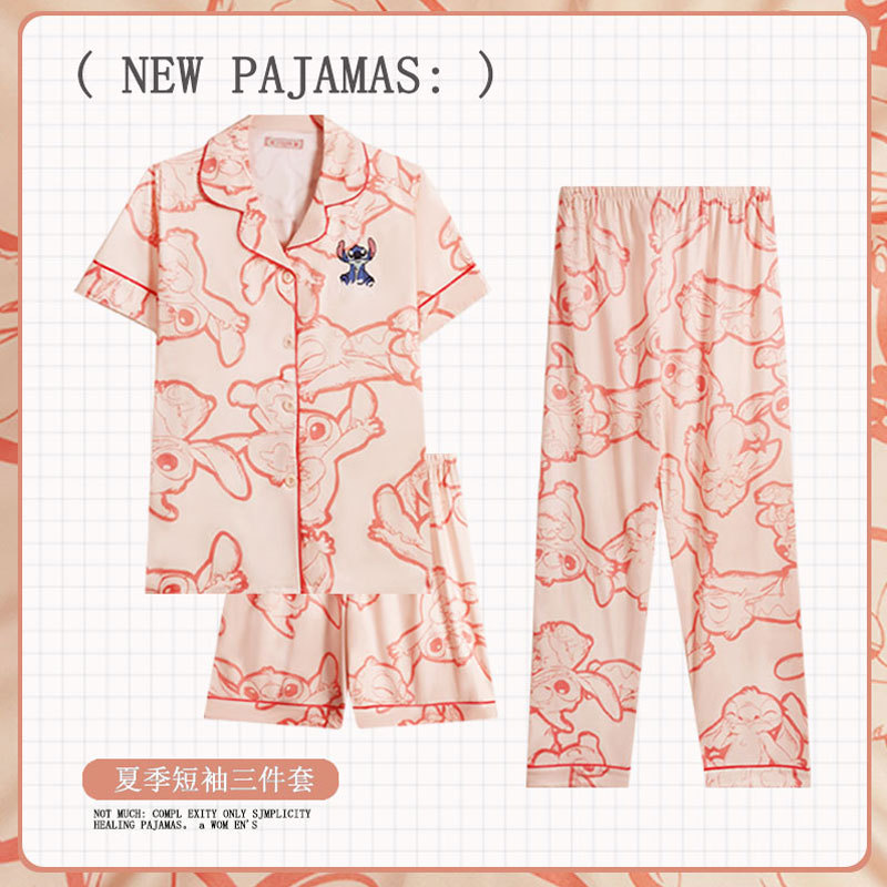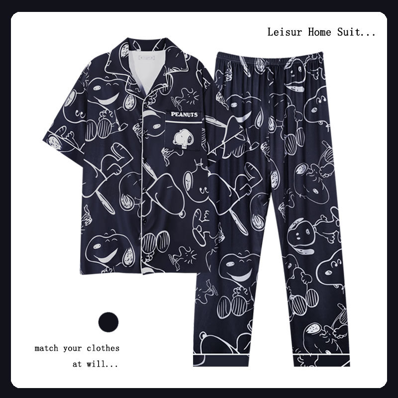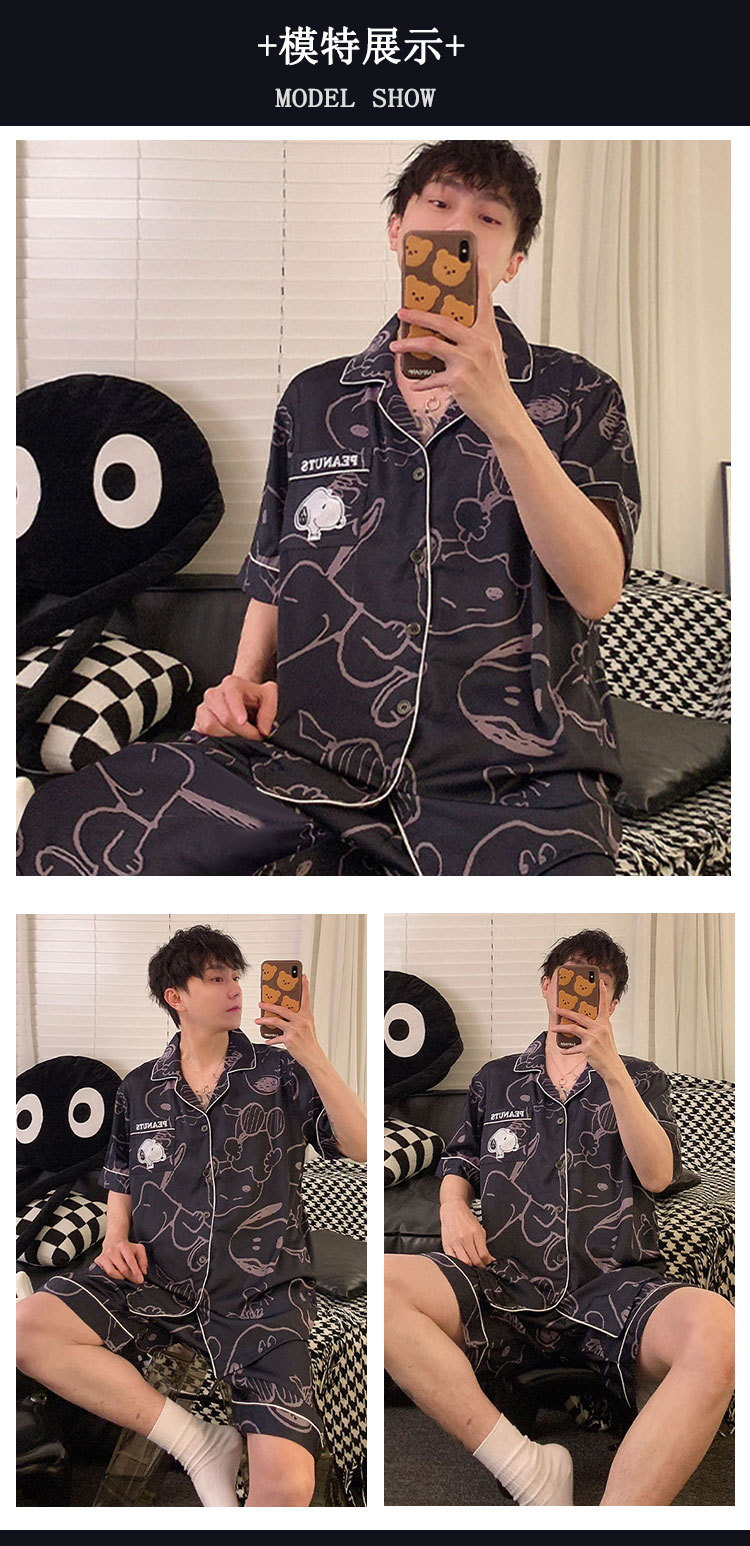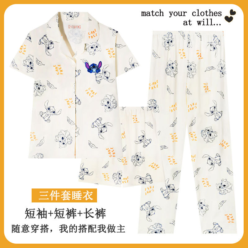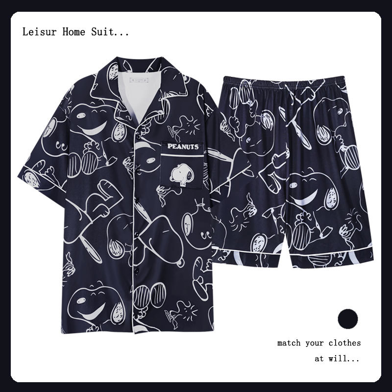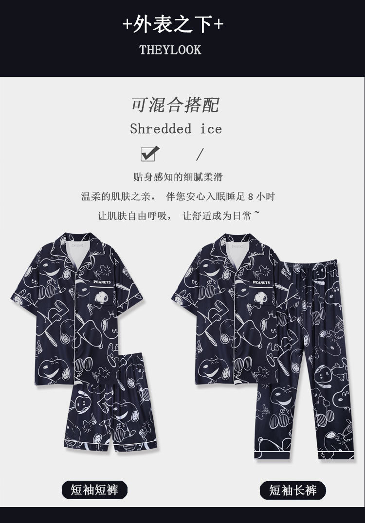 커플 여름 세 조각 잠옷 여성 만화 귀여운 나이 감소 스타일 스누피 여름 청소년 홈 의류 세트