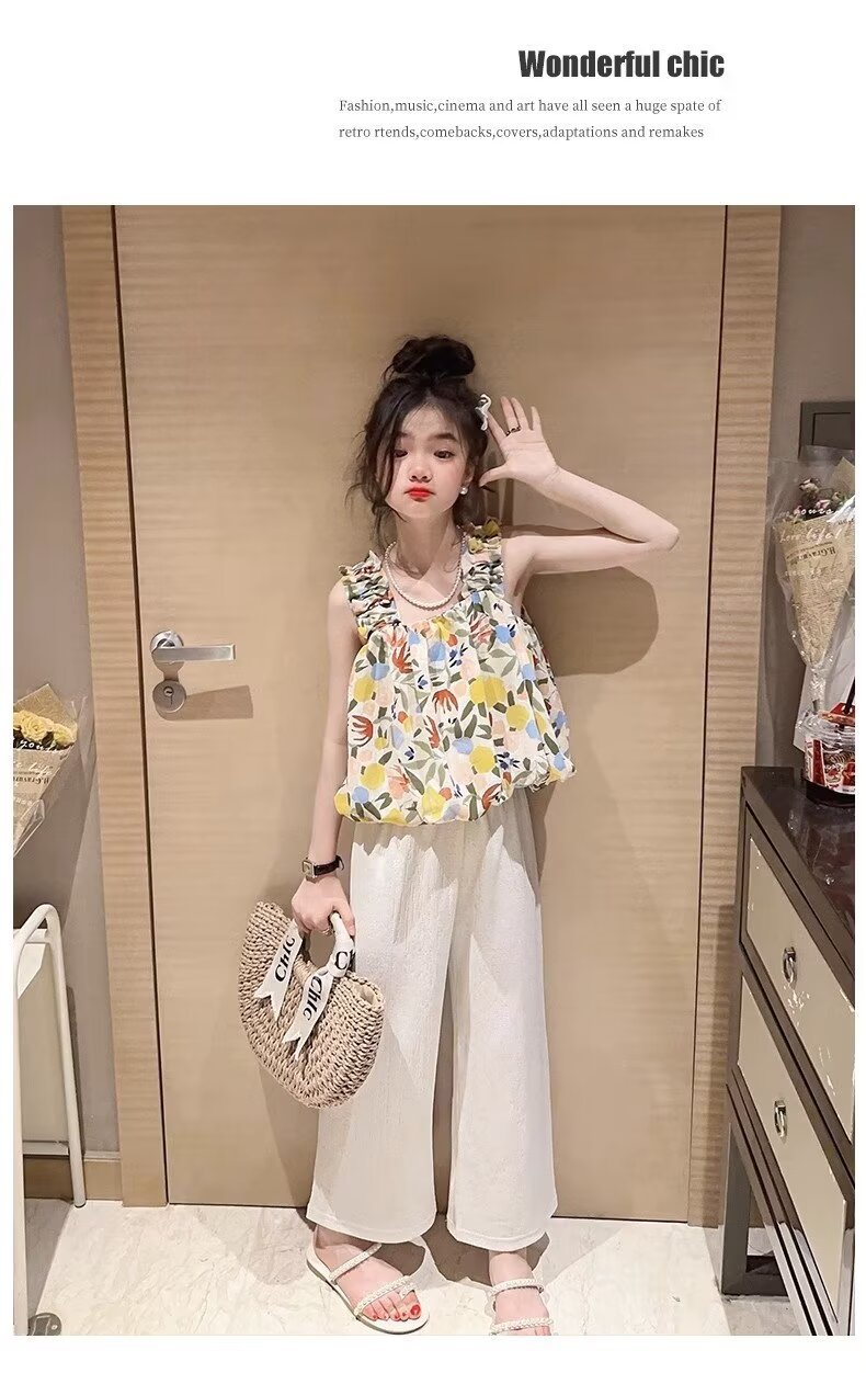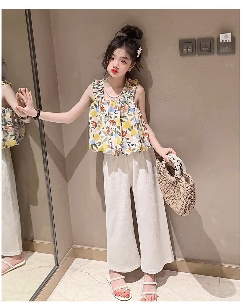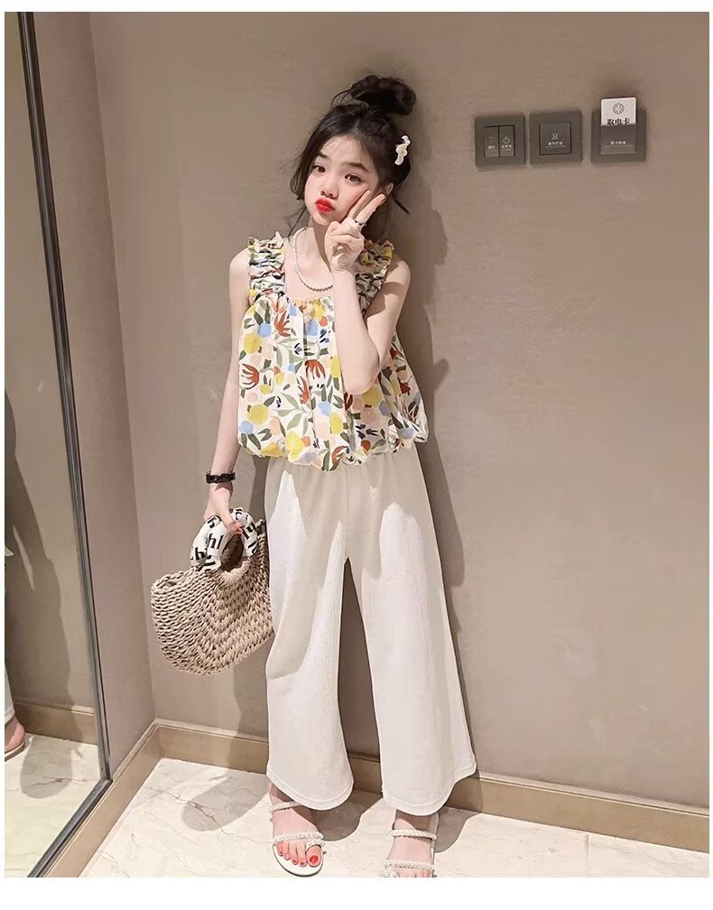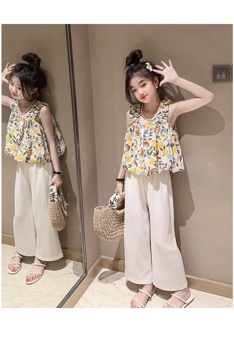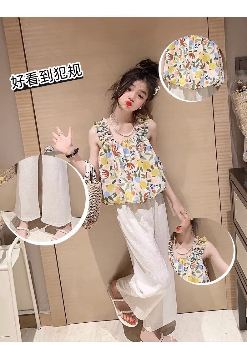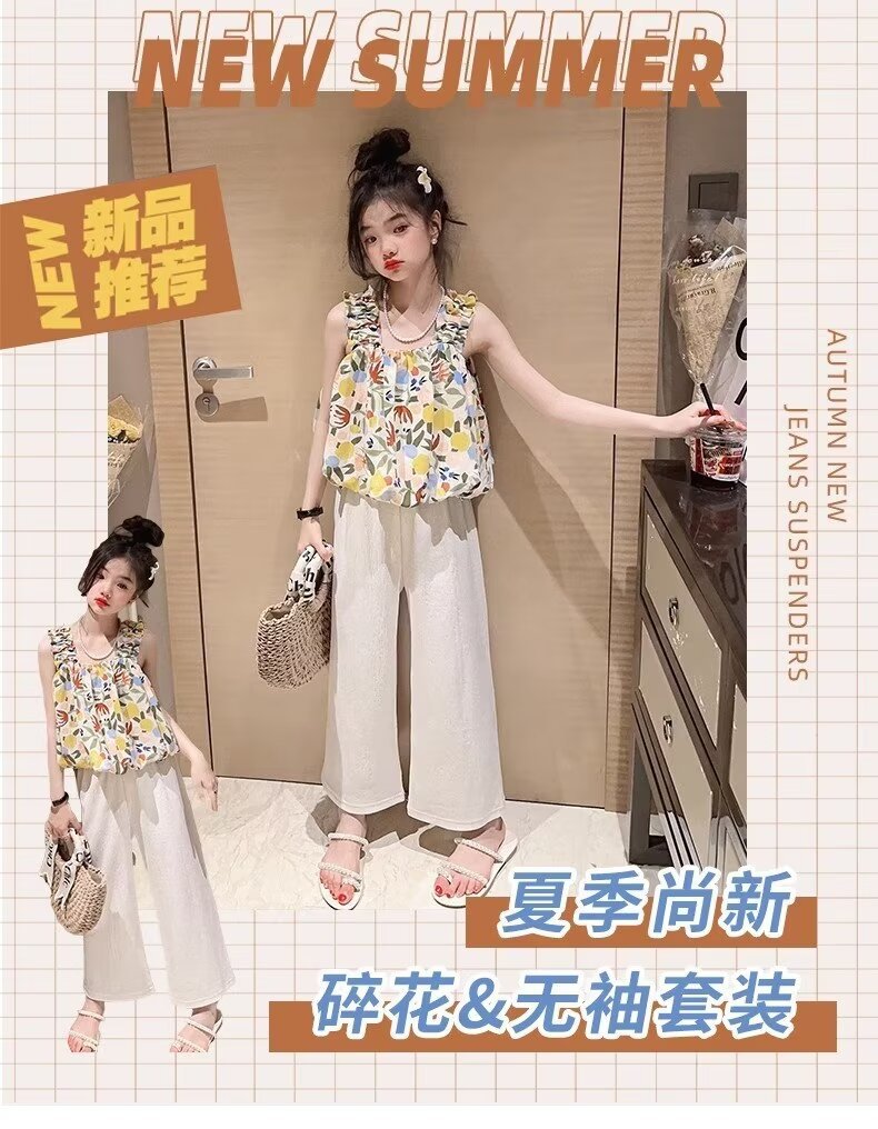 여름 소녀 세트 2024 새로운 세련된 여름 패션 어린이 소녀 투피스 슬링 세트스토어 가기