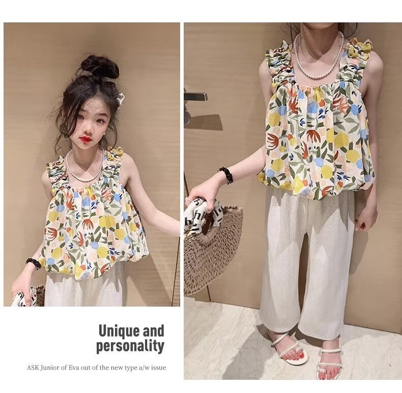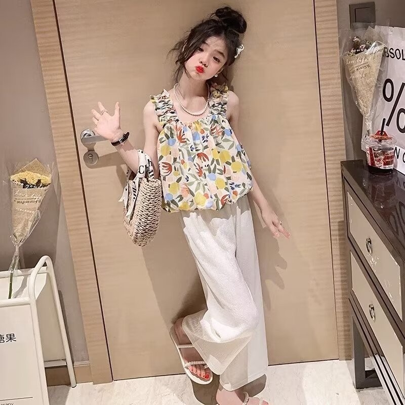 여름 소녀 세트 2024 새로운 세련된 여름 패션 어린이 소녀 투피스 슬링 세트