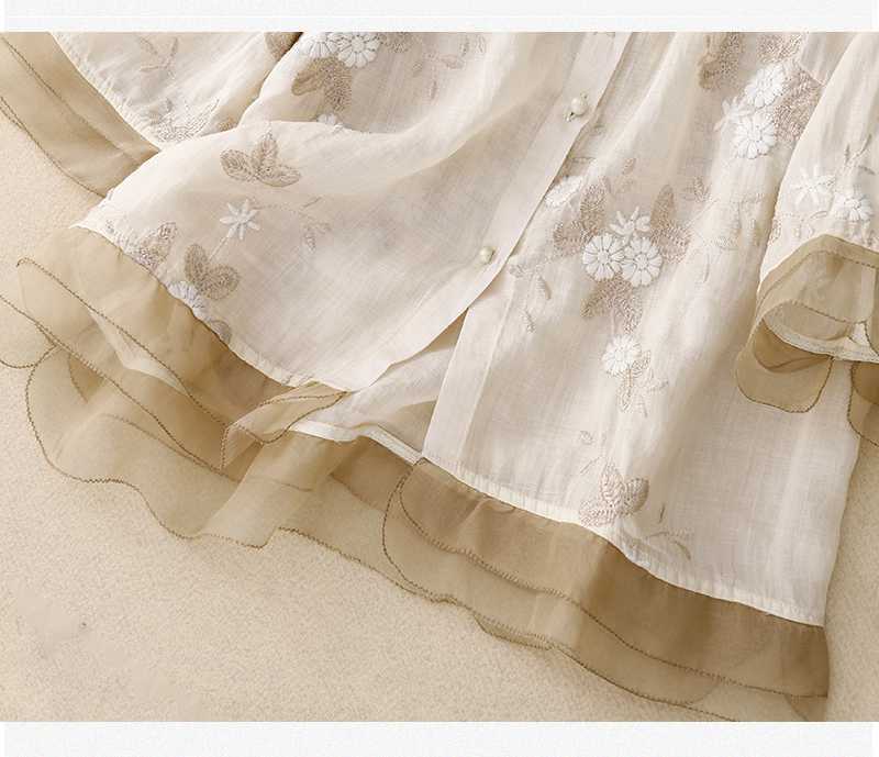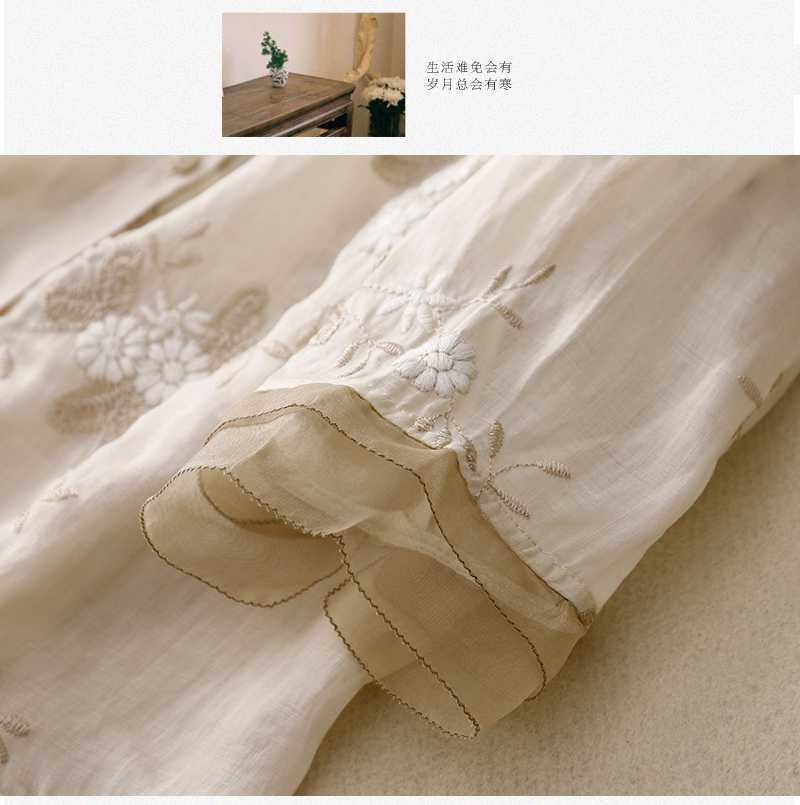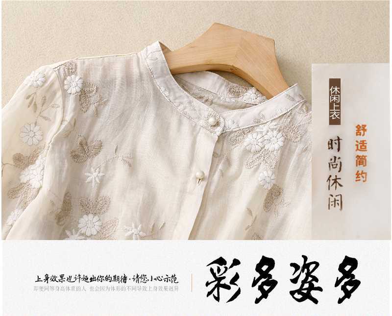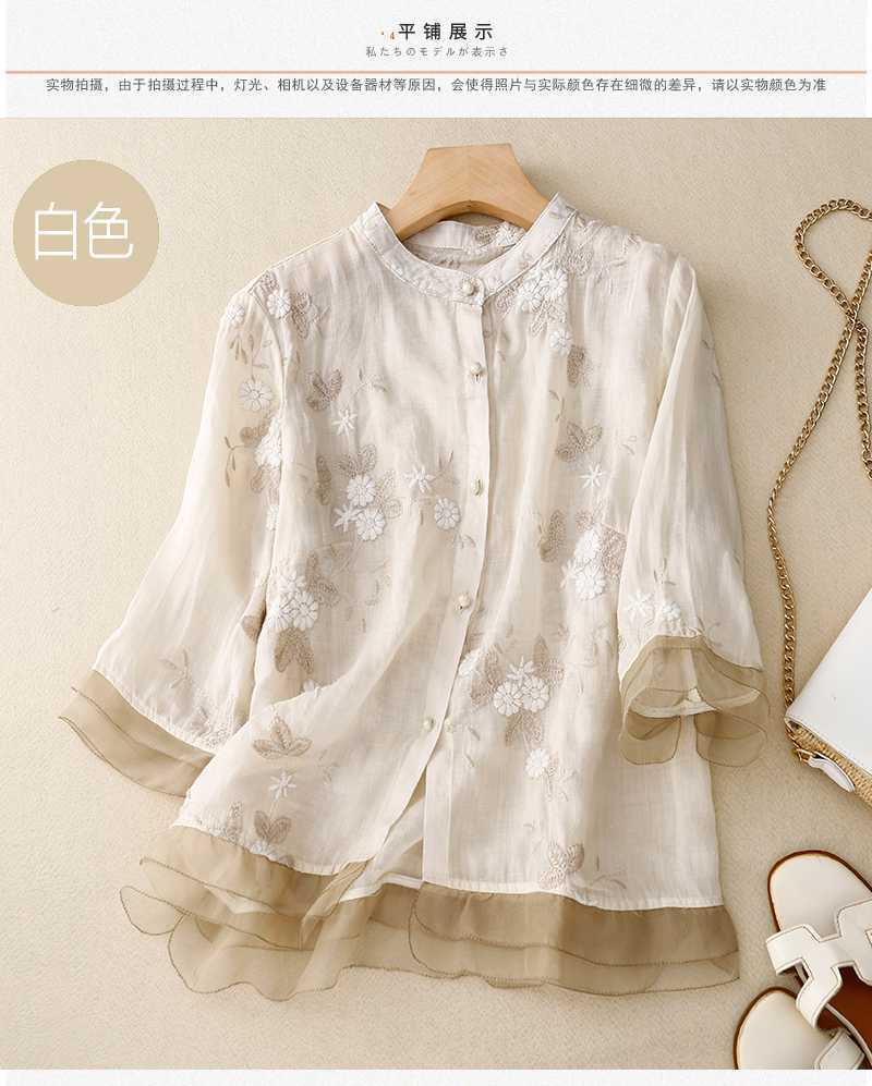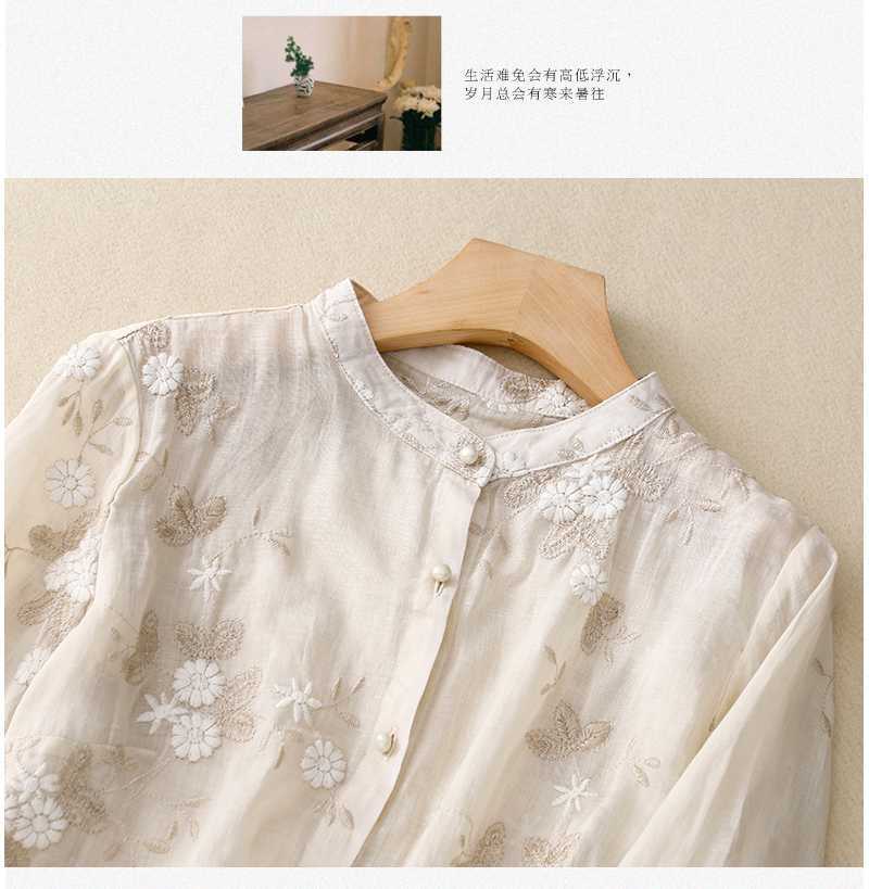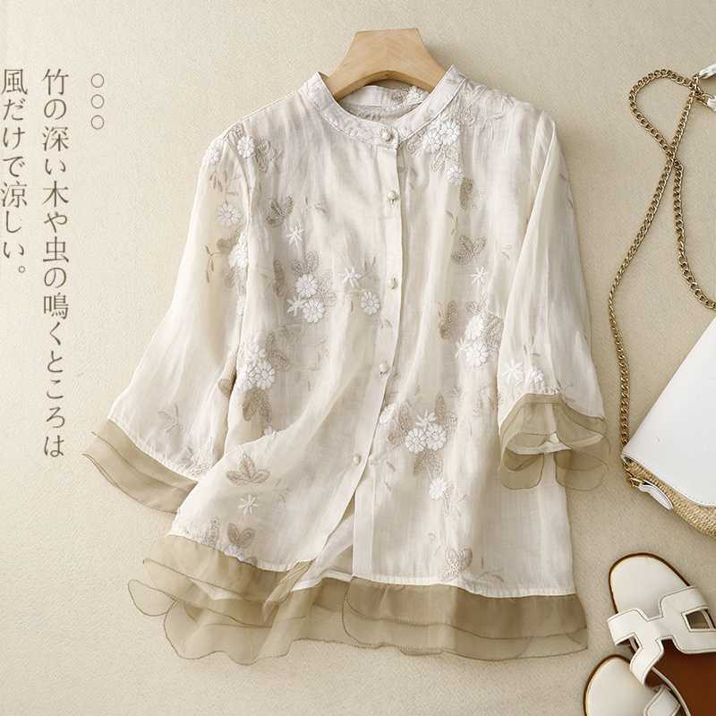 리얼 샷 중공업 라미 탑 여성용 7 점 슬리브 코튼 및 리넨 스티칭 작은 셔츠 여성용 예술적 레트로 새로운 스타일스토어 가기