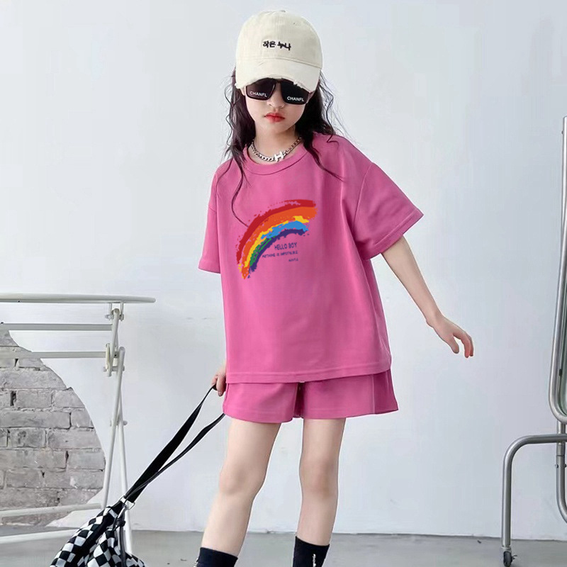 여아 여름 의류 세트 2025 신상 여아용 세련되고 캐주얼한 여름 아동 반바지 투피스 세트 루즈핏 트렌디