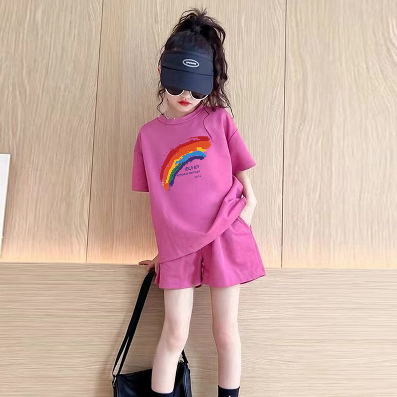 여아 여름 의류 세트 2025 신상 여아용 세련되고 캐주얼한 여름 아동 반바지 투피스 세트 루즈핏 트렌디스토어 가기