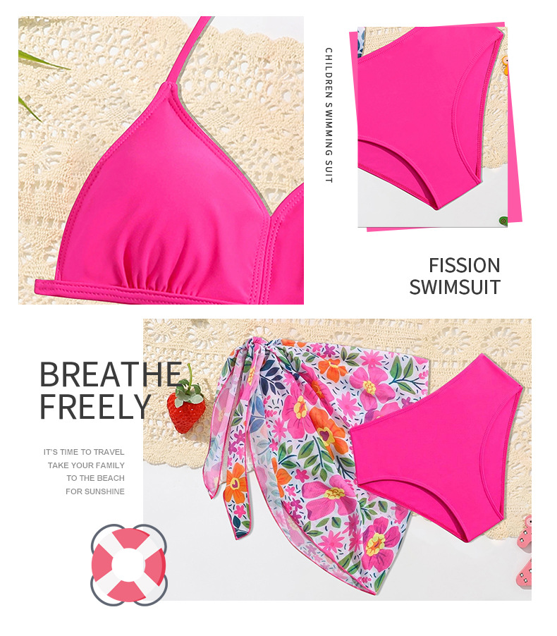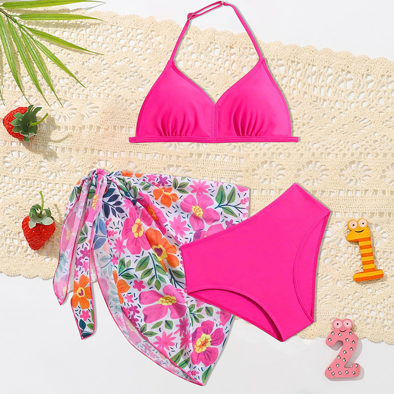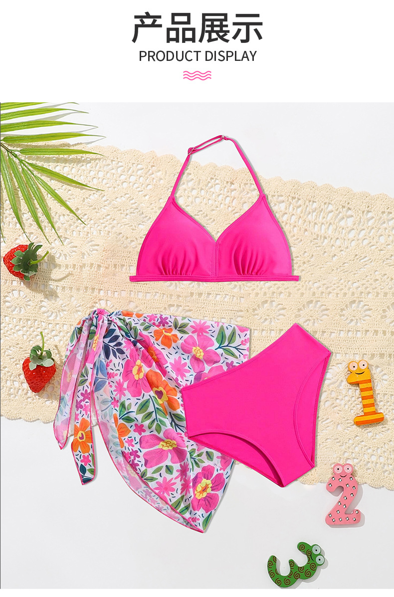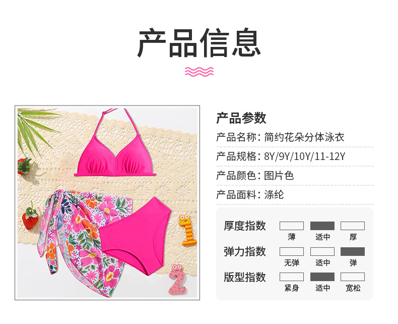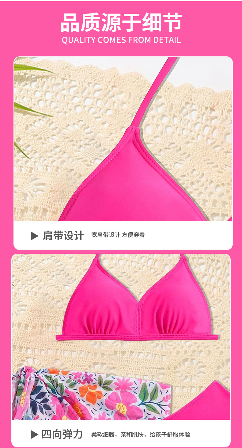 2024 새로운 여자 수영복 3 피스 어린이 인쇄 분할 수영복 중소 어린이 국경 수영복 아기 소녀 용