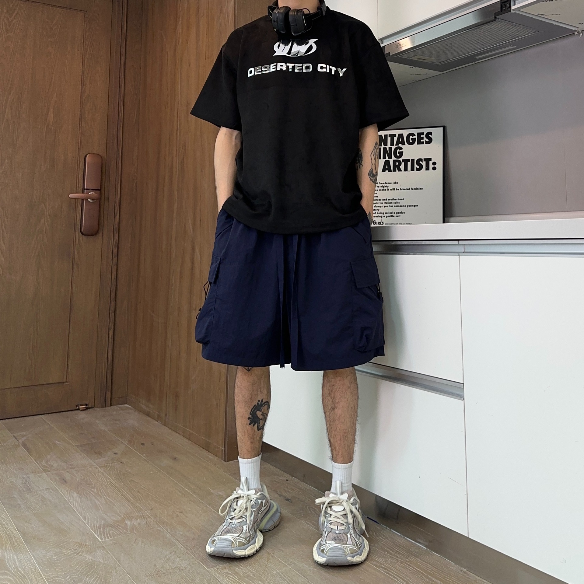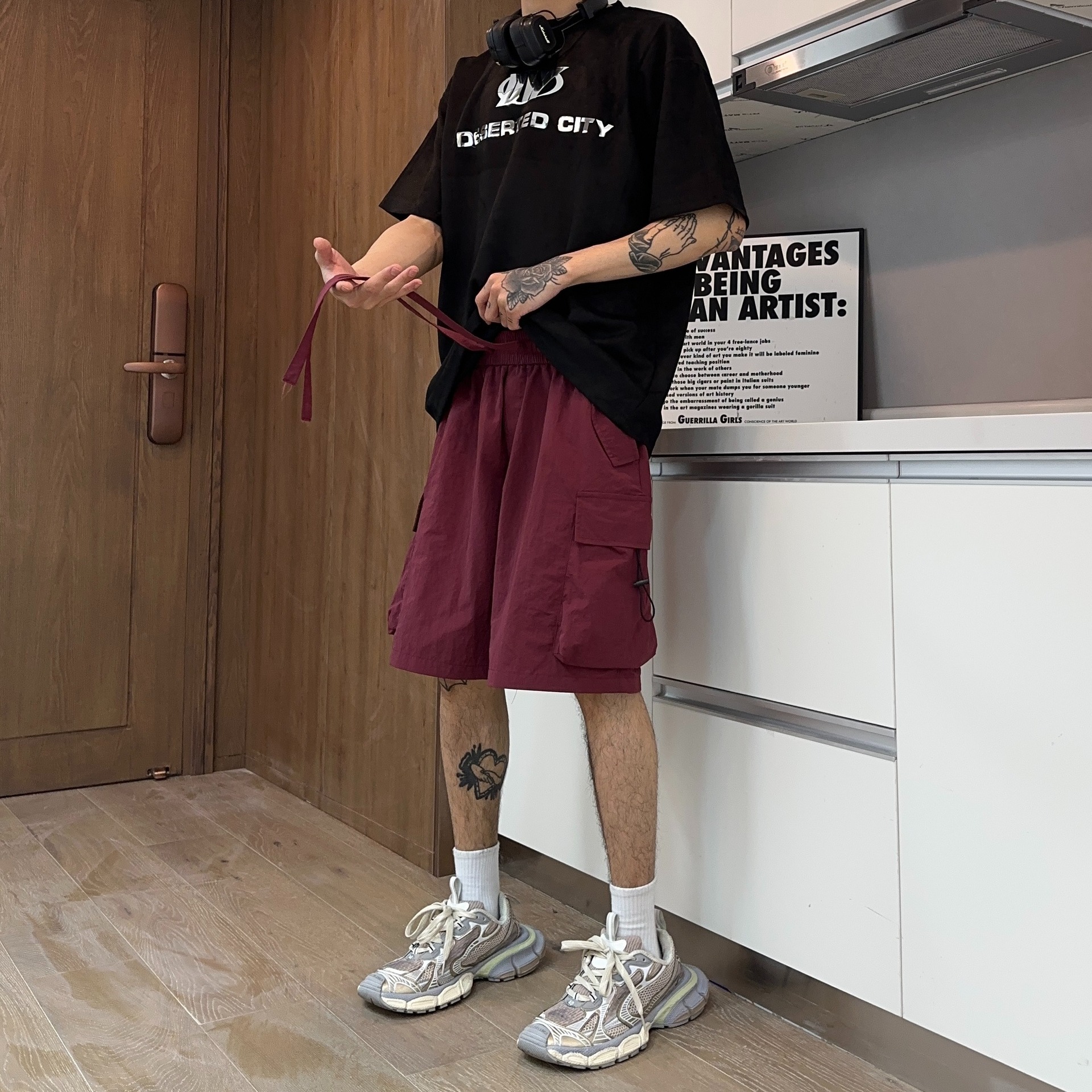 남자 달리기 여름 얇은 휴대 전화 미국 농구 빠른 건조 하이 스트리트 새로운 높은 길이 바지 스포츠 반바지