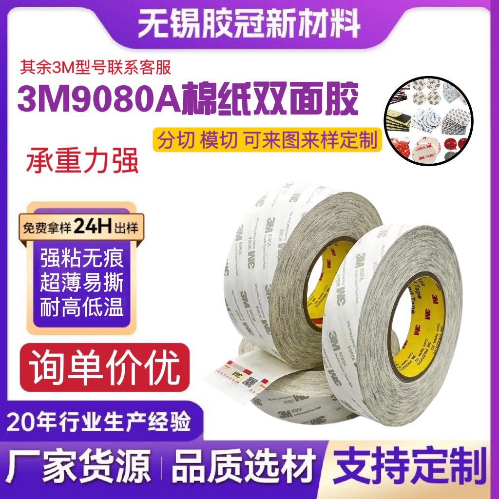 3M9080A 양면 접착 테이프 초박형 하이 스틱 이음매없는 고온 저항 강한 부직포 면 종이 양면 접착 다이 커팅