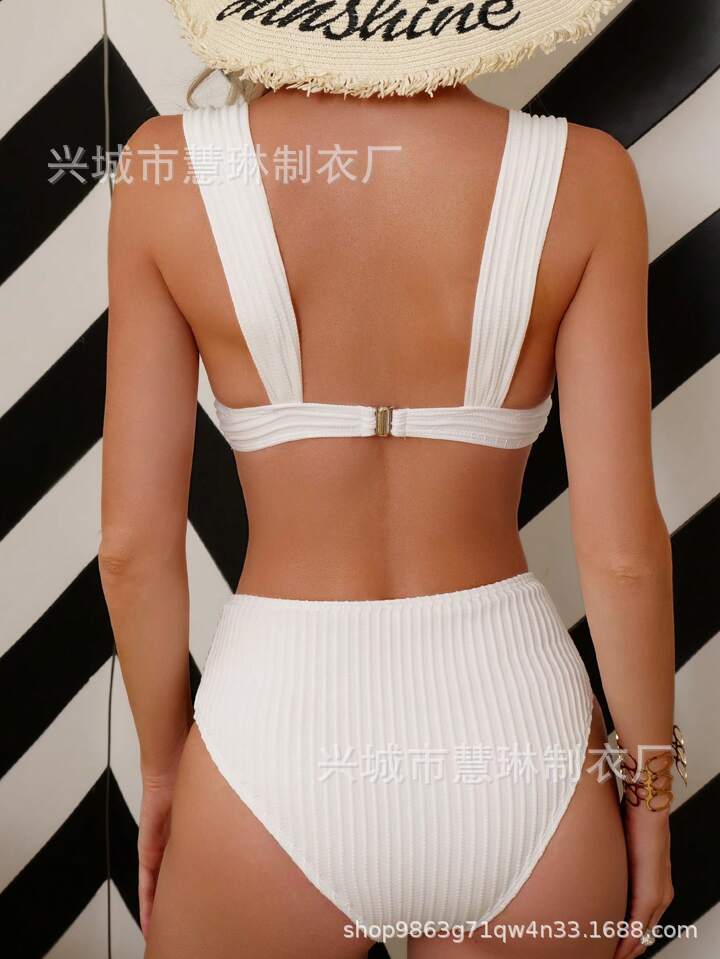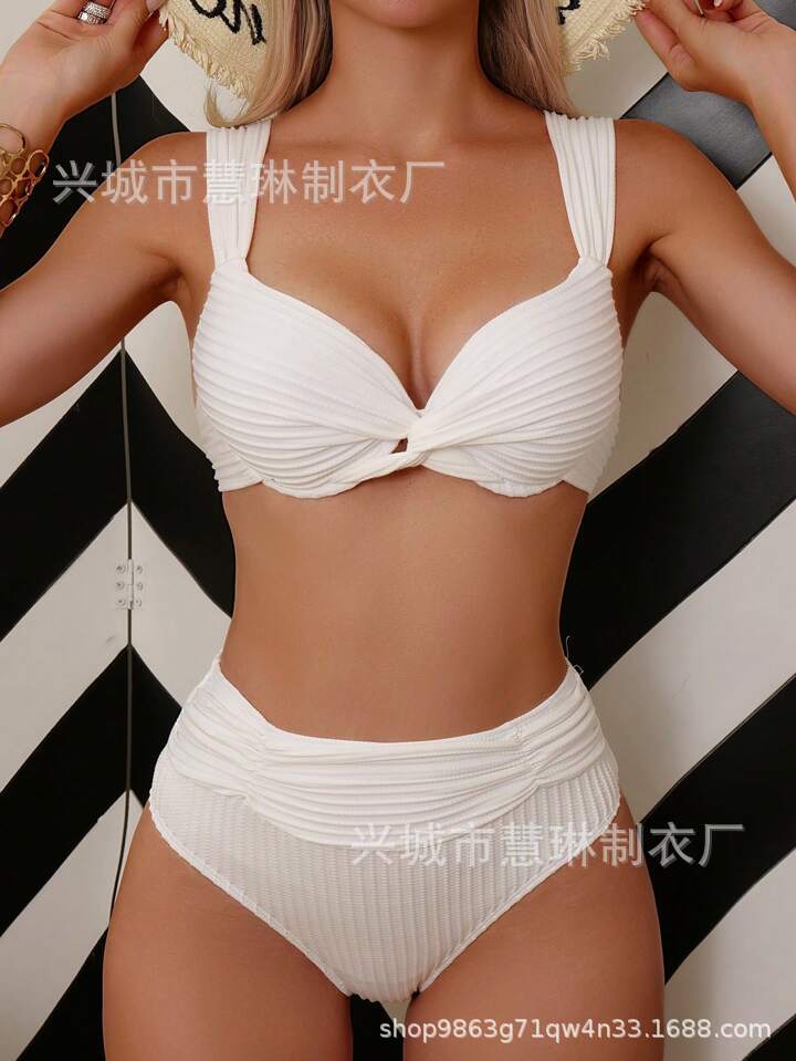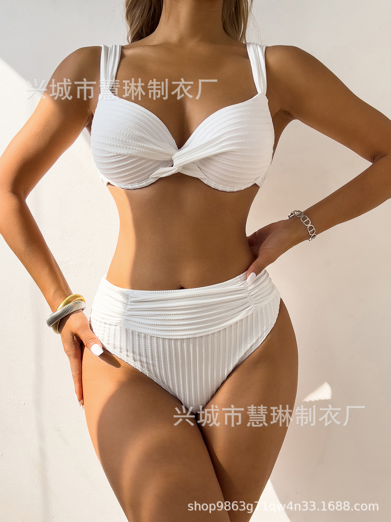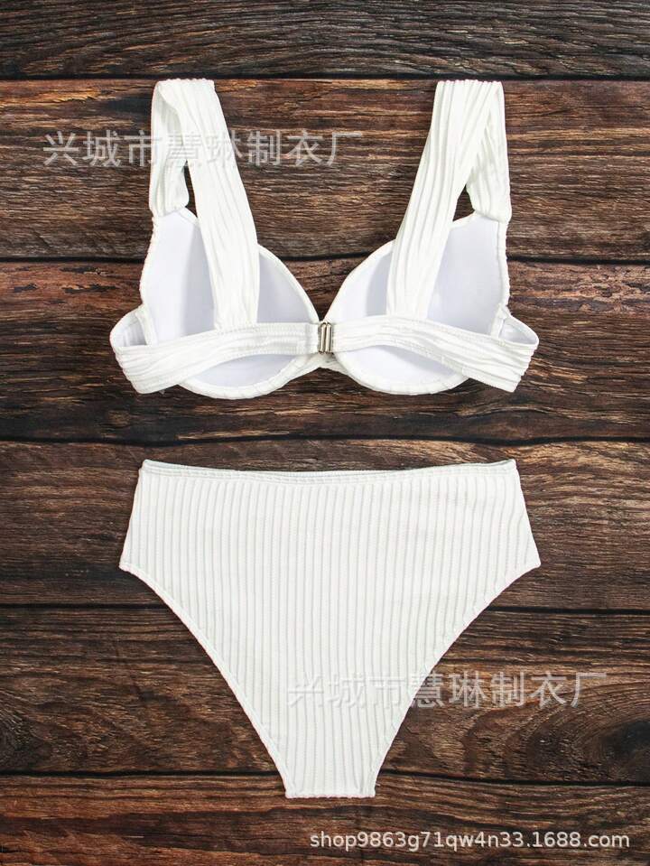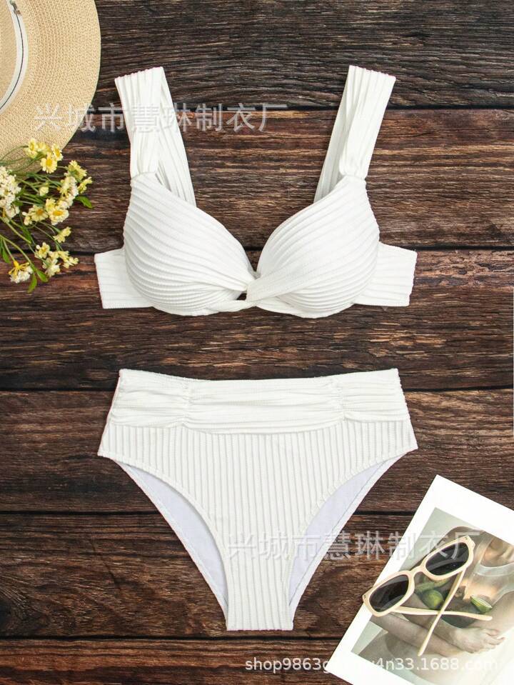 유럽과 미국의 새로운 패션 섹시 비키니 세트 화이트 텍스처 하이웨이스트 푸쉬업 하드컵 수영복