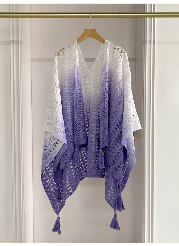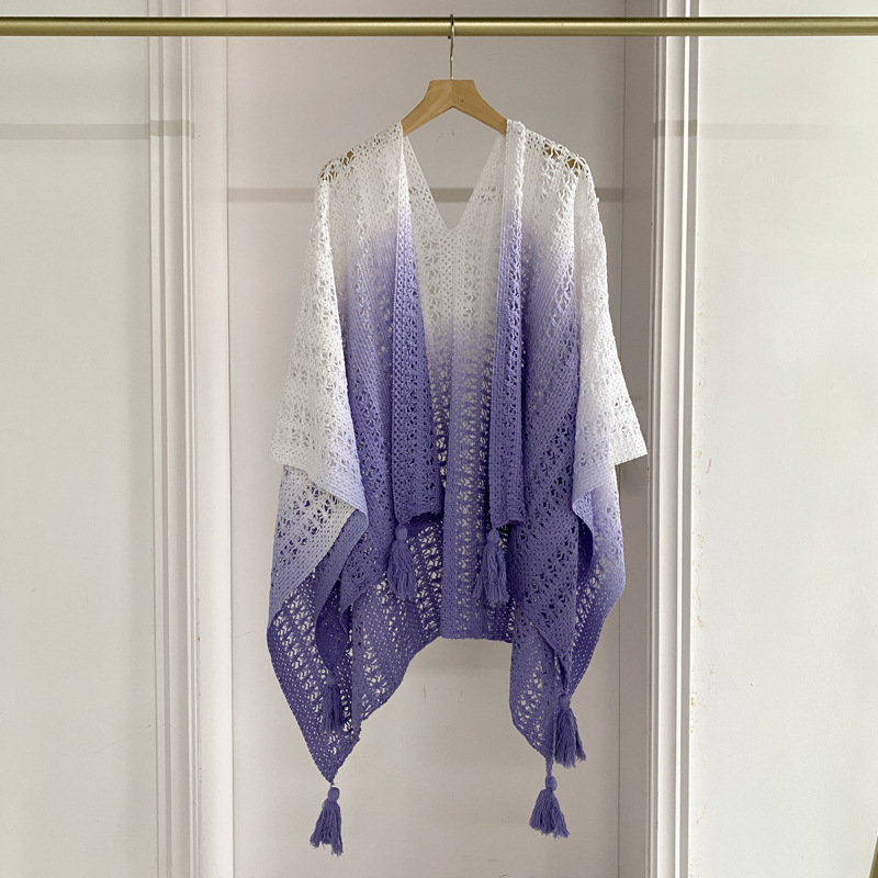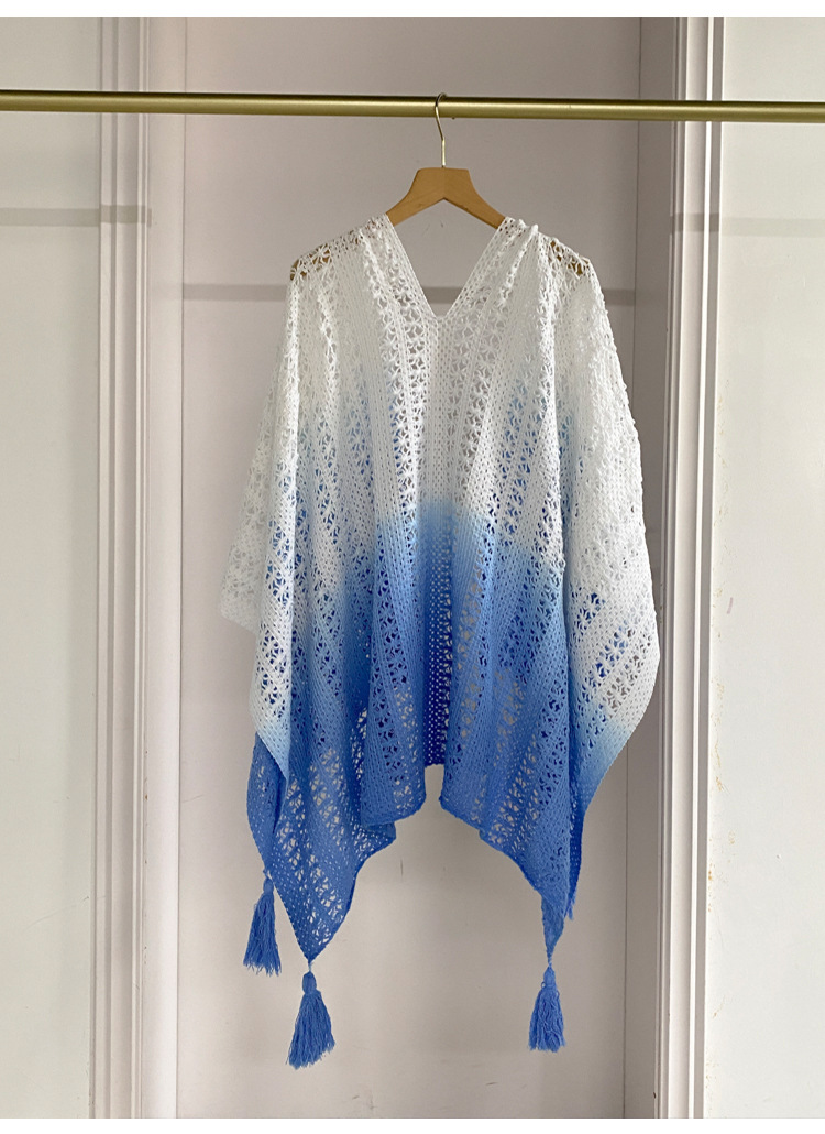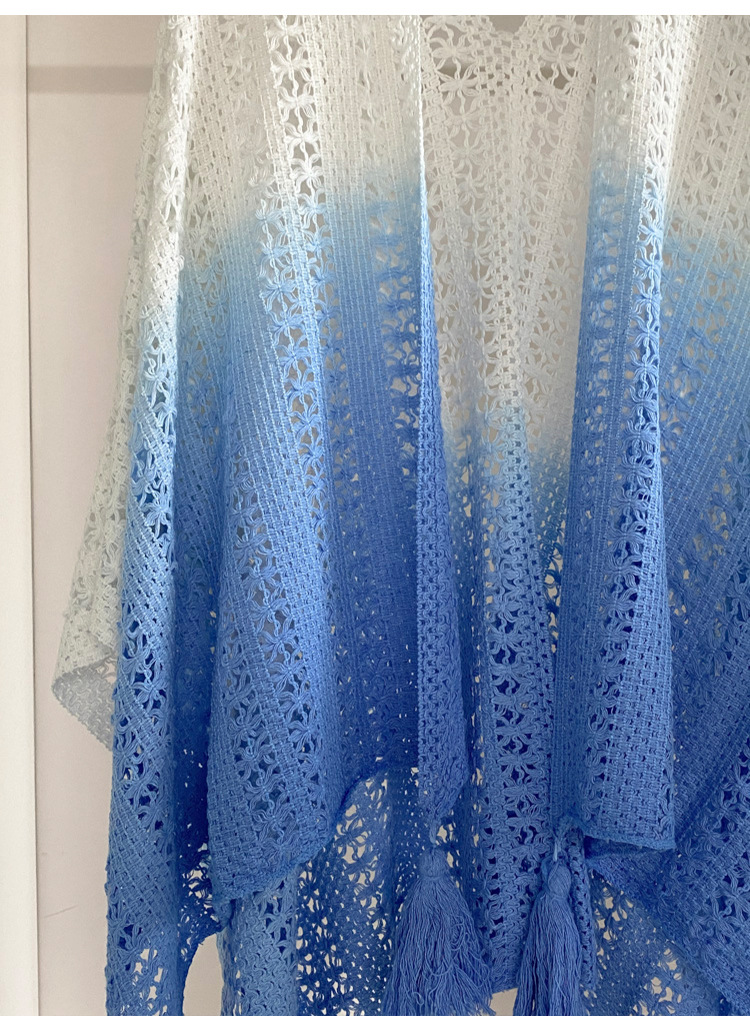 2024 년 민족 스타일 윈난 블루 다이 블루와 화이트 도자기 술 니트 그라디언트 대형 목도리 여행 사진 아트 스카프