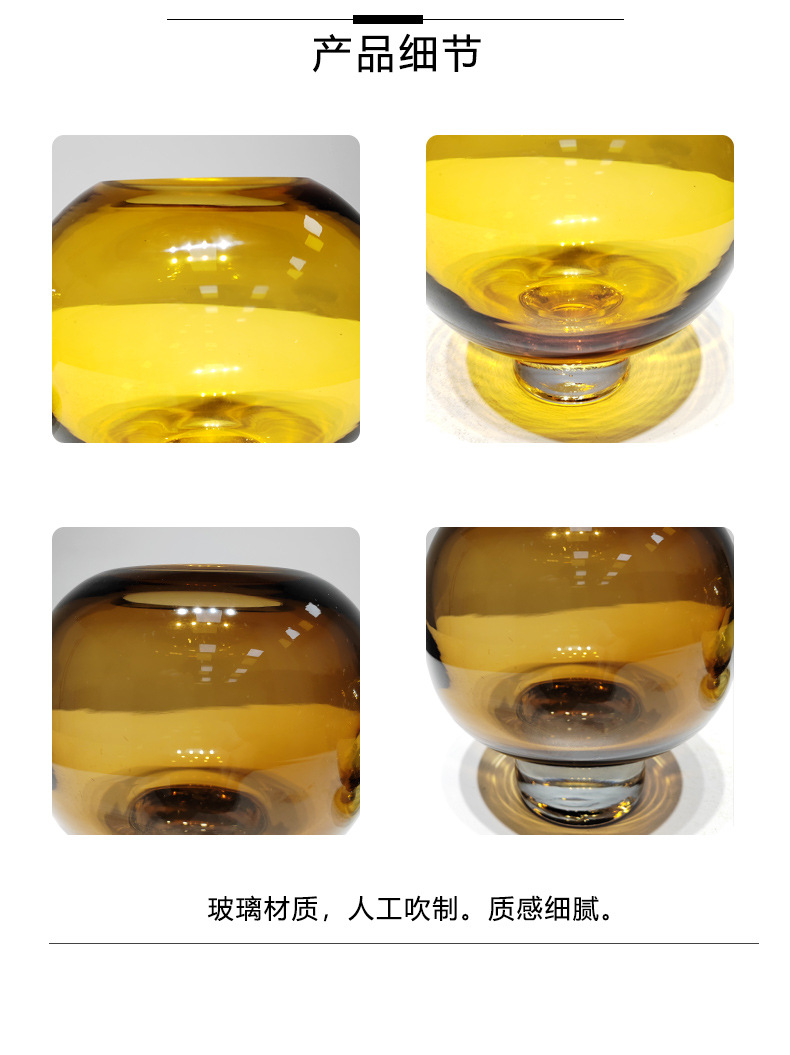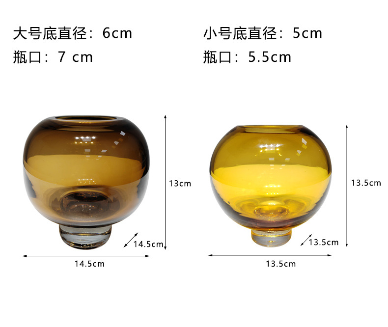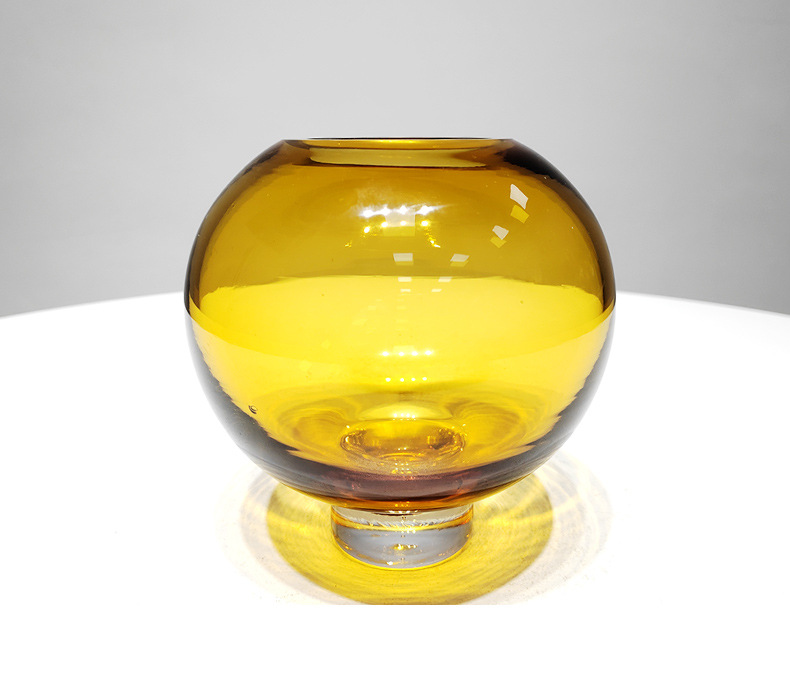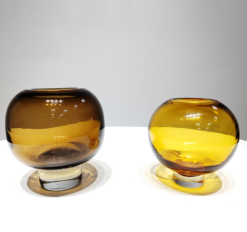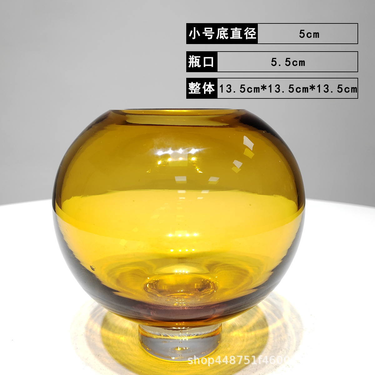 간단한 입장 럭셔리 두꺼운 바닥 라운드 작은 입 유리 꽃병 차 컬러 꽃병 고급 디자이너 레스토랑 데스크탑 꽃 꽃병