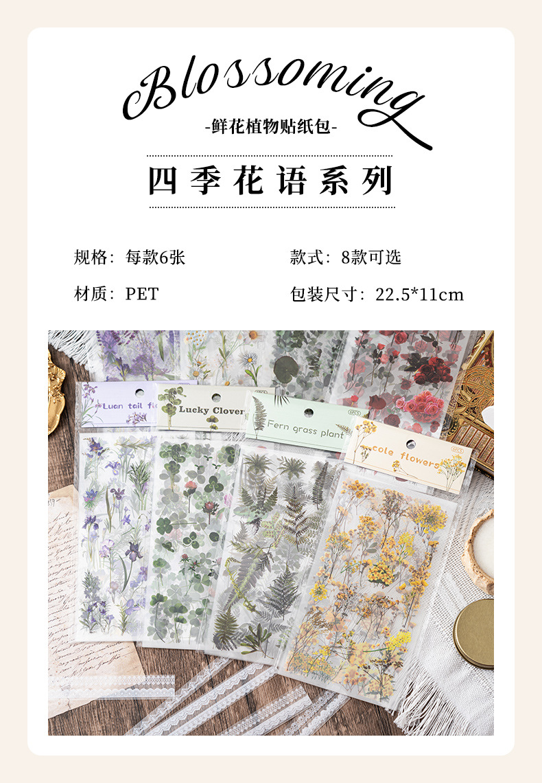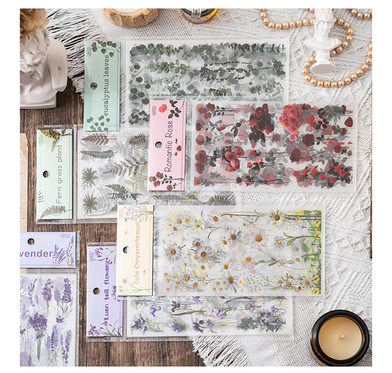 식물 꽃 스티커 팩 애완 동물 컷 프리 식물 꽃 손 계정 소재 스티커 소녀 장식 손 계정 스티커스토어 가기