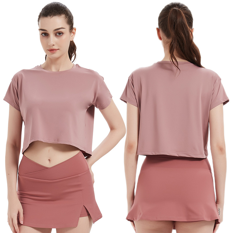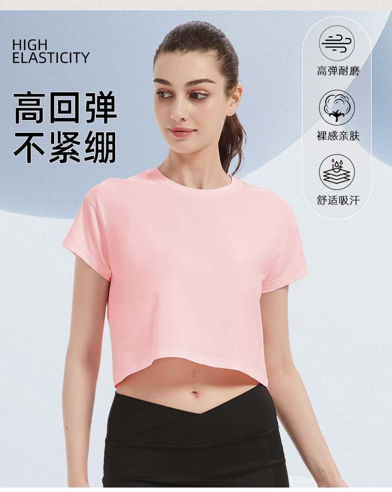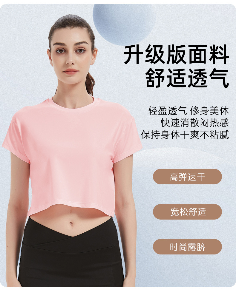 시게투 요가 의류 여성의 봄과 여름 느슨한 플러스 사이즈 반팔 티셔츠 러닝 트레이닝 피트니스 스포츠 탑