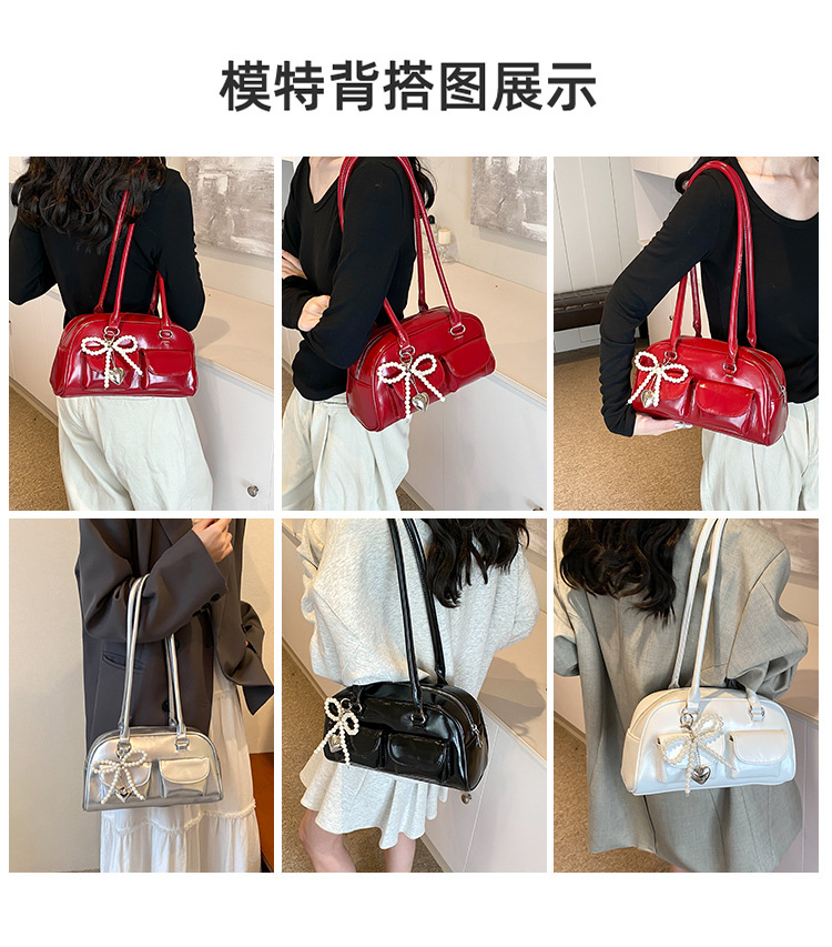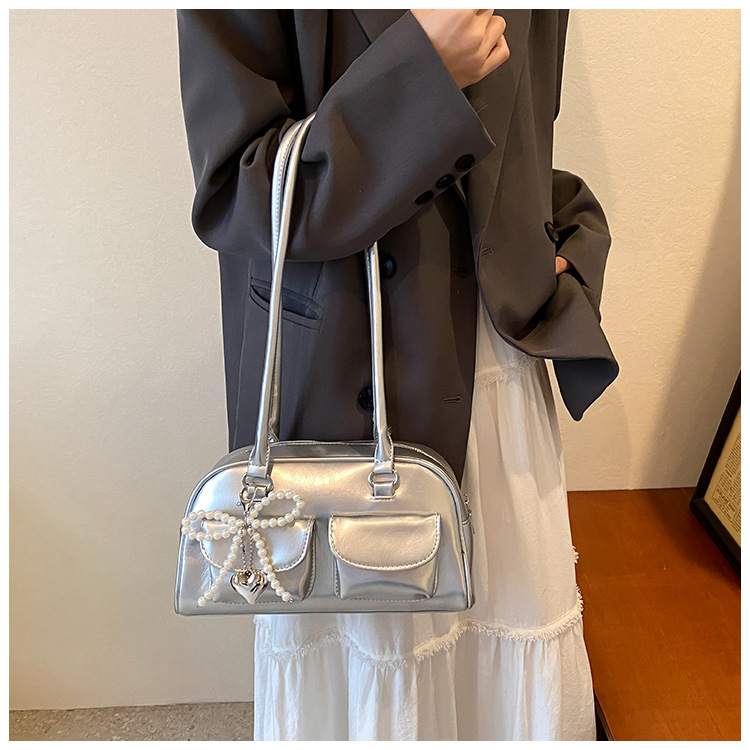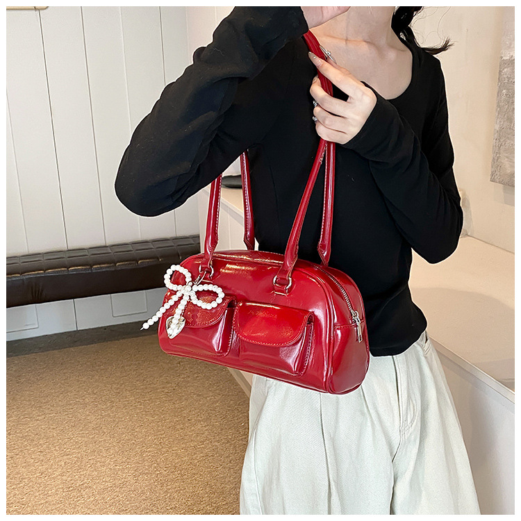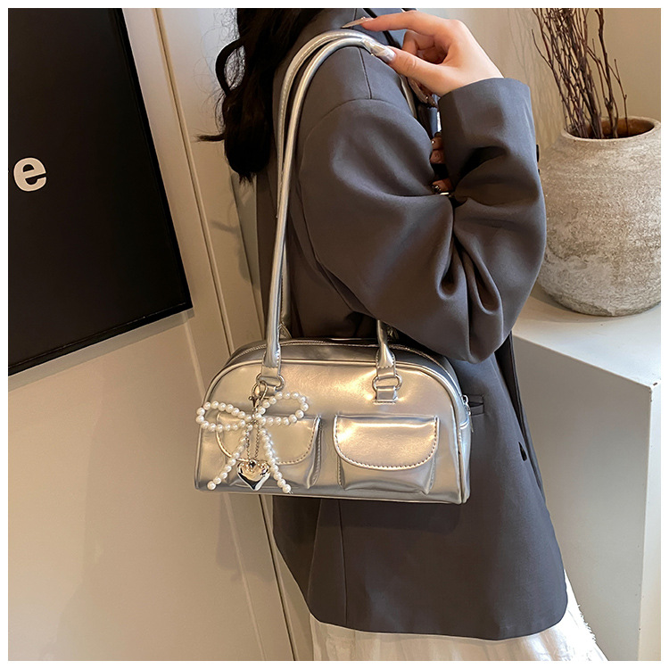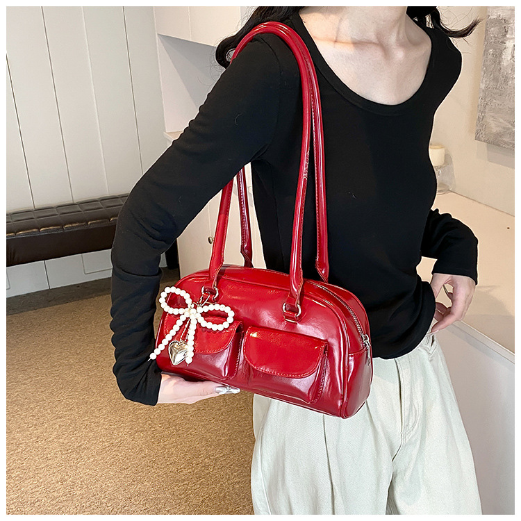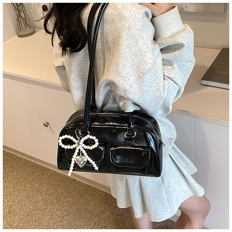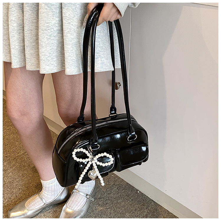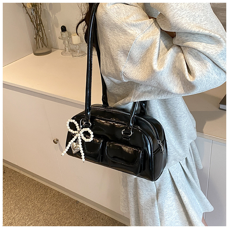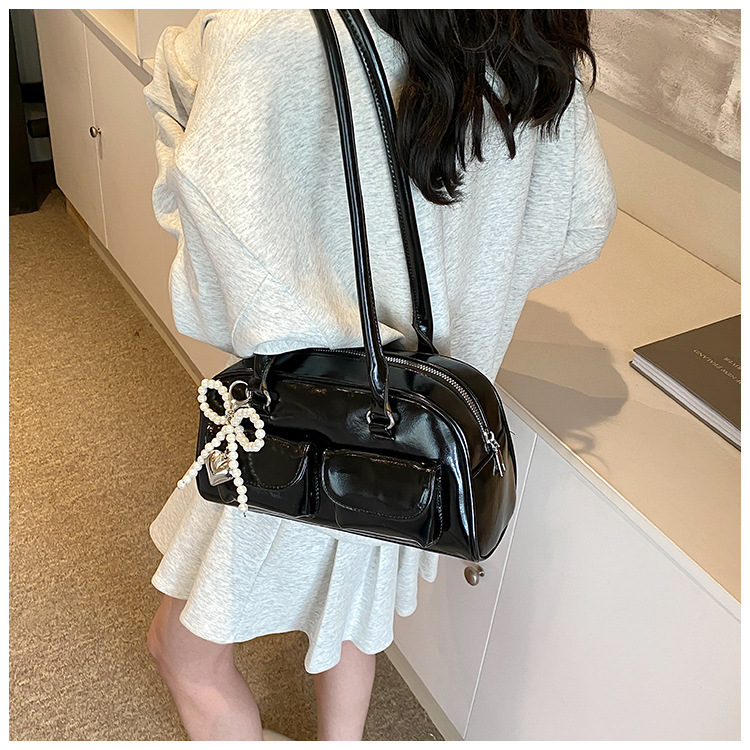 여성을위한 한국 틈새 스플 라이스 숄더 백 2025 새로운 볼링 가방 세련된 복고풍 다용도 보스턴 겨드랑이 가방