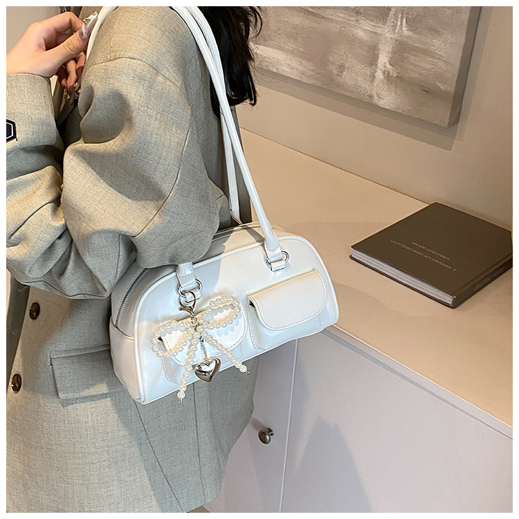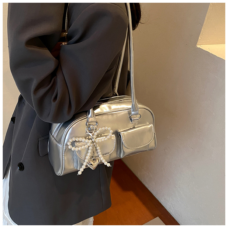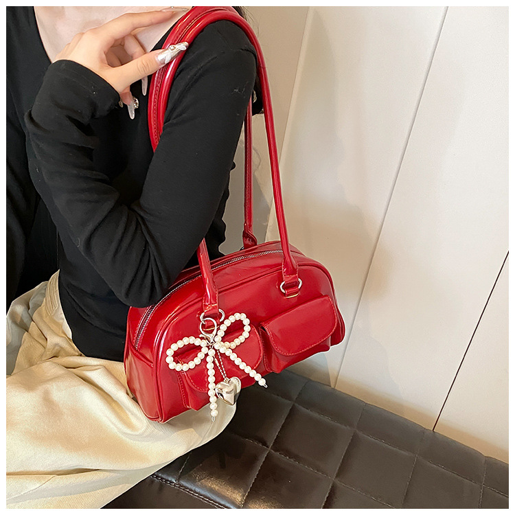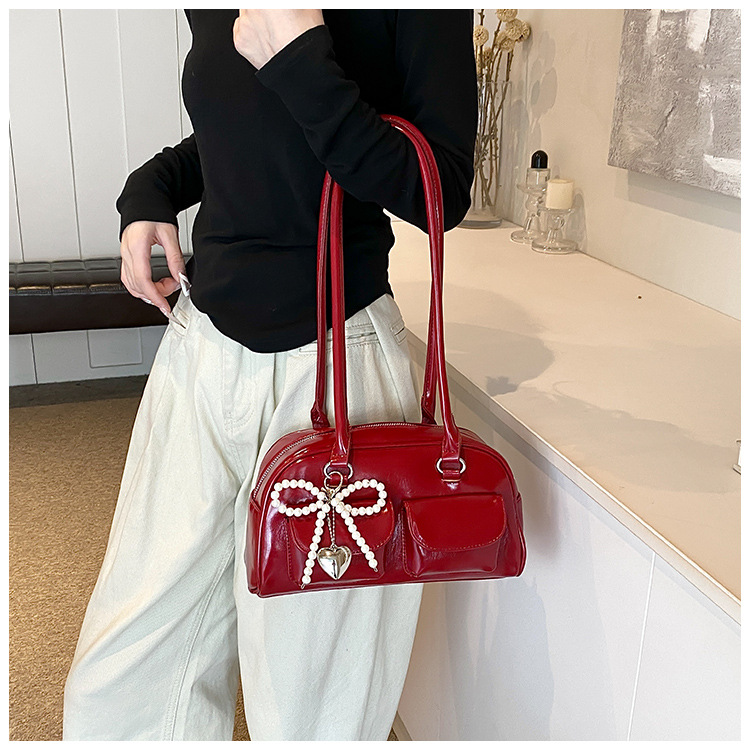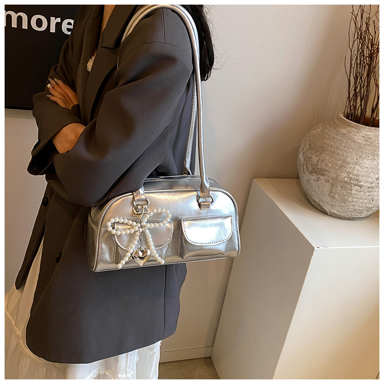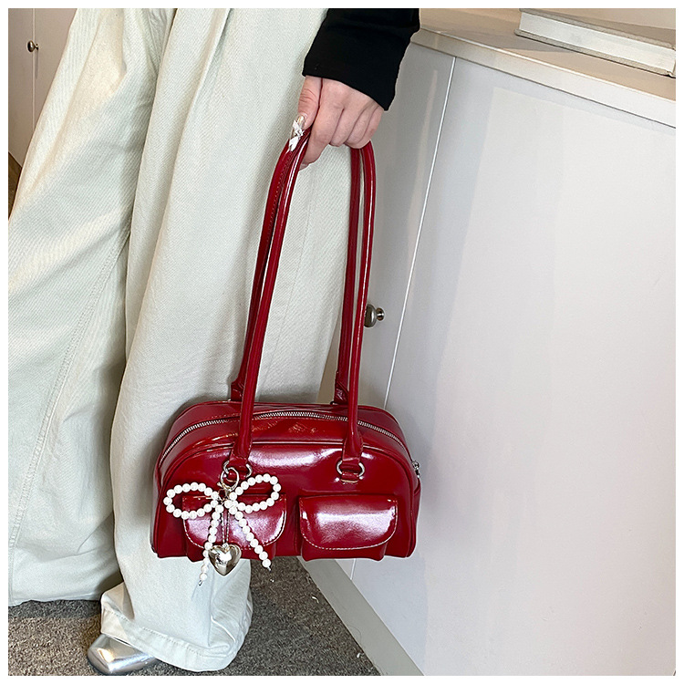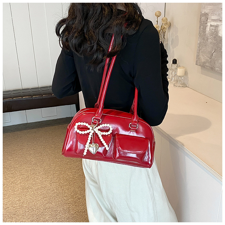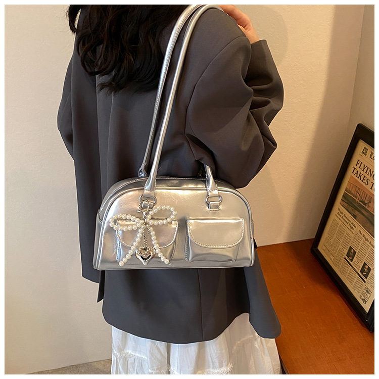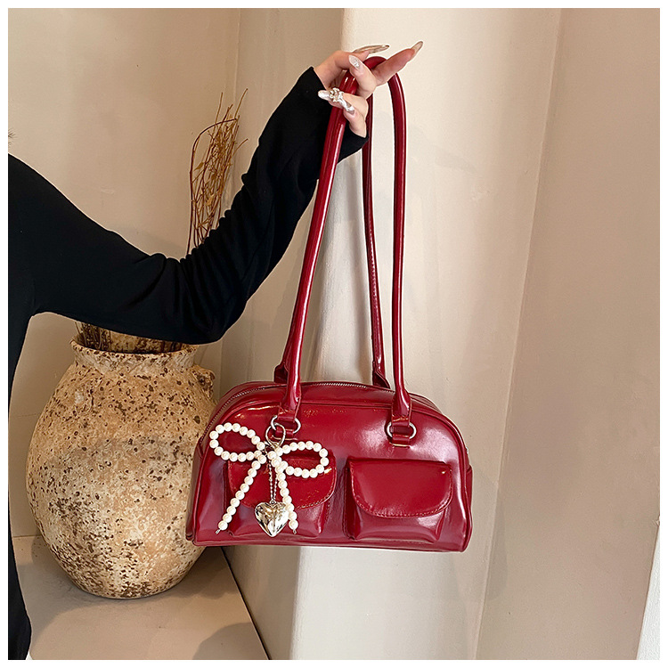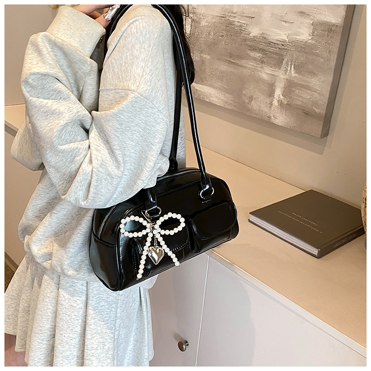 여성을위한 한국 틈새 스플 라이스 숄더 백 2025 새로운 볼링 가방 세련된 복고풍 다용도 보스턴 겨드랑이 가방