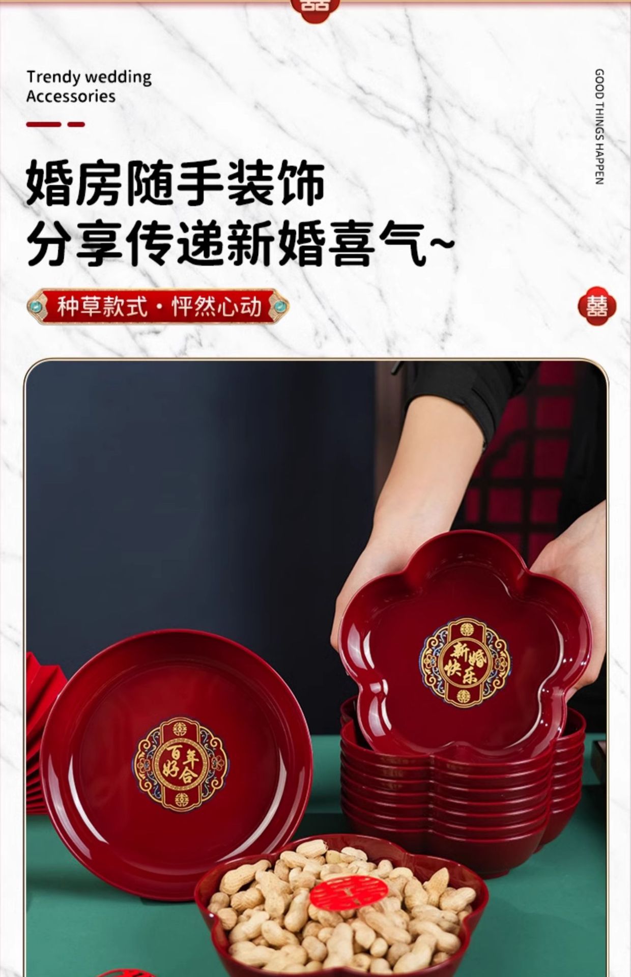 웨딩 과일 플레이트 약혼 용품 2024 새로운 웨딩 레드 트레이 웨딩 캔디 플레이트 건조 과일 플레이트스토어 가기