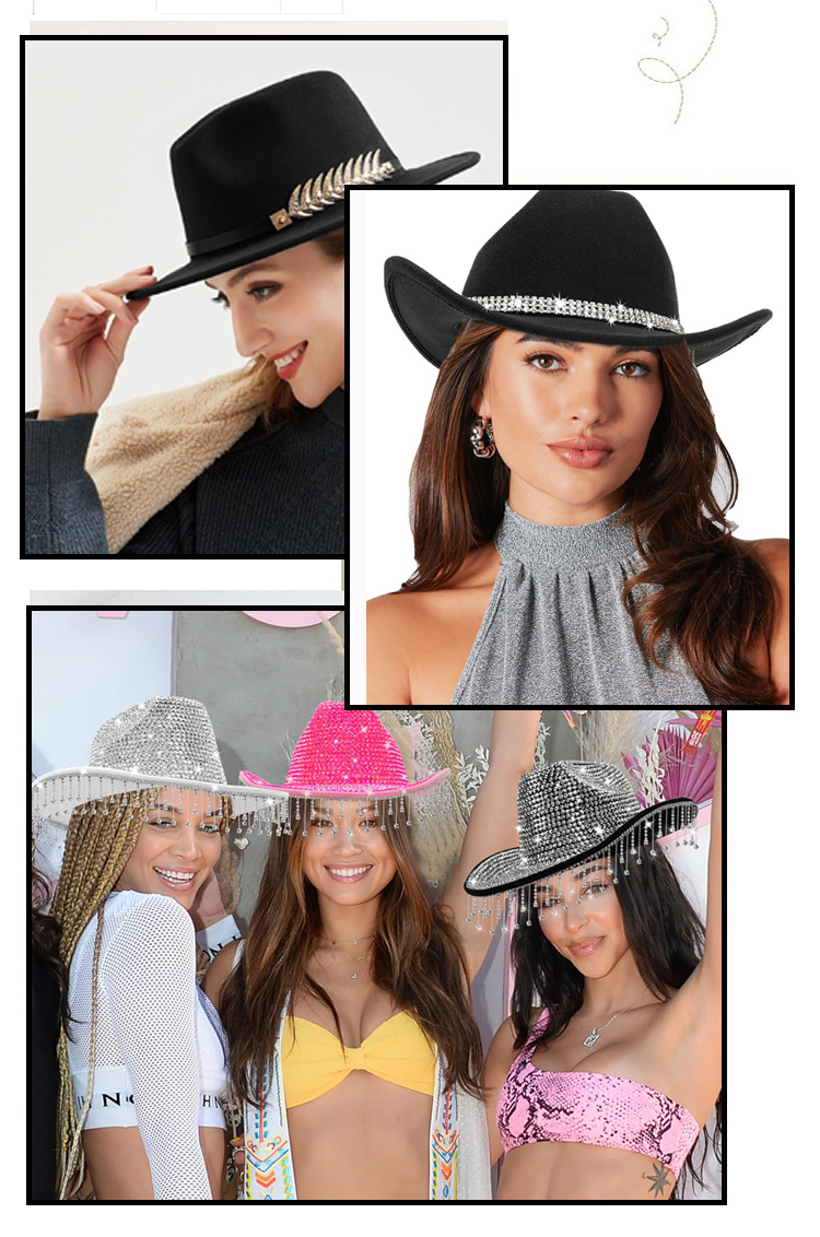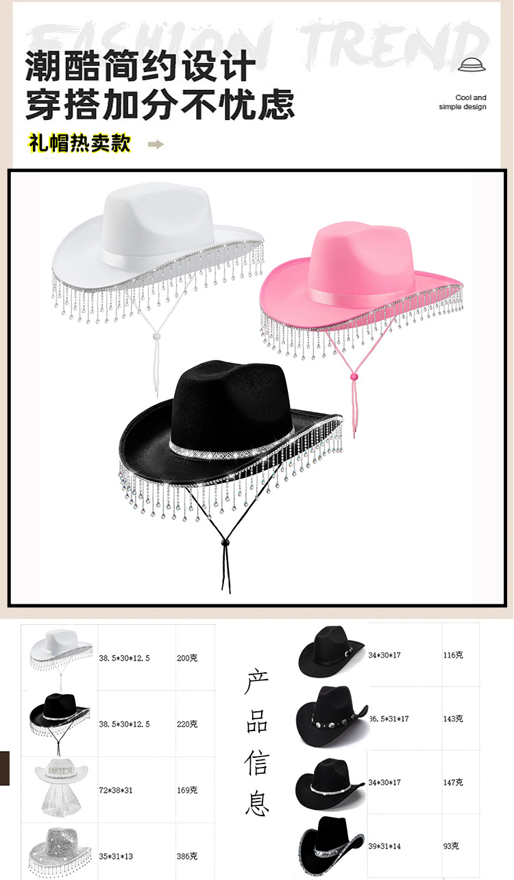 跨境批发亚马逊新品派对新娘牛仔帽音乐派对爵士帽毛毡西部牛仔帽