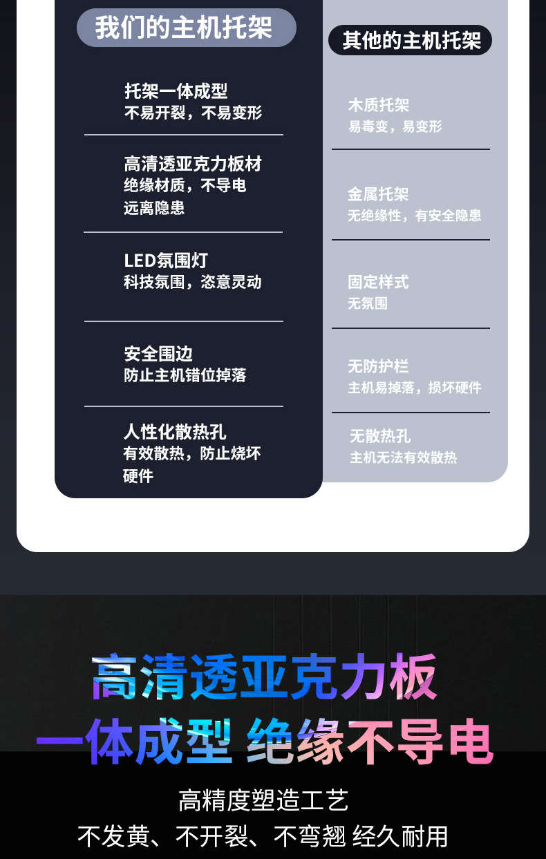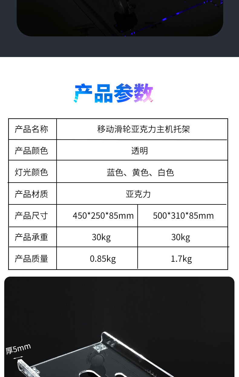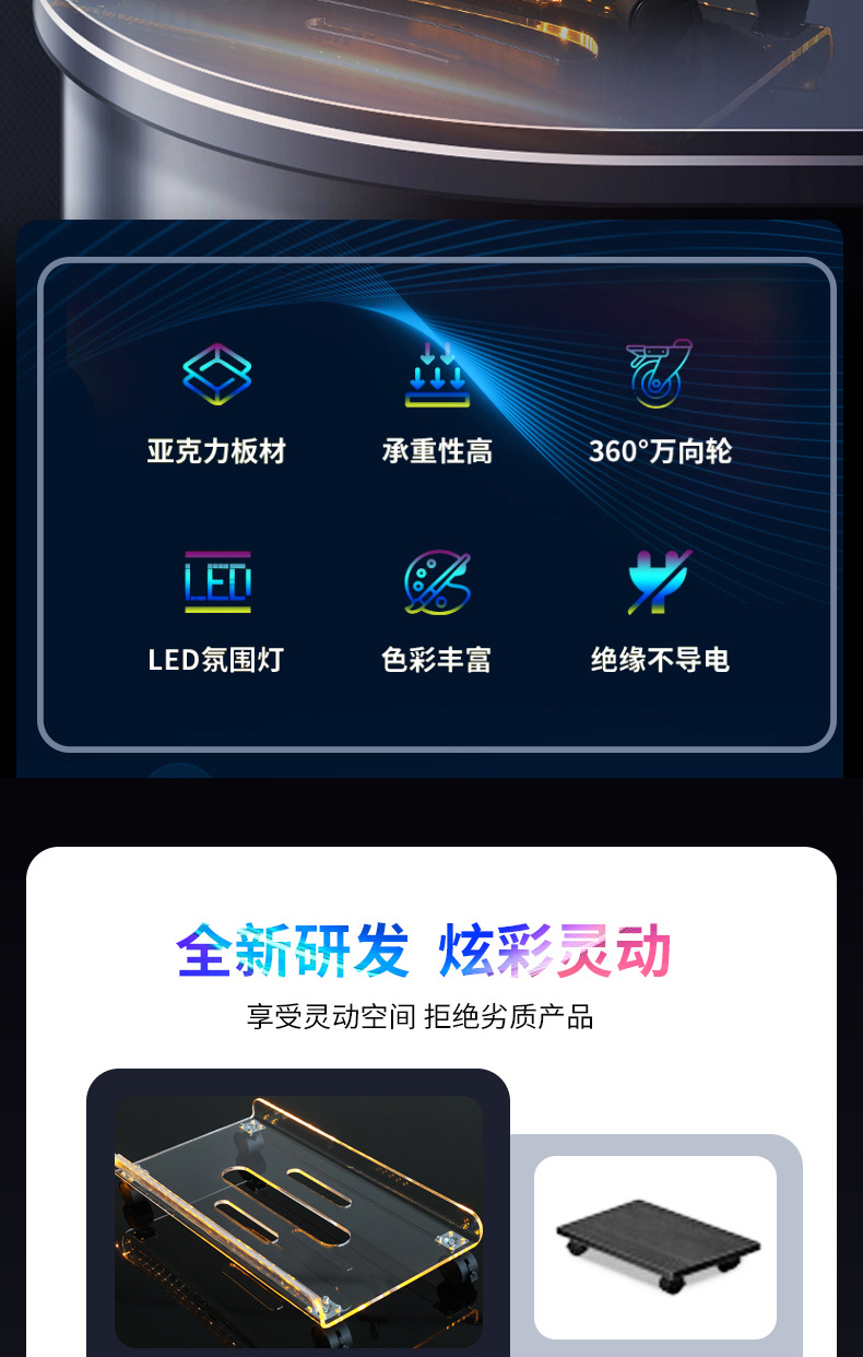 투명한 데스크탑 컴퓨터 호스트 브래킷 섀시 모바일 램프 풀리 방열 랙 배치 생성으로 기반을 높입니다.스토어 가기