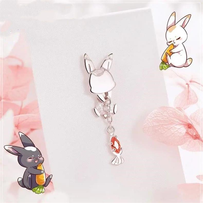 Wei Wuxian Blue Forgetting Machine Magic Way Rabbit 귀걸이 Kawaii Ear 액세서리를 둘러싼 새로운 애니메이션 만화 토끼 귀걸이