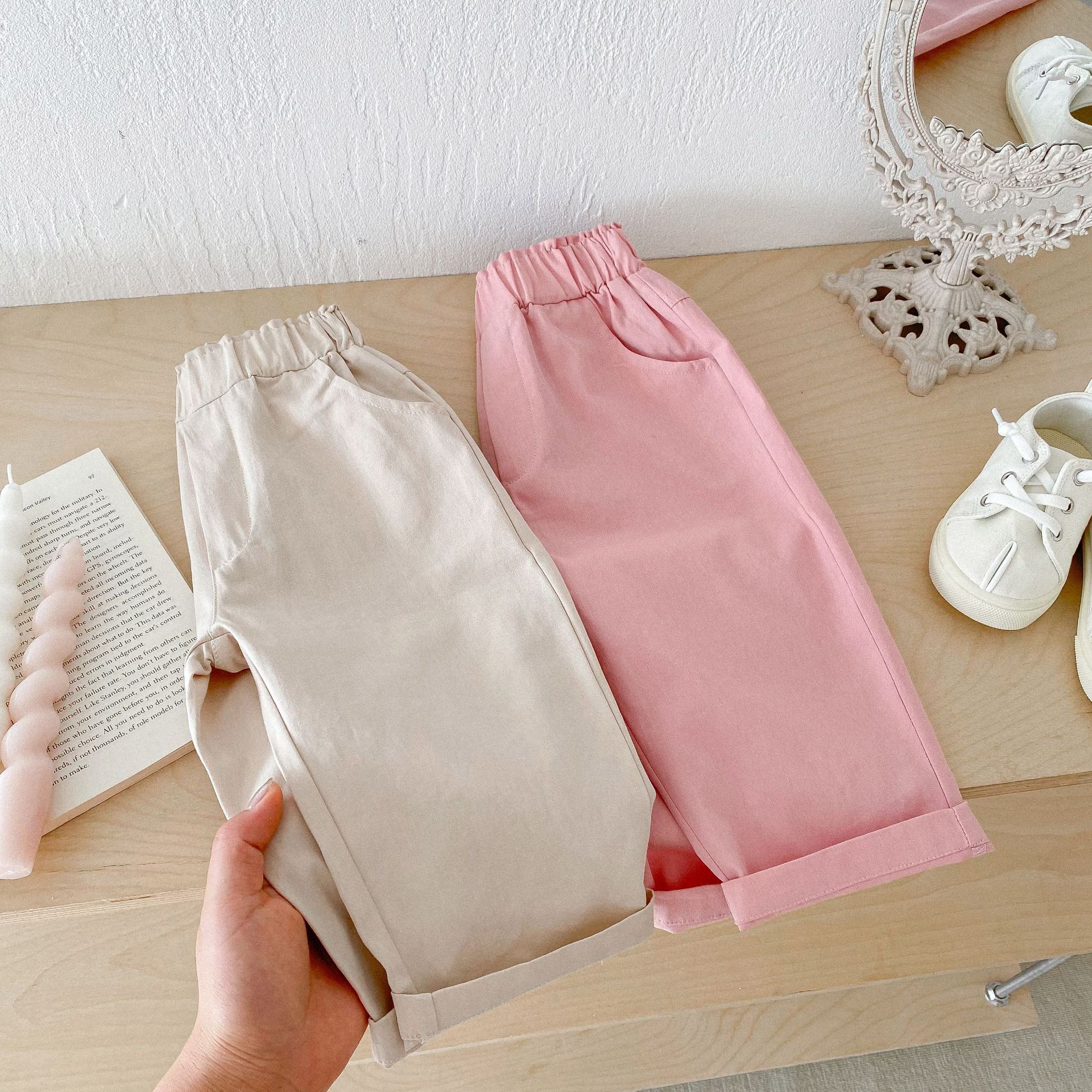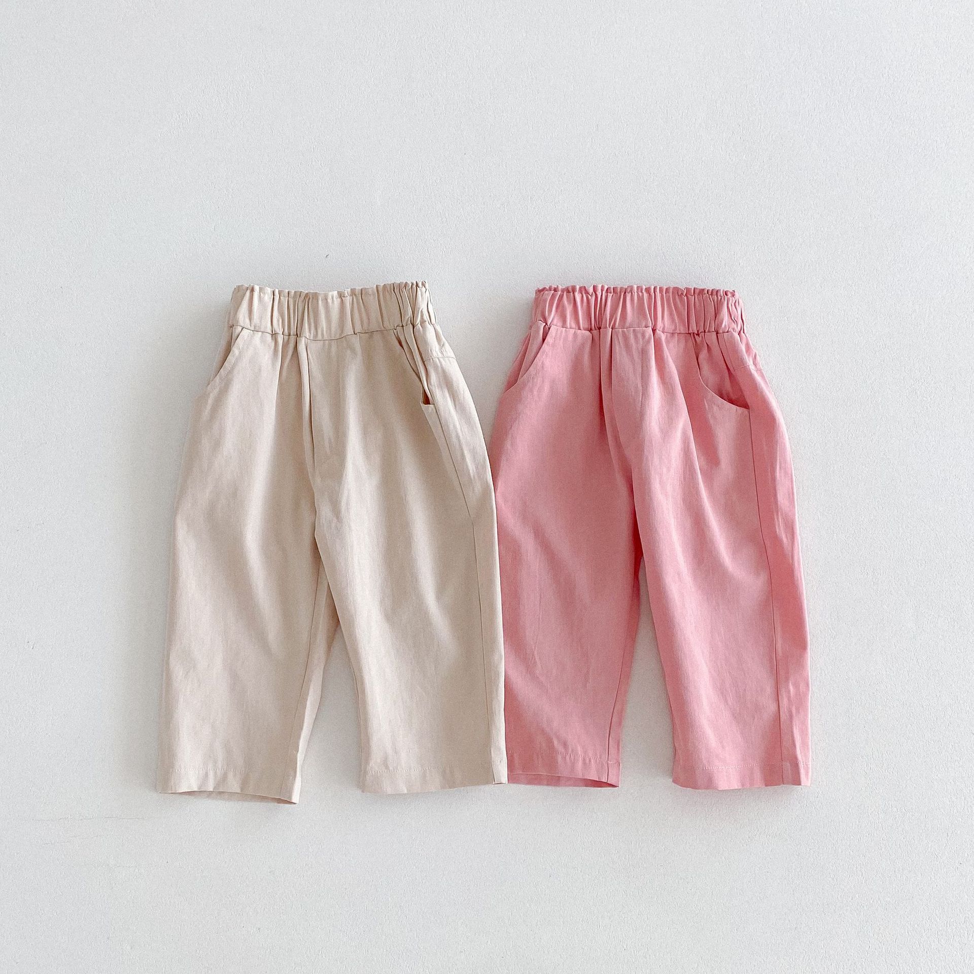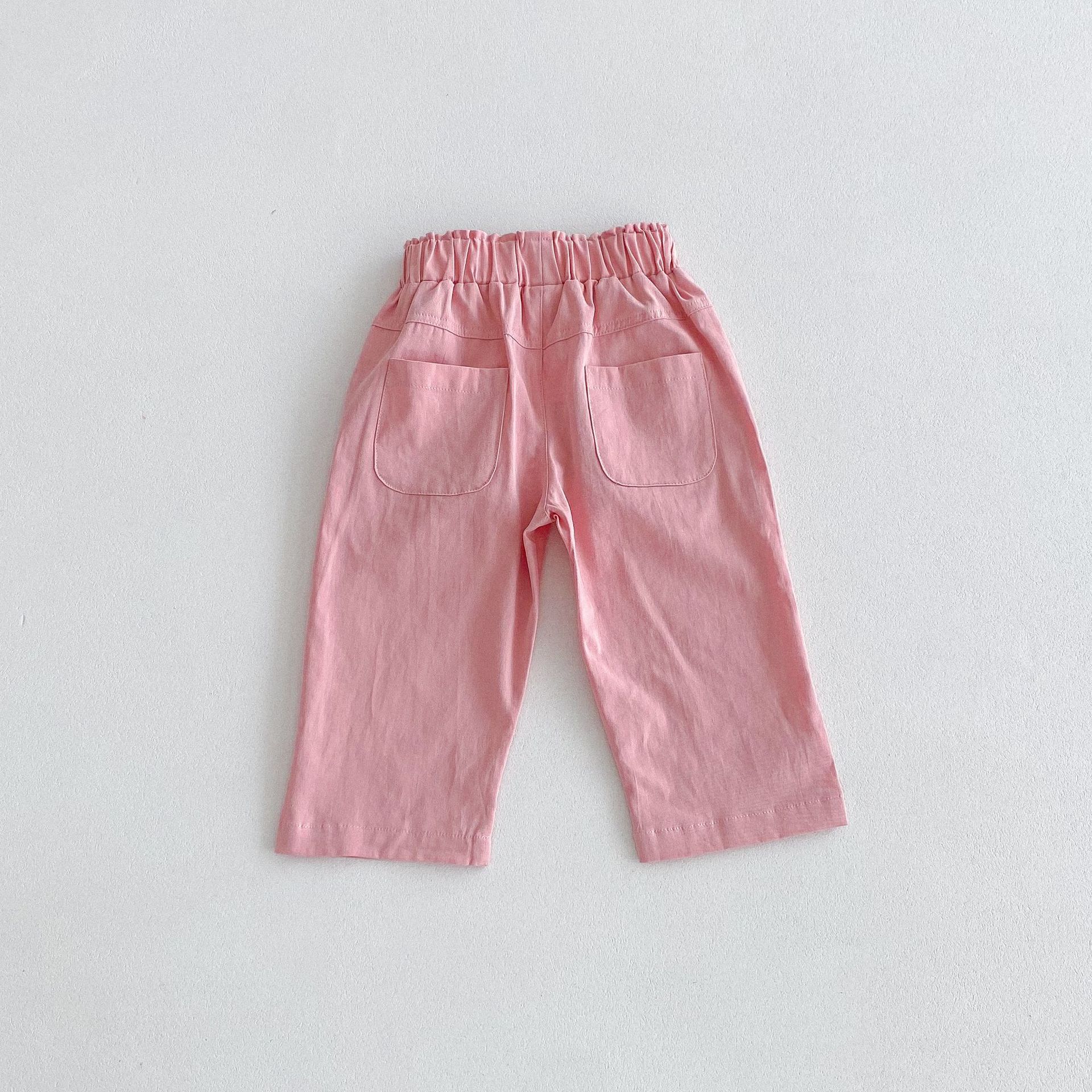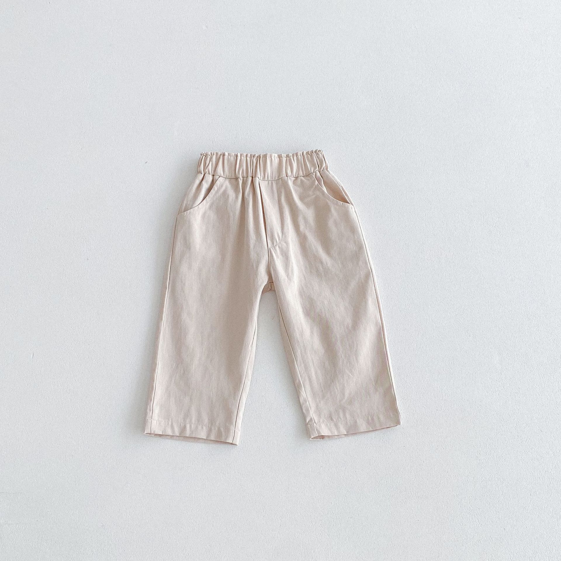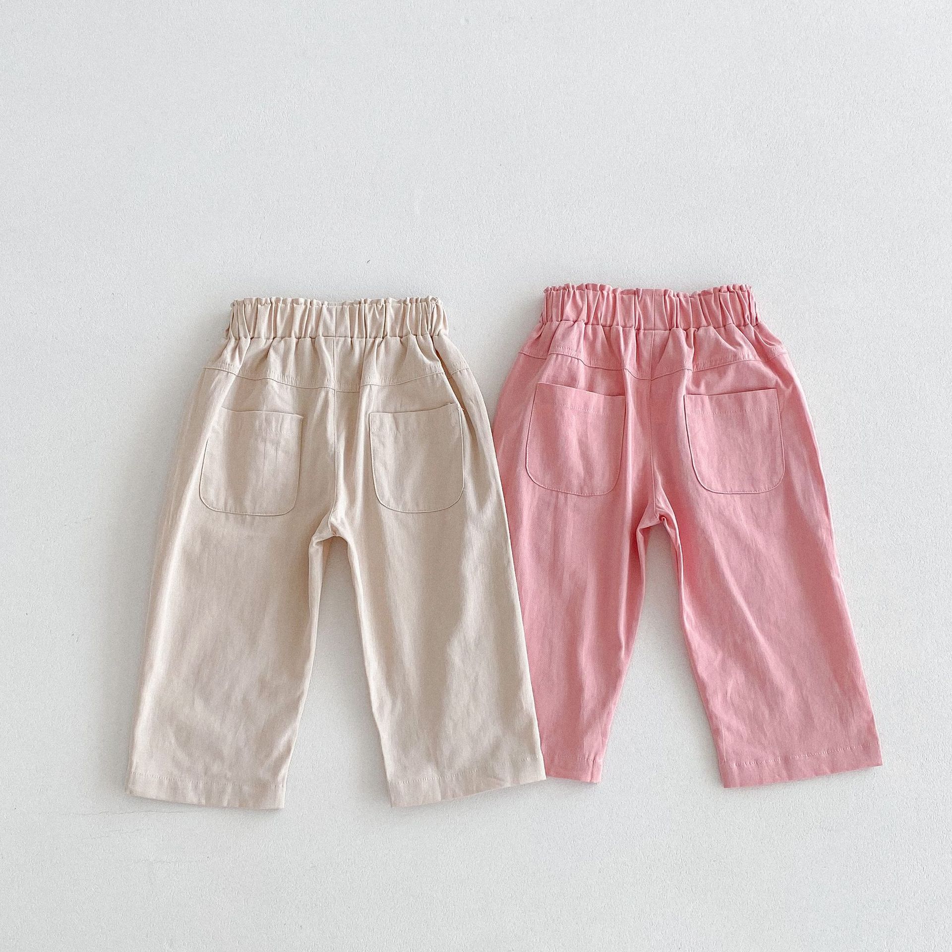 가을 한국식 2024 새로운 중소 남녀 아동복 바지 면화 부드러운 단색 탄성 허리 느슨한 올 매치 캐주얼 바지스토어 가기