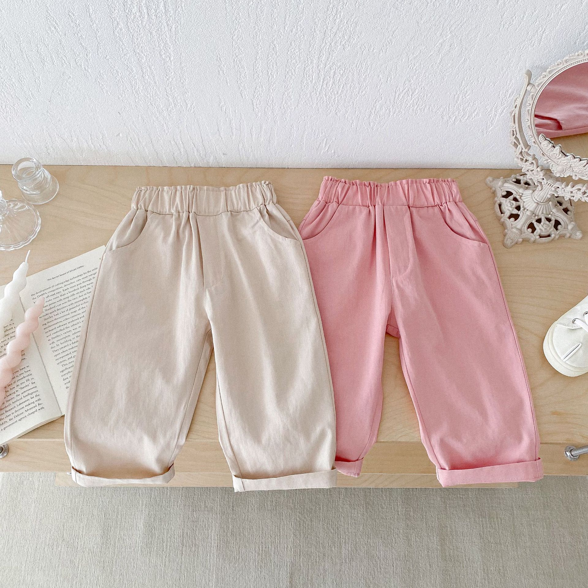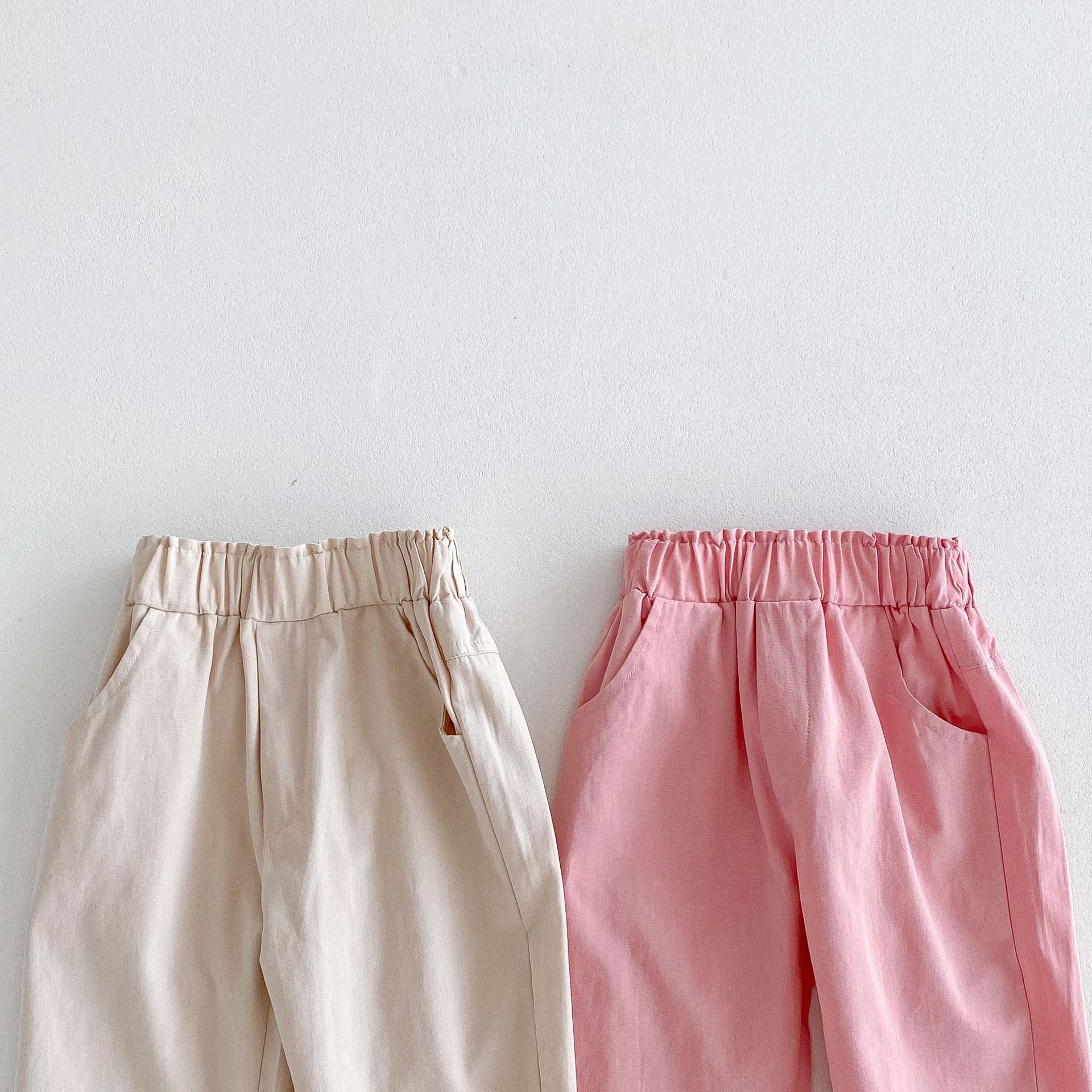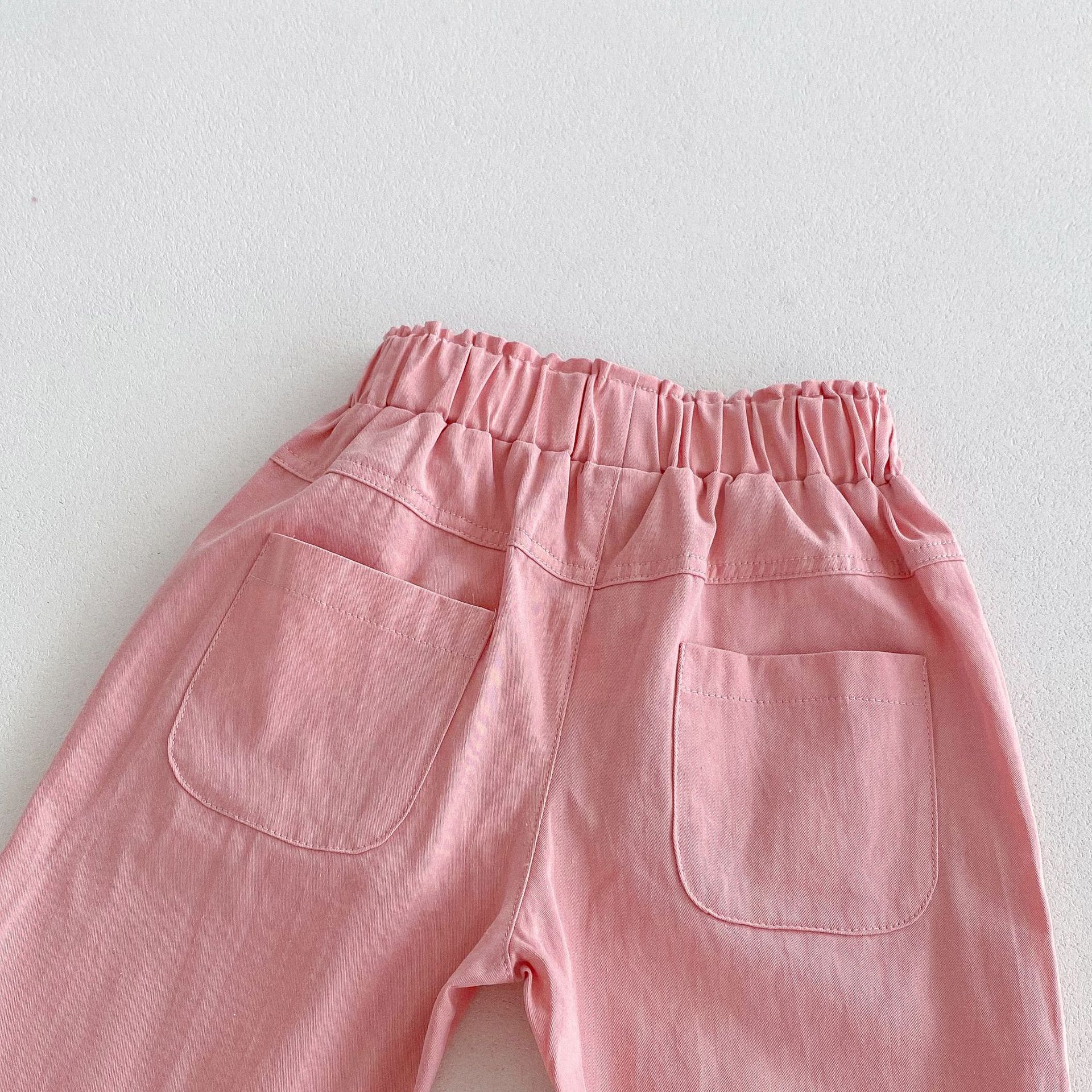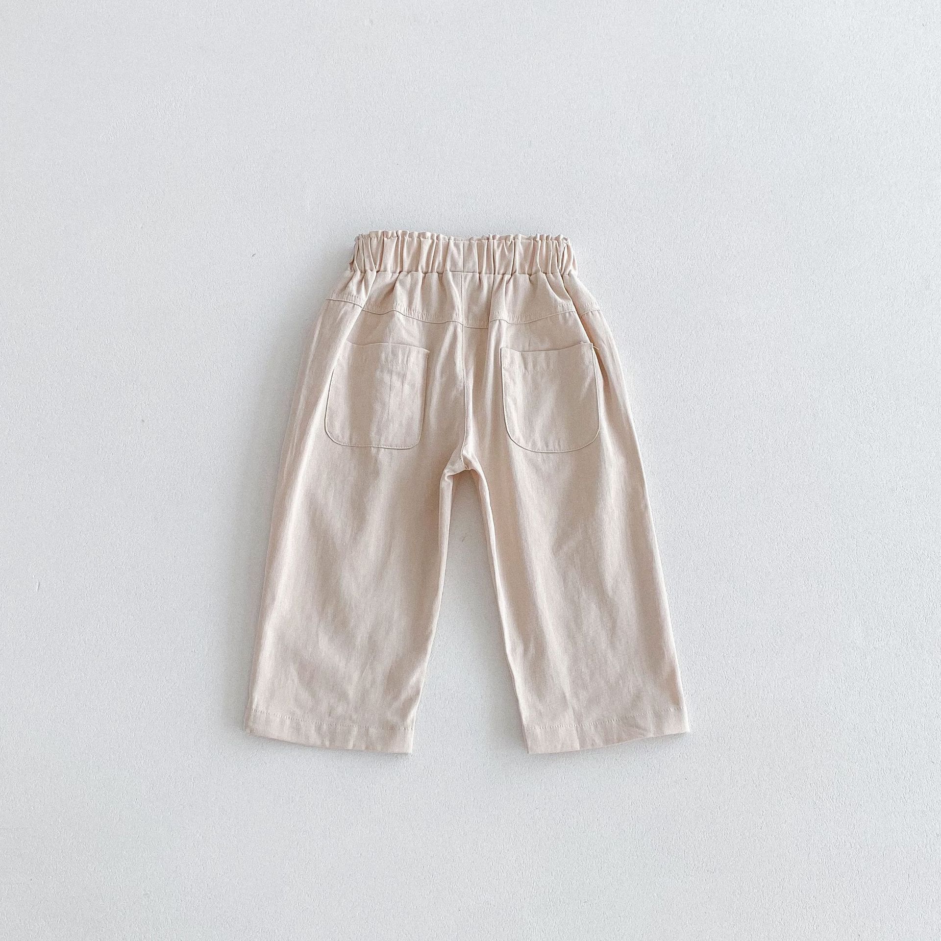 가을 한국식 2024 새로운 중소 남녀 아동복 바지 면화 부드러운 단색 탄성 허리 느슨한 올 매치 캐주얼 바지스토어 가기