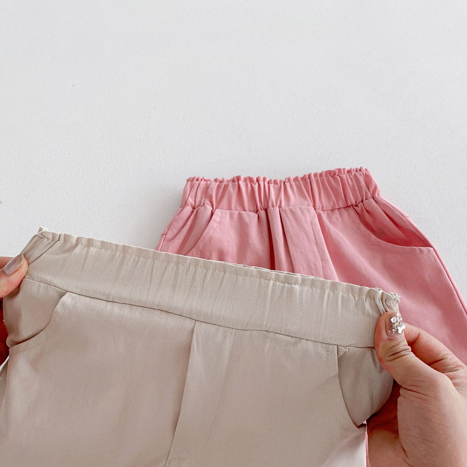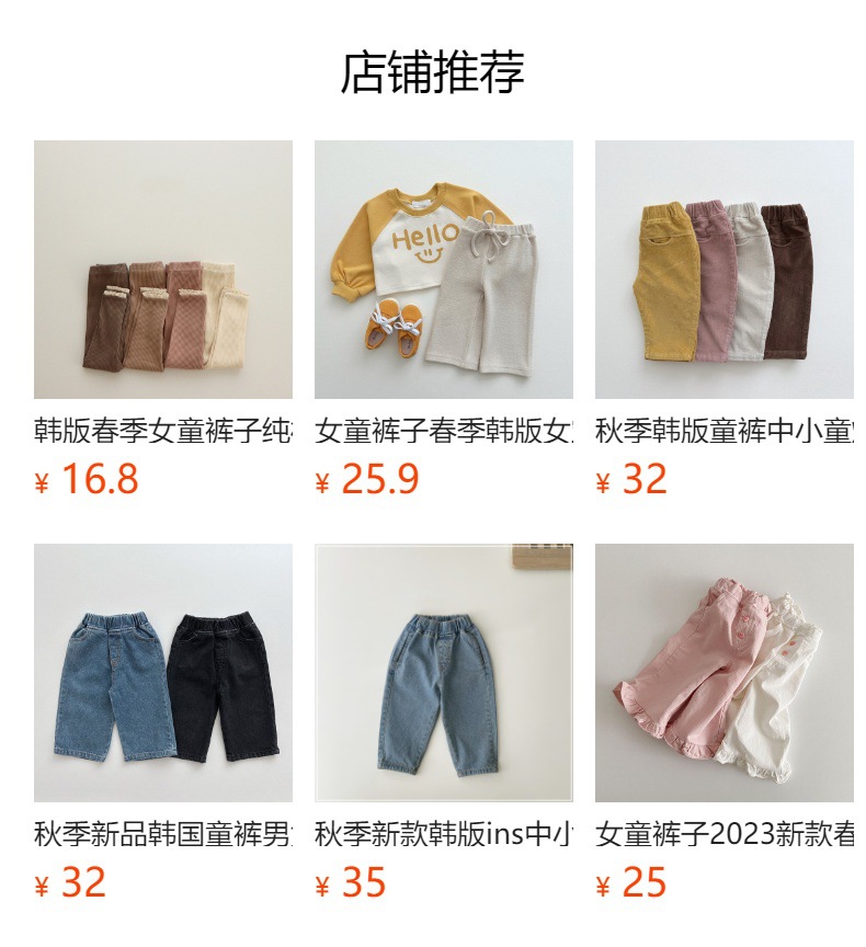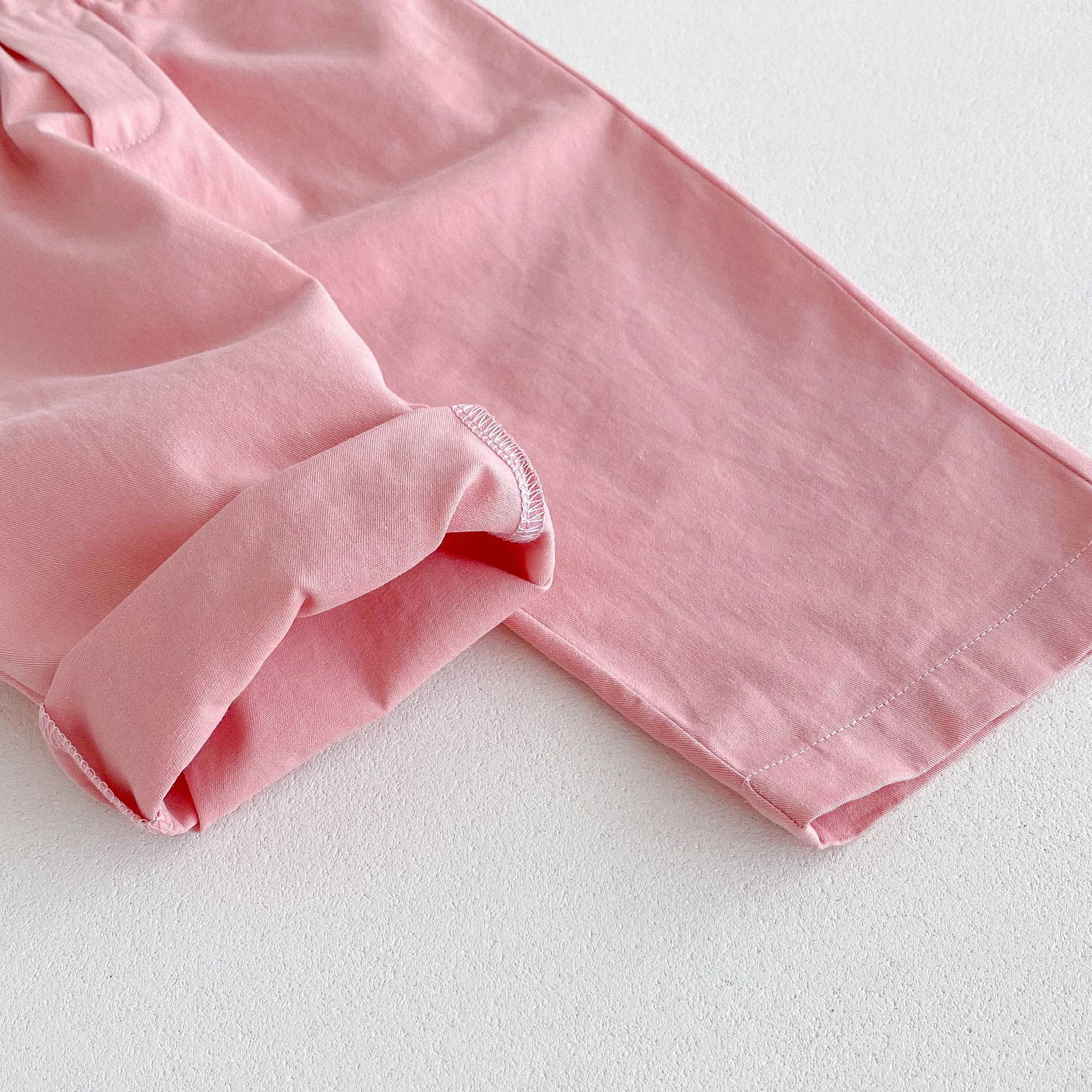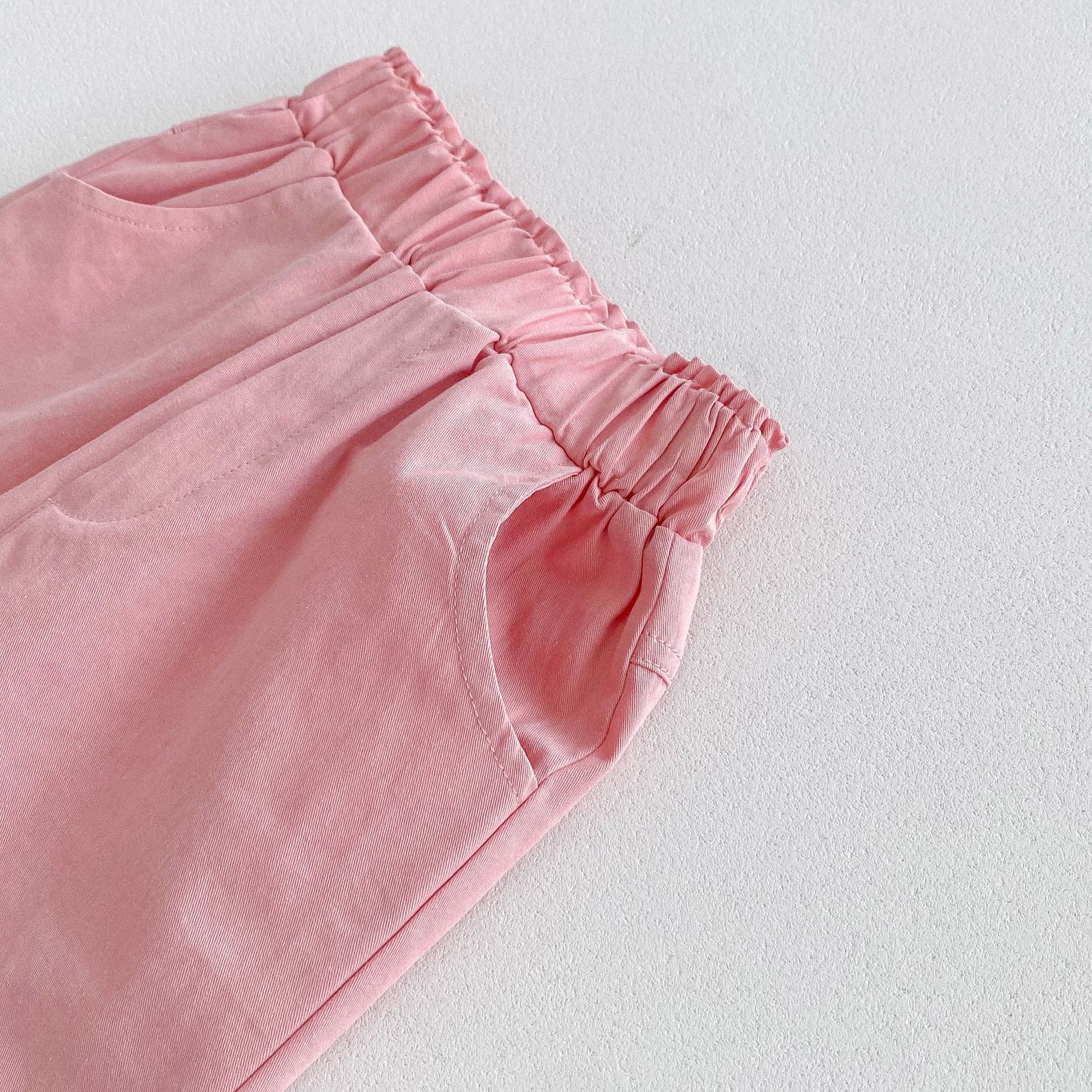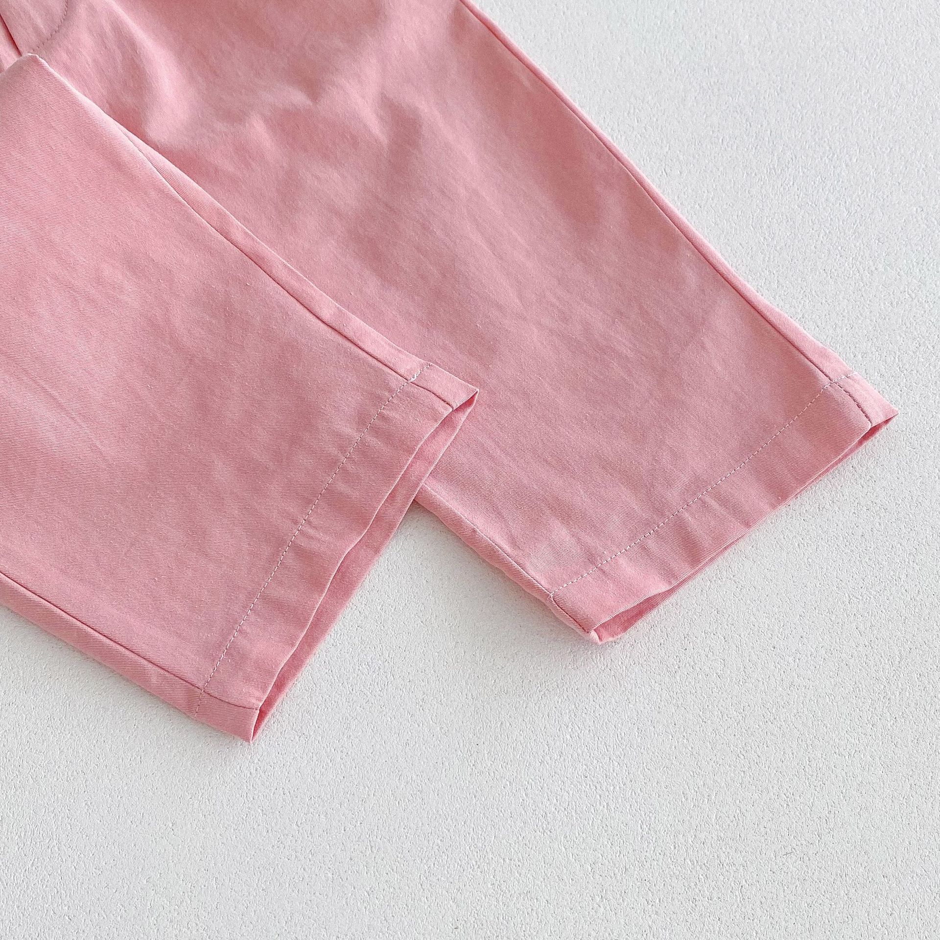 가을 한국식 2024 새로운 중소 남녀 아동복 바지 면화 부드러운 단색 탄성 허리 느슨한 올 매치 캐주얼 바지스토어 가기