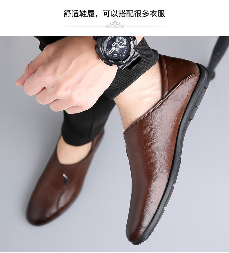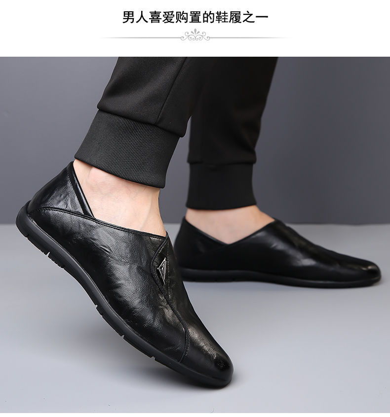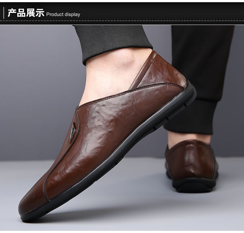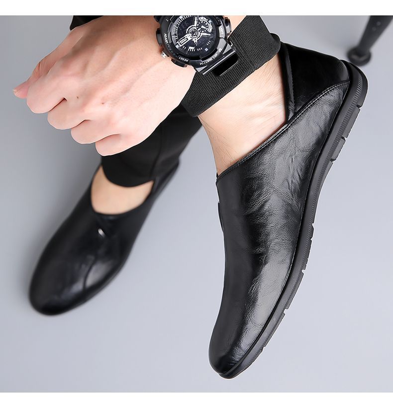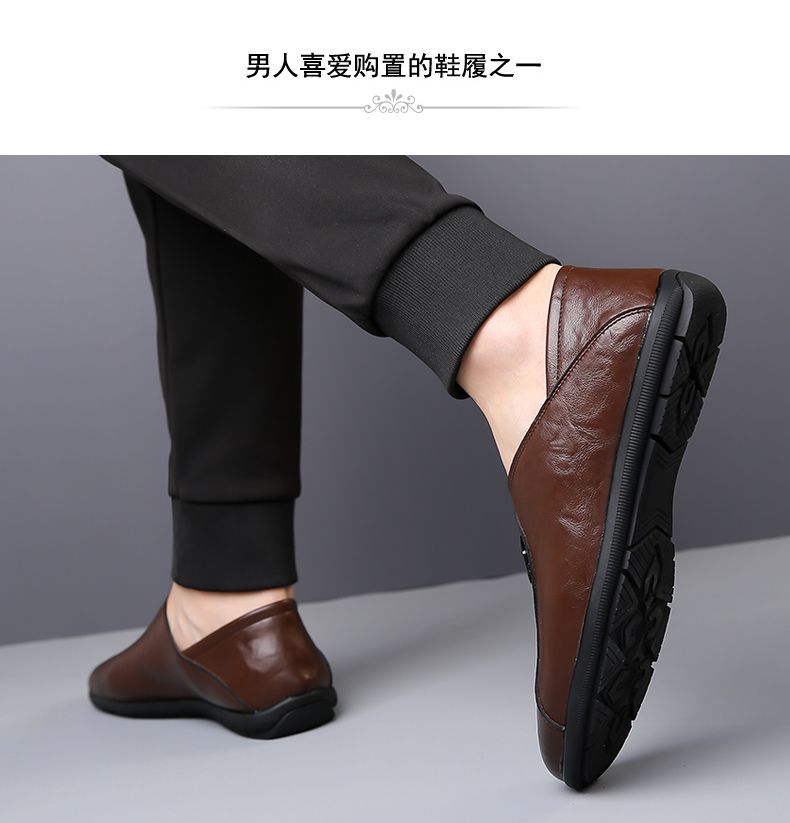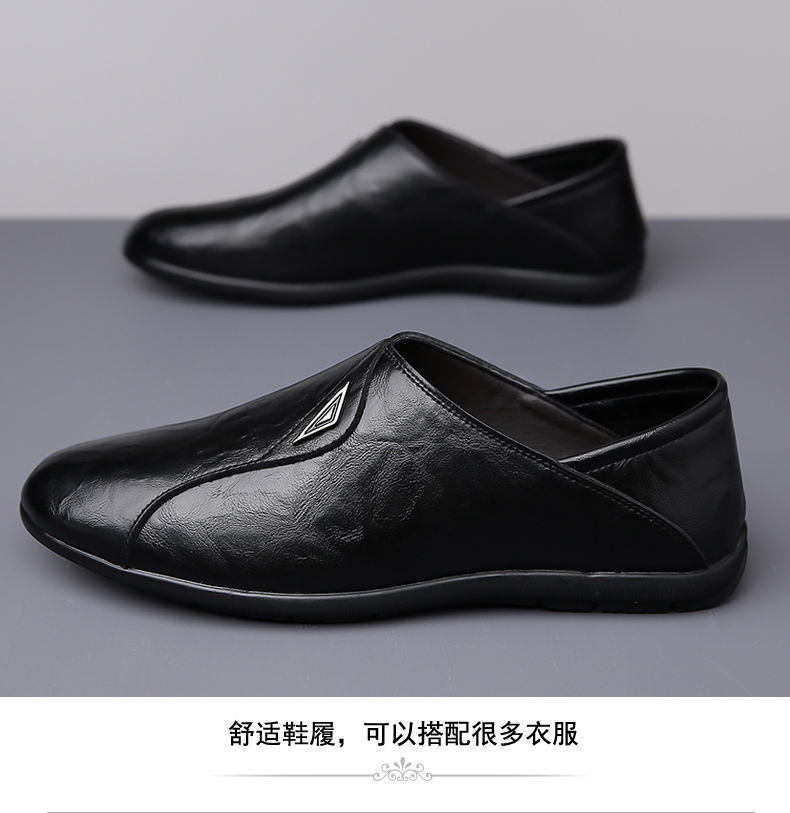 2024 새로운 캐주얼 가죽 신발 미끄럼 방지 소프트 단독 남성 유행 캐주얼 가죽 신발 콩 신발스토어 가기