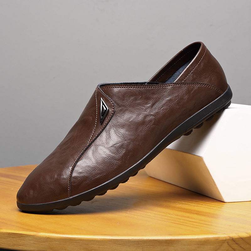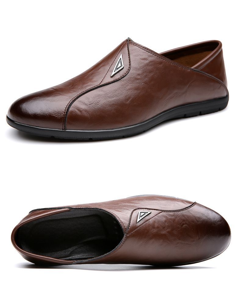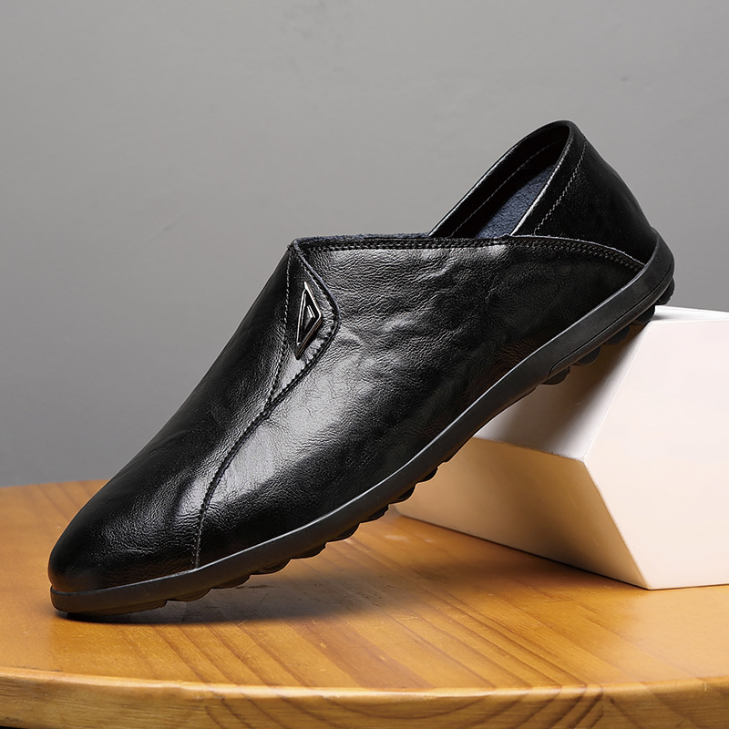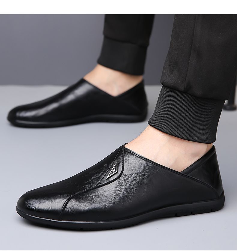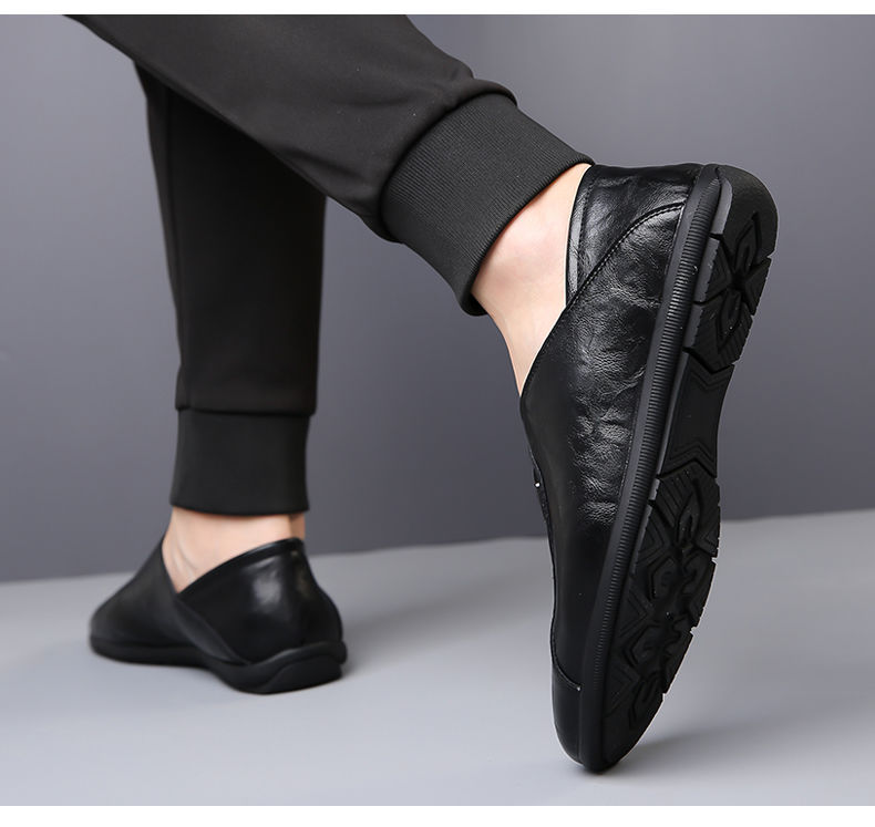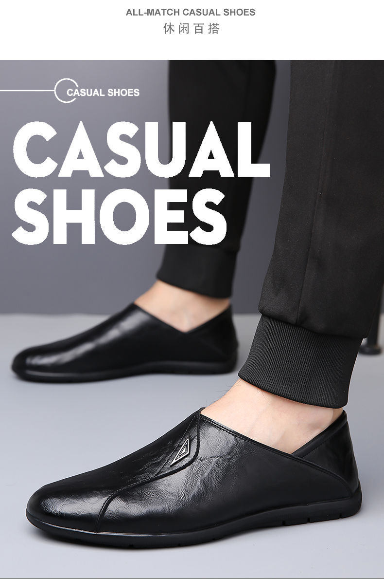2024 새로운 캐주얼 가죽 신발 미끄럼 방지 소프트 단독 남성 유행 캐주얼 가죽 신발 콩 신발스토어 가기