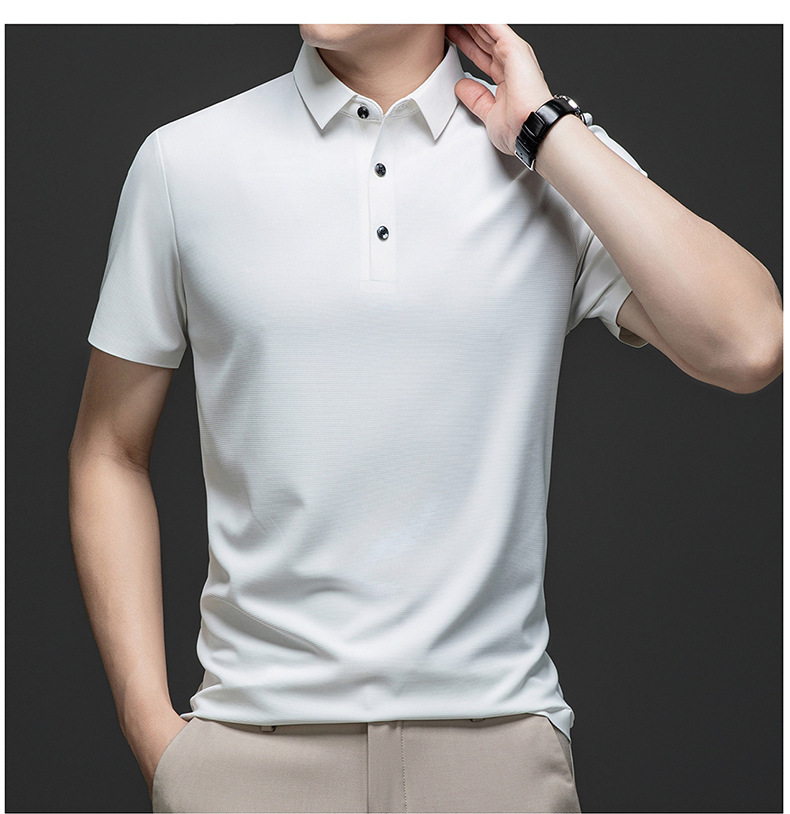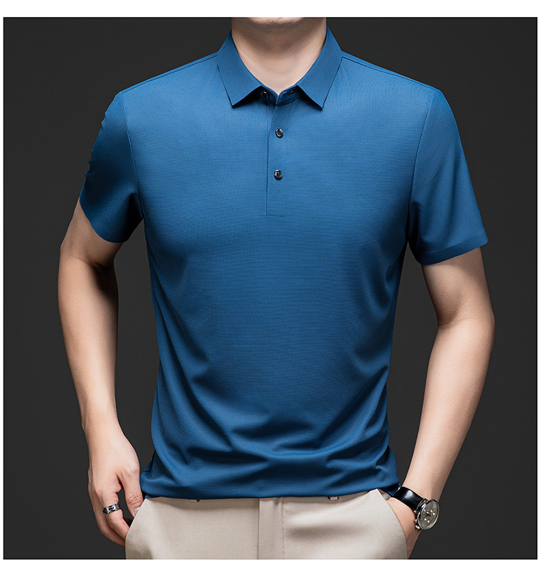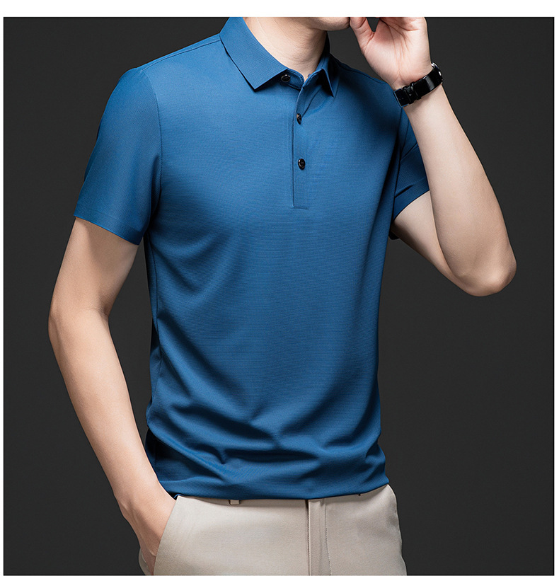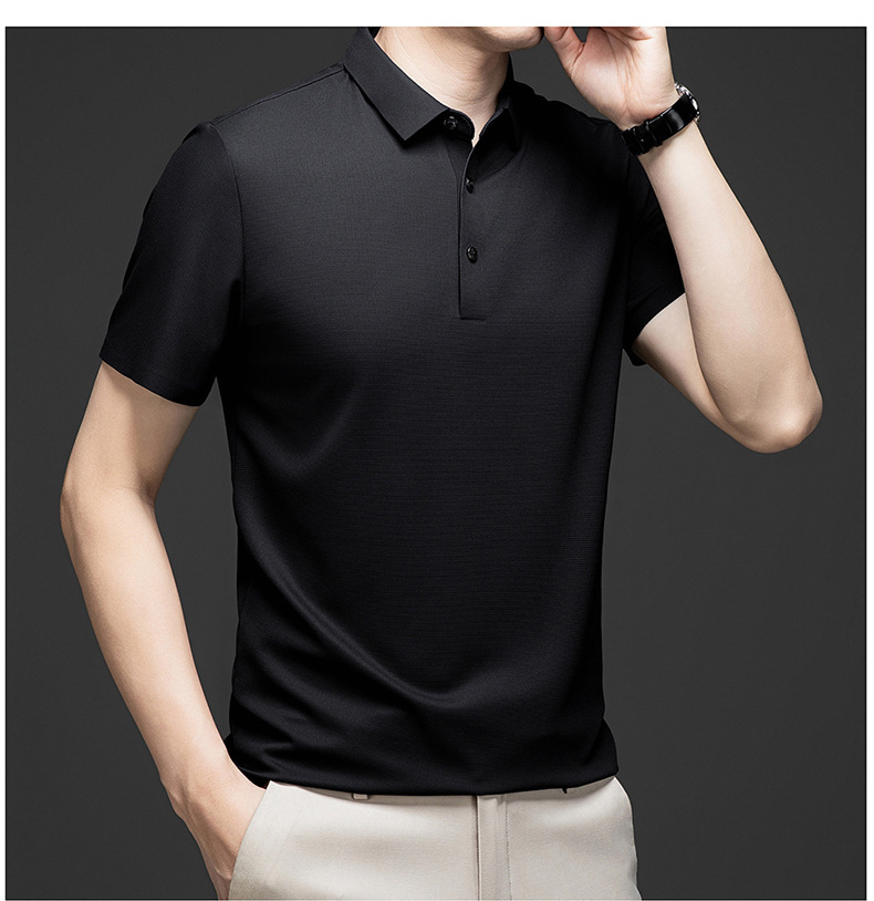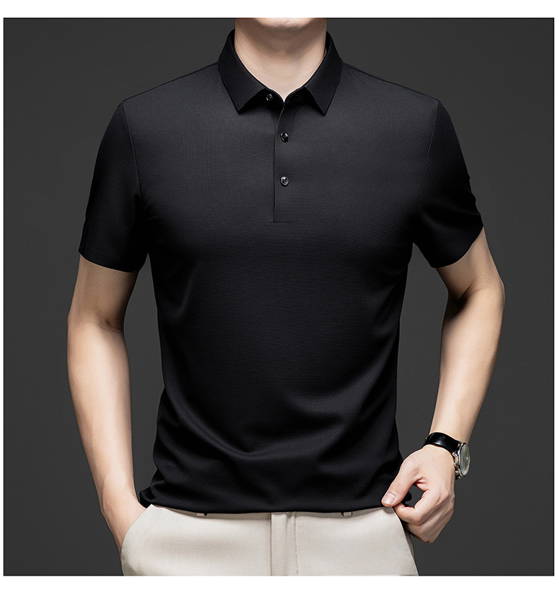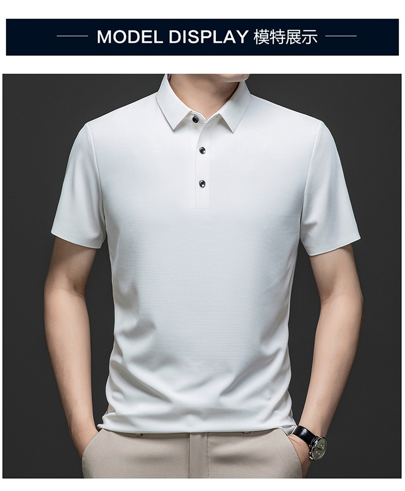 Linghao 남자 2024 년 여름 새로운 단색 얇은 남성 폴로 셔츠 비즈니스 옷깃 남성용 통기성 반팔 티셔츠스토어 가기
