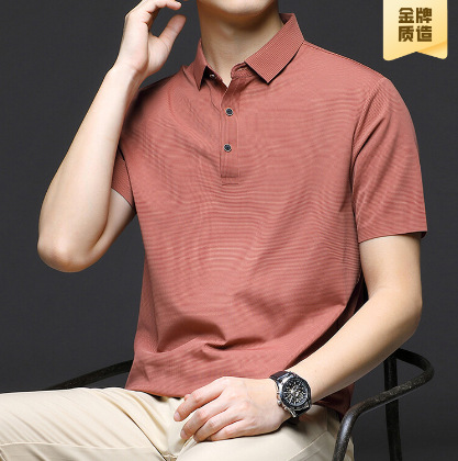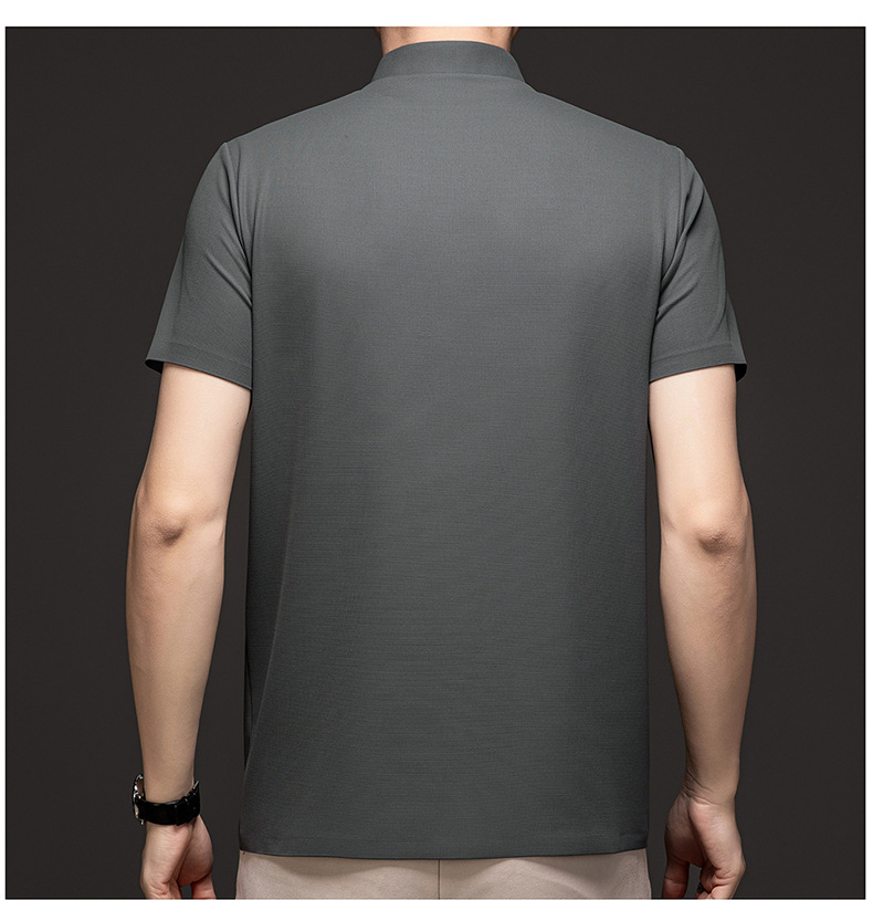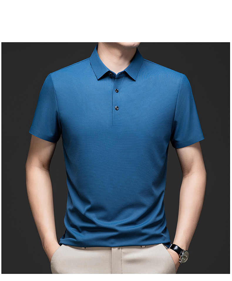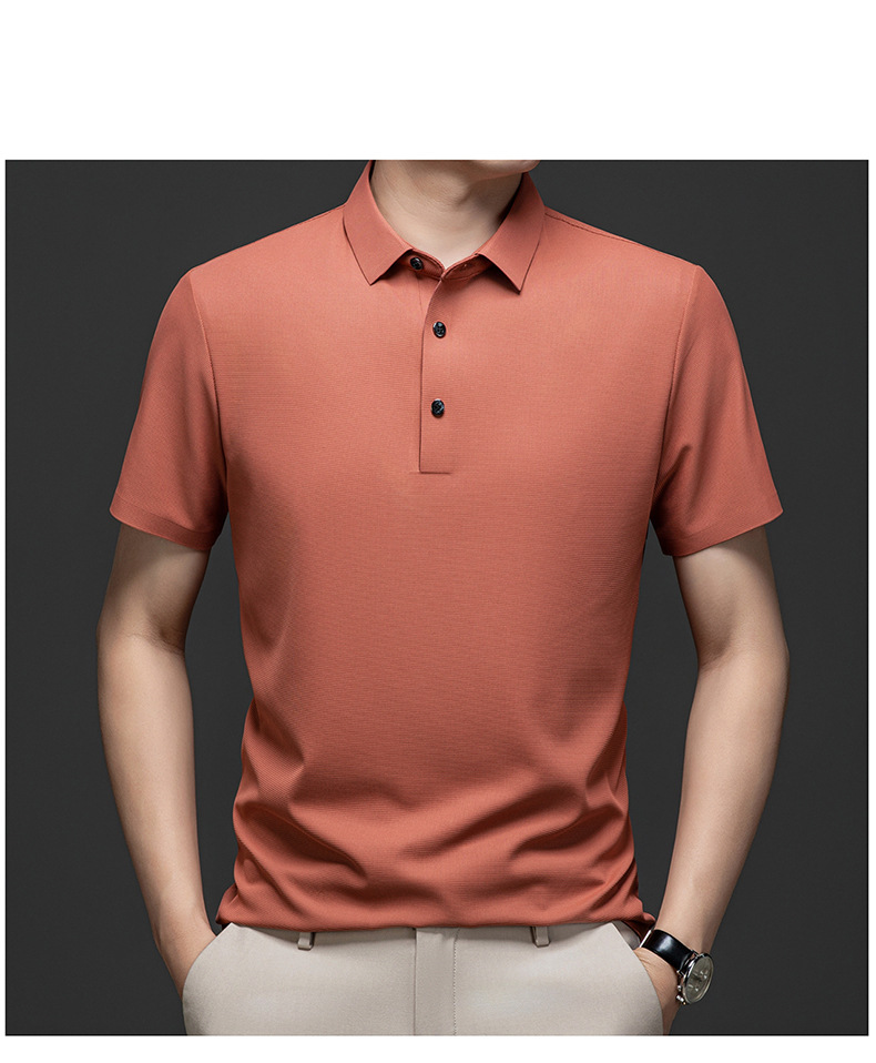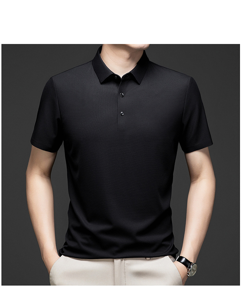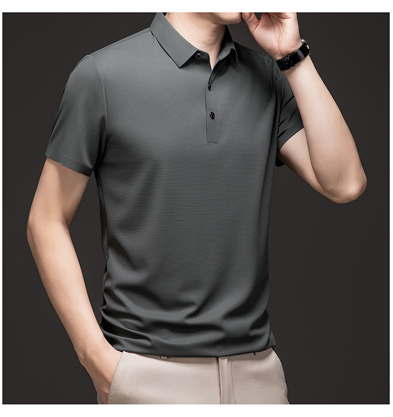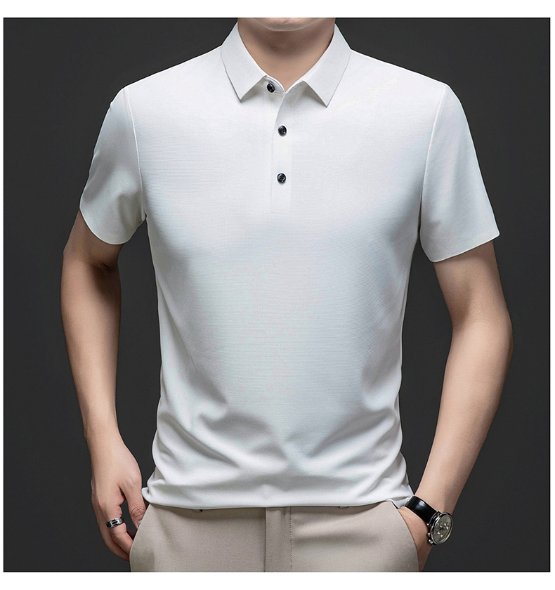 Linghao 남자 2024 년 여름 새로운 단색 얇은 남성 폴로 셔츠 비즈니스 옷깃 남성용 통기성 반팔 티셔츠스토어 가기
