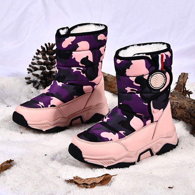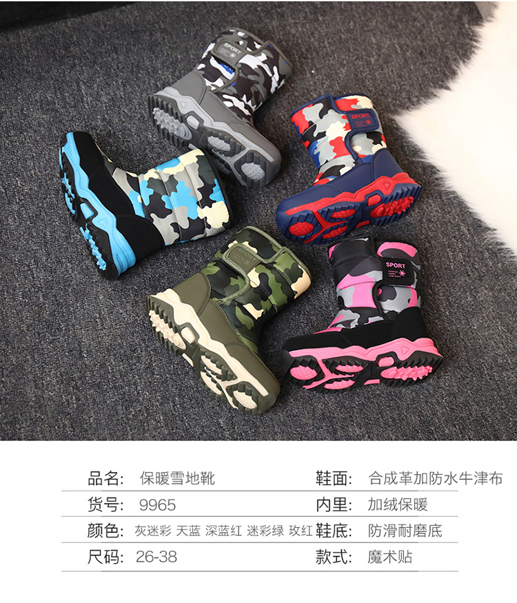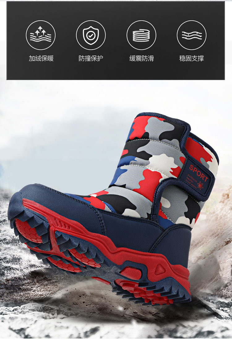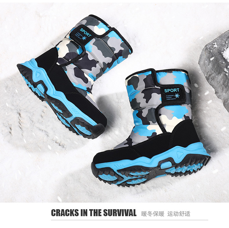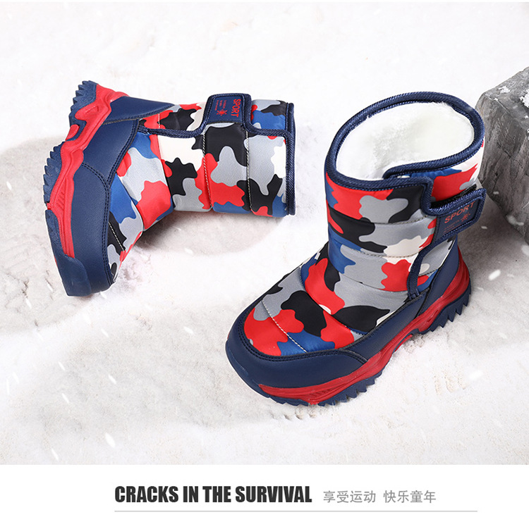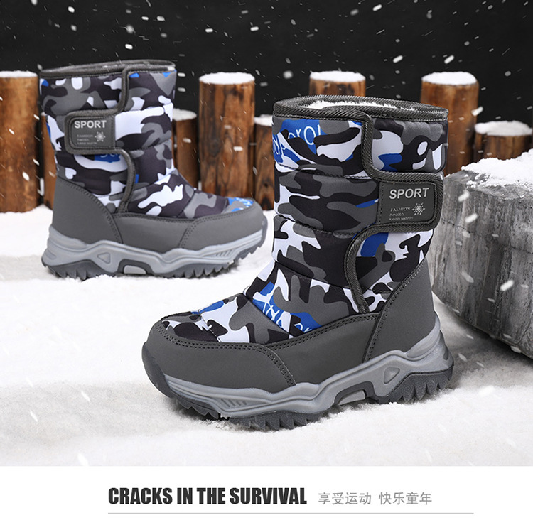 어린이 스노우 부츠 2024 겨울 새 기모 따뜻한 큰 어린이 코튼 신발 멀티 컬러 높은 위장 부츠 국경
