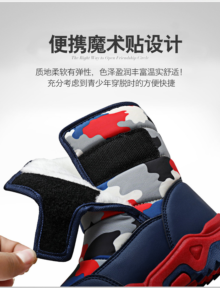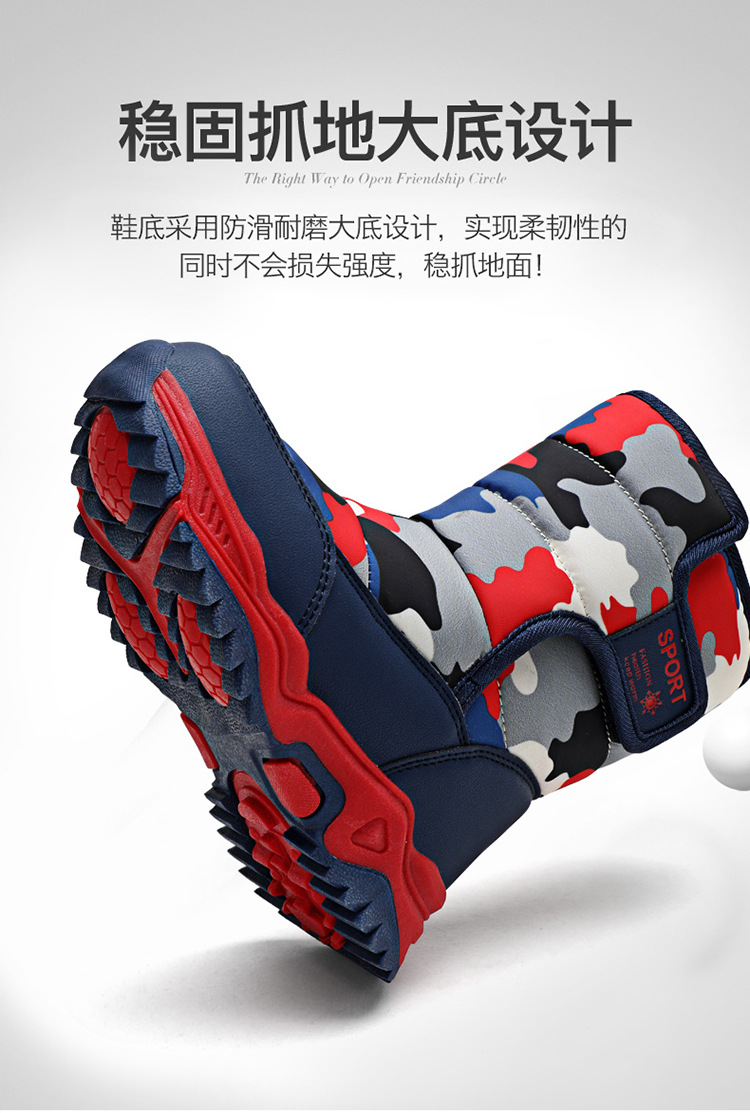 어린이 스노우 부츠 2024 겨울 새 기모 따뜻한 큰 어린이 코튼 신발 멀티 컬러 높은 위장 부츠 국경스토어 가기