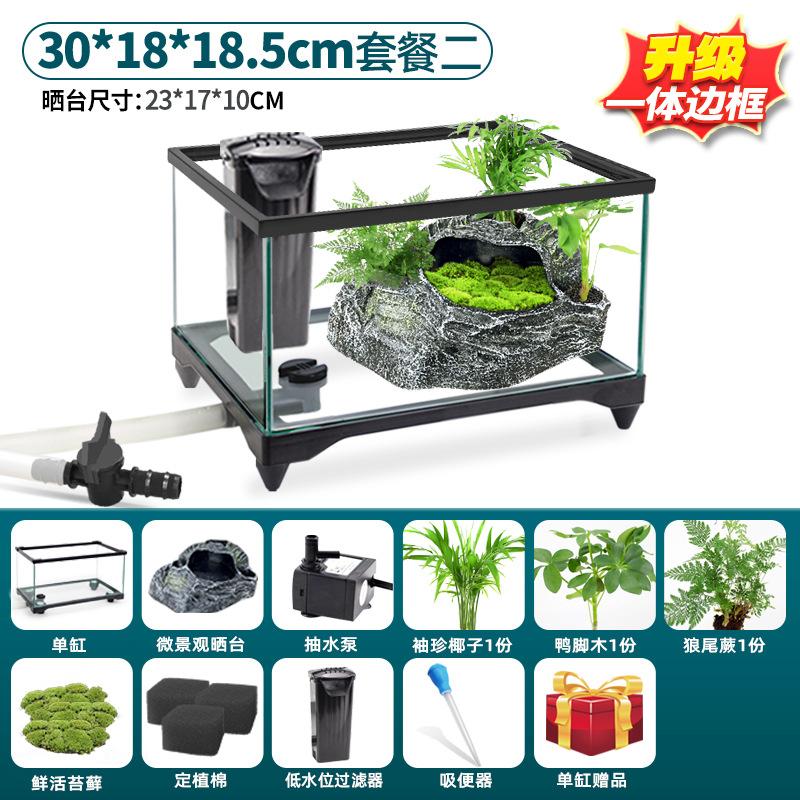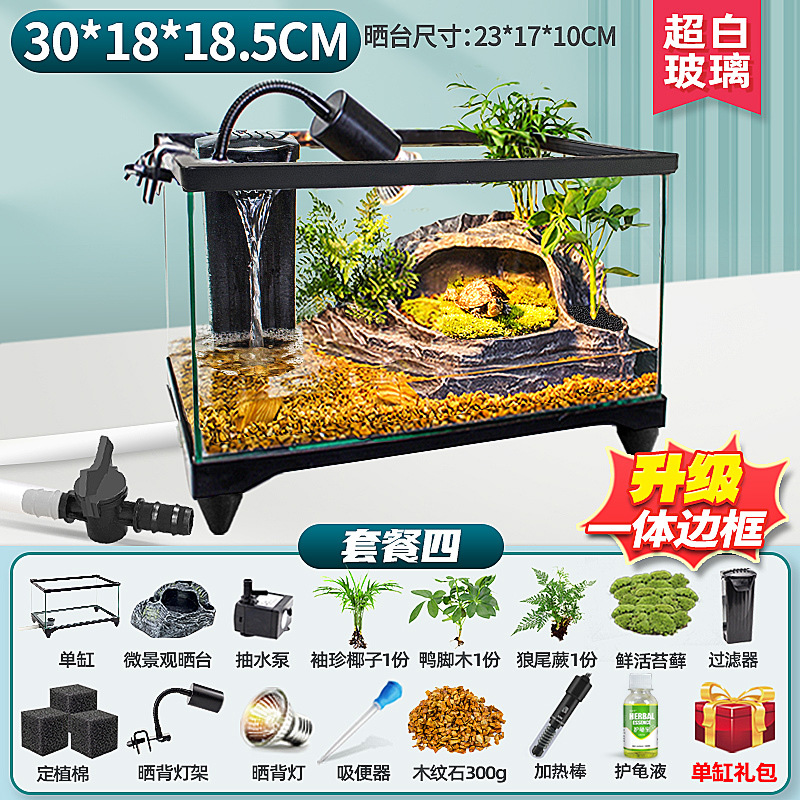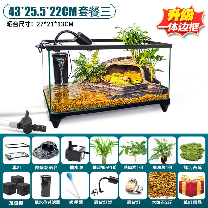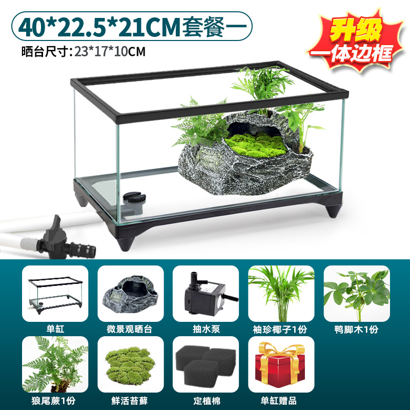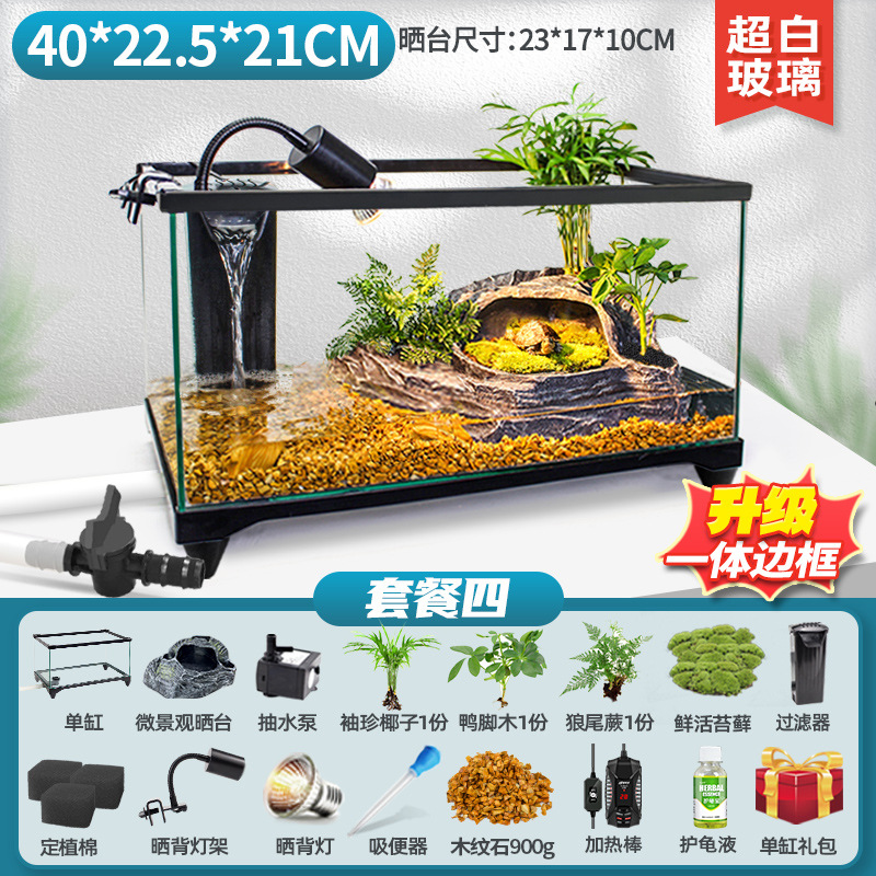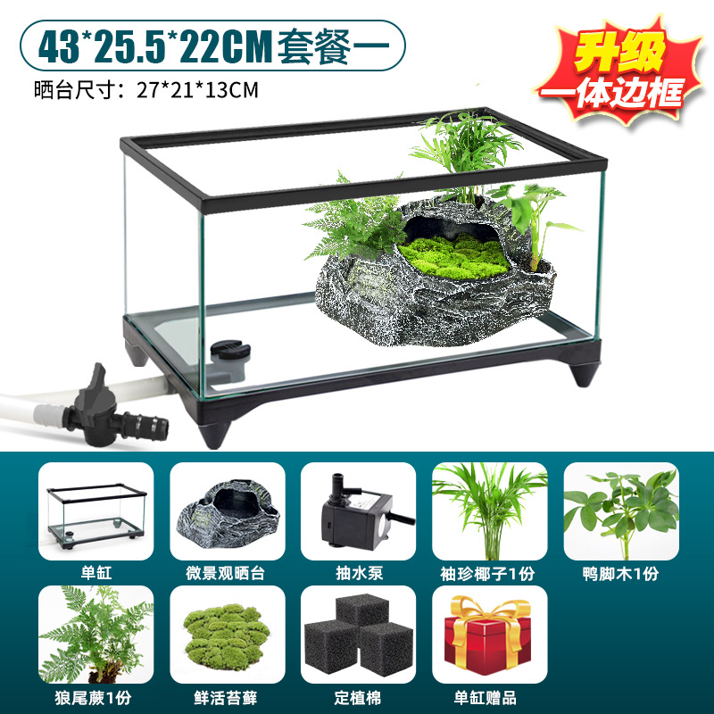 유리 거북이 탱크 가정용 거실 거북이 새로운 스타일 수유 상자 생태 물고기 탱크 데스크탑 풍경 바구니 테이블이있는 작은 빌라스토어 가기