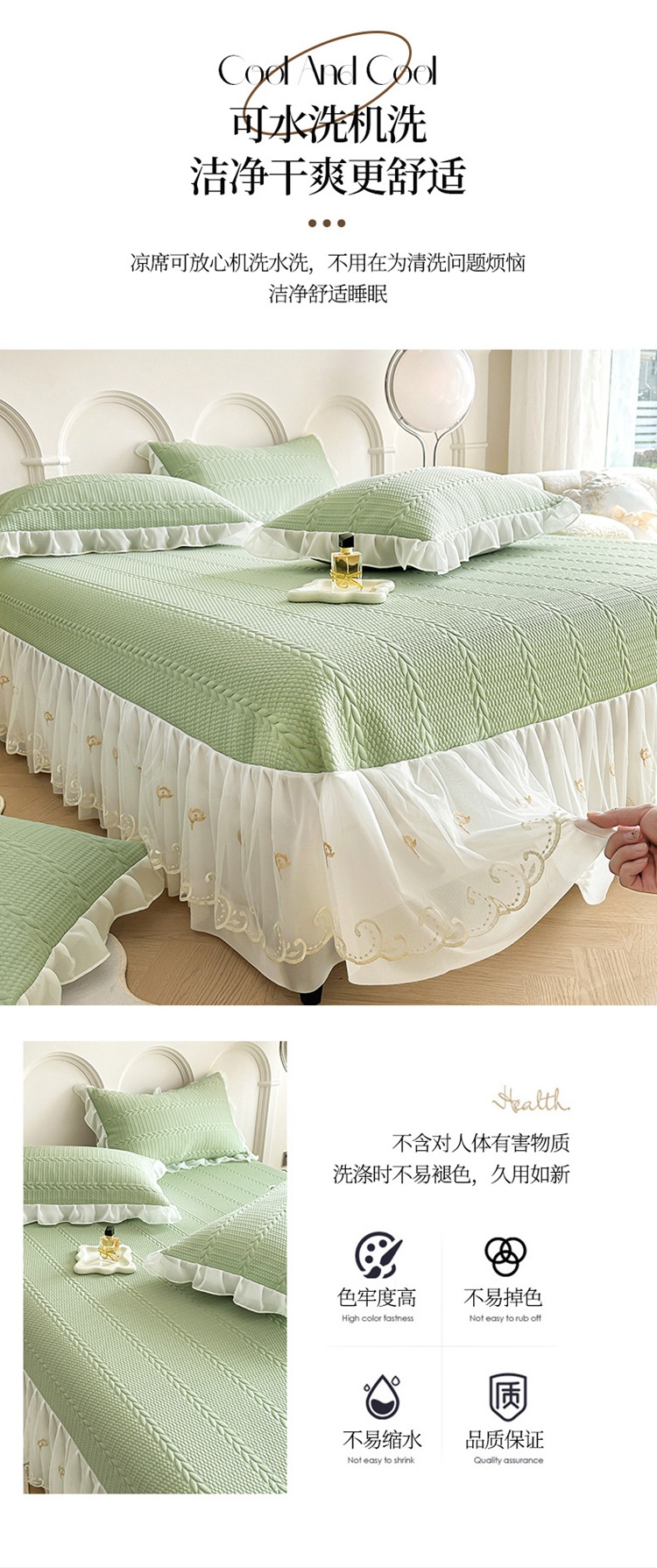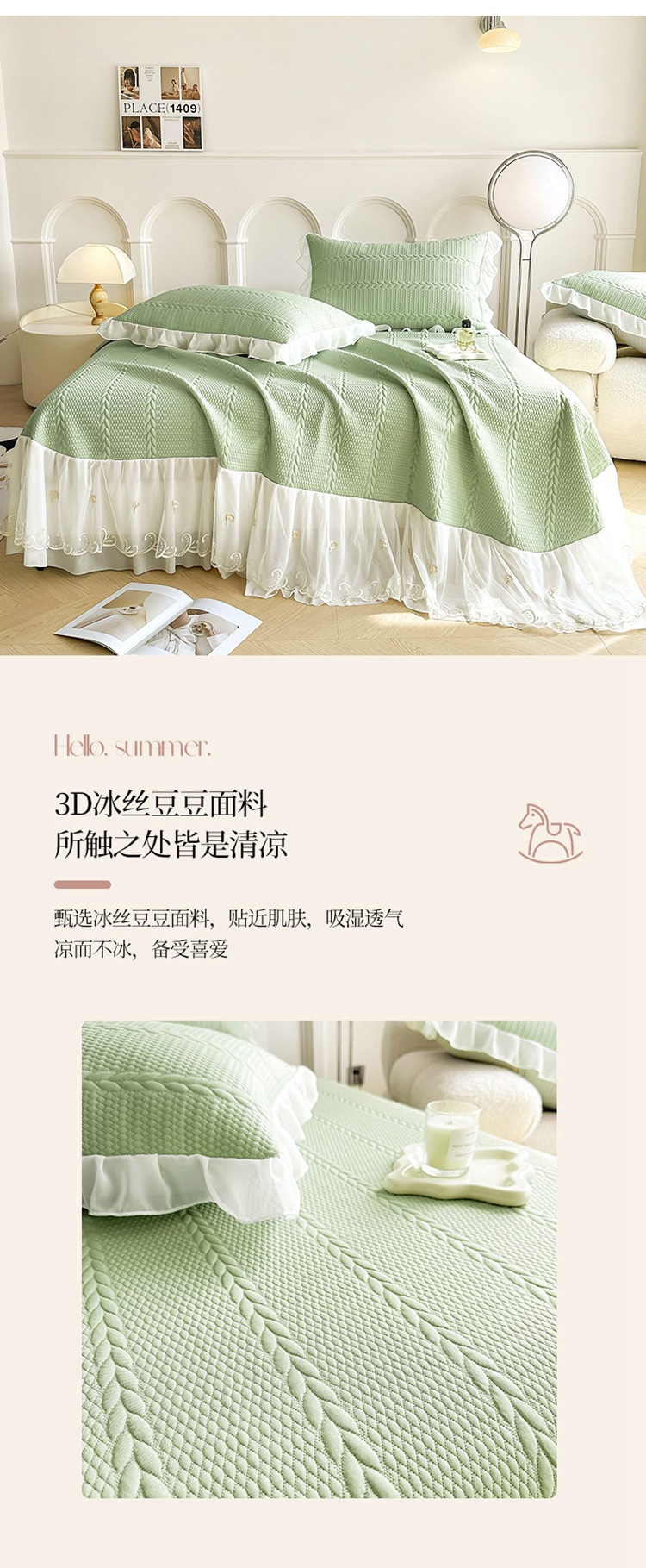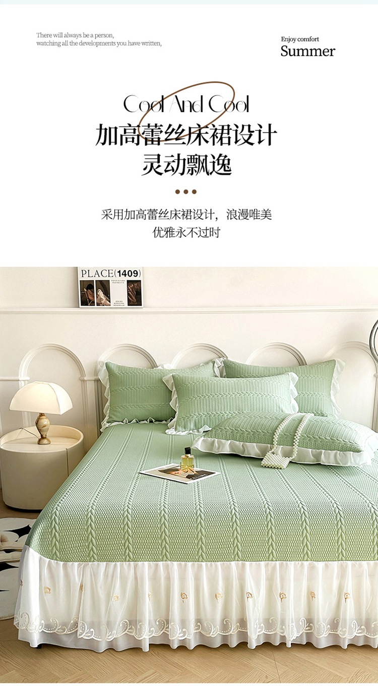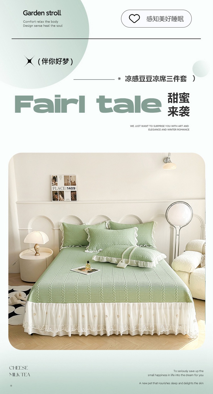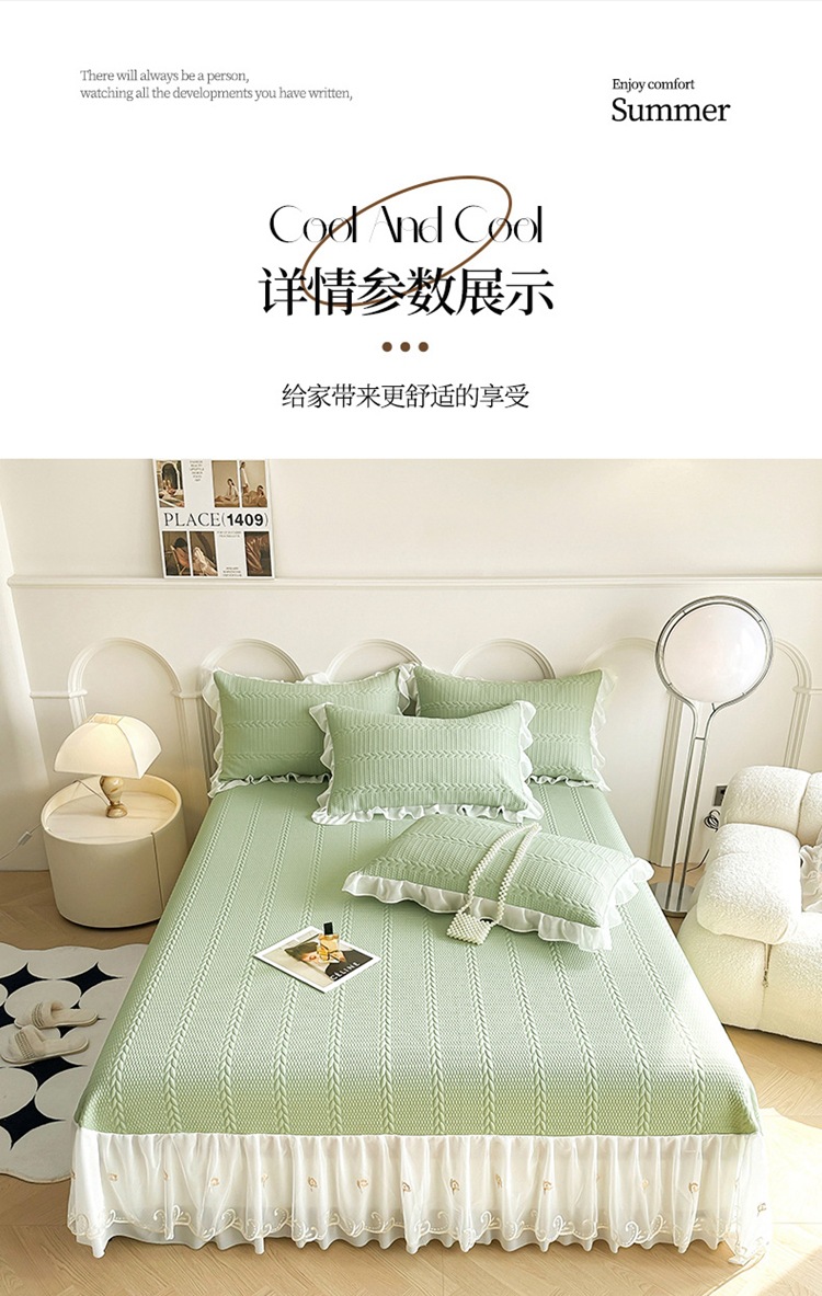 새로운 PE 쿨 실크 아이스 빈 침대 치마 클래스 콩 콜드 매트 침대 커버 3 피스 여름 마사지 소프트 매트