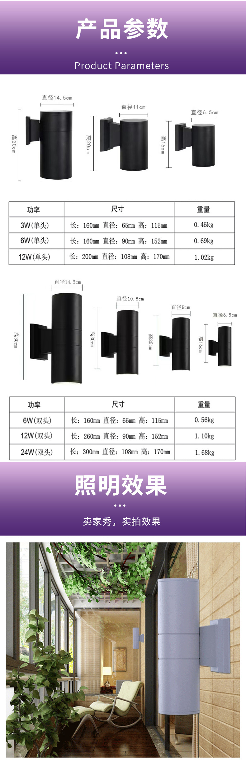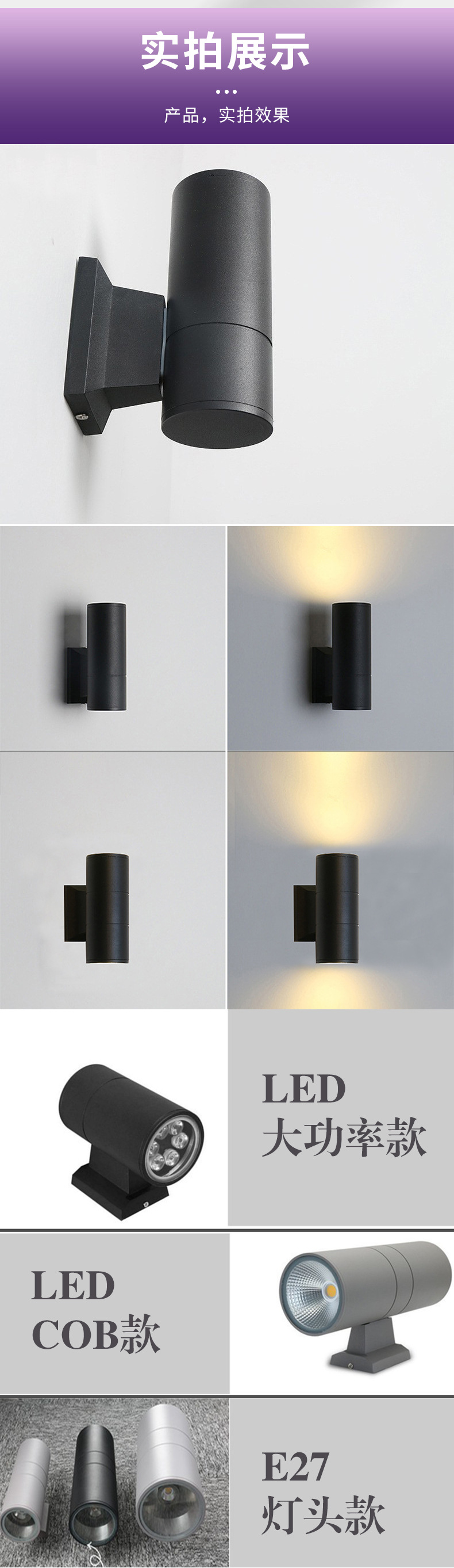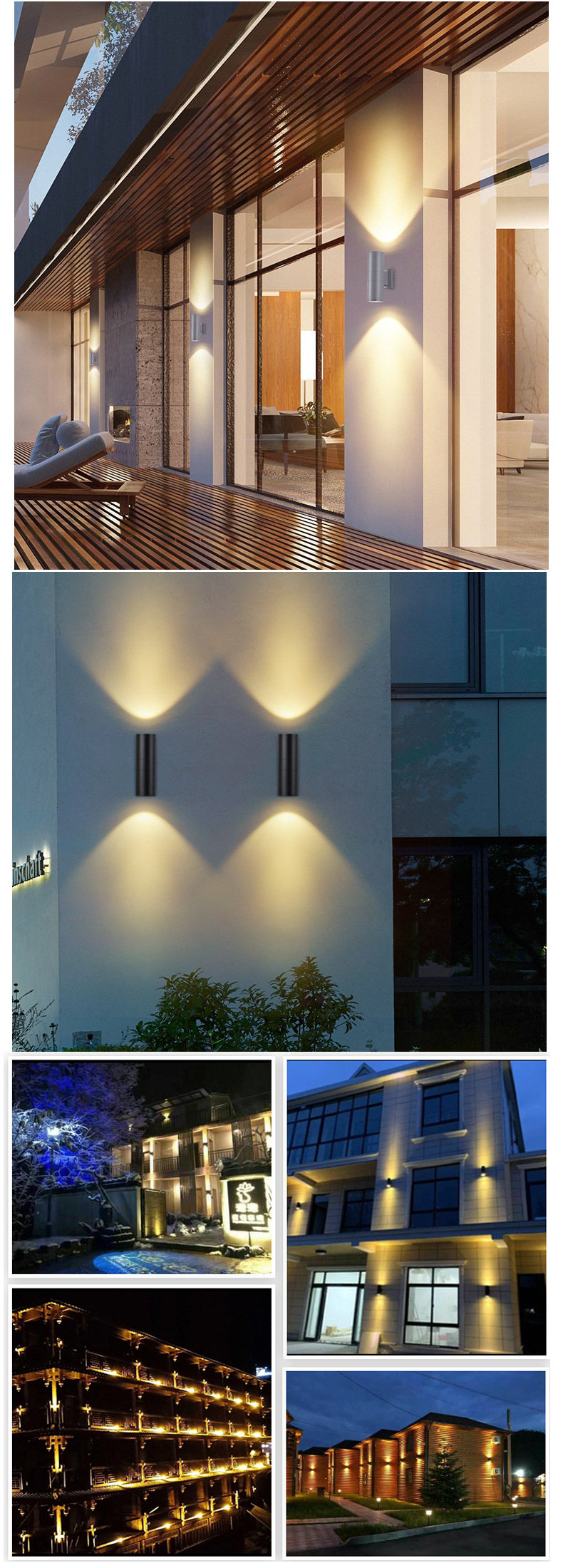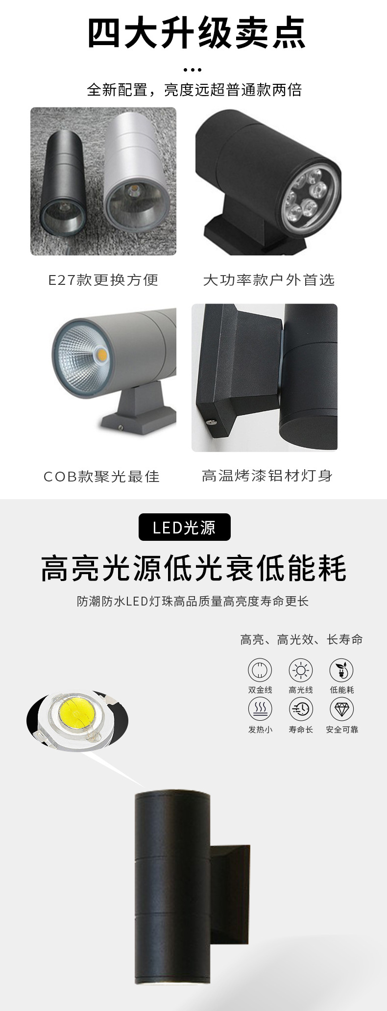 Led 더블 헤드 벽 램프 위아래로 빛나는 국경 방수 현대 간단한 안뜰 빌라 복도 E27 야외 벽 세탁기
