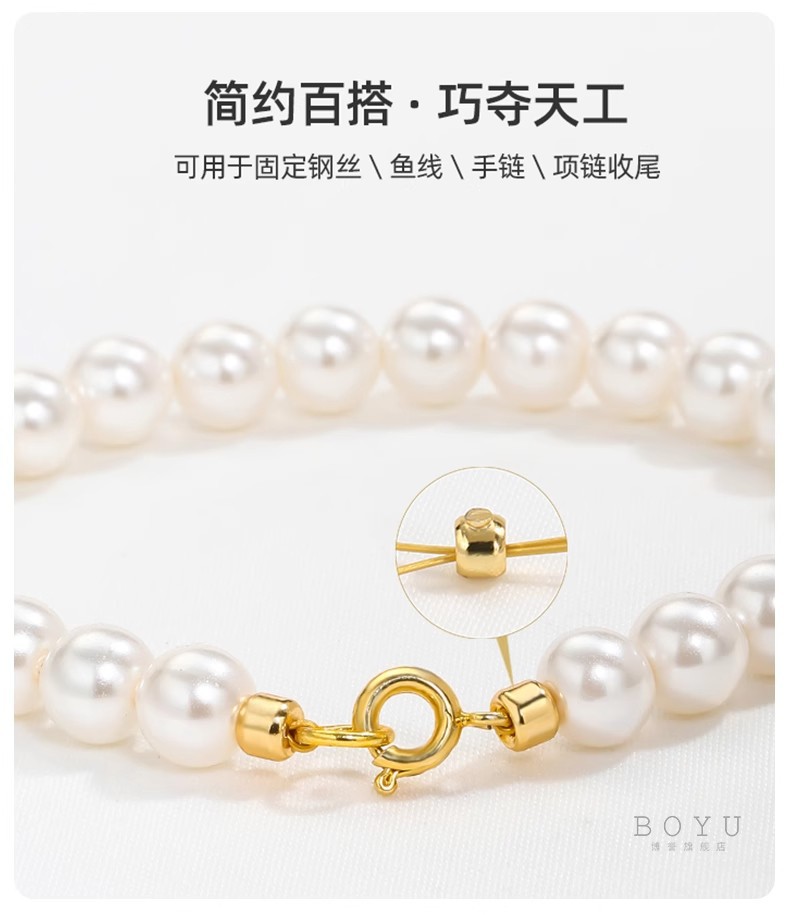 14k金保色扣头配件收尾扣夹扣diy珍珠项链扣头定位珠定位扣批发